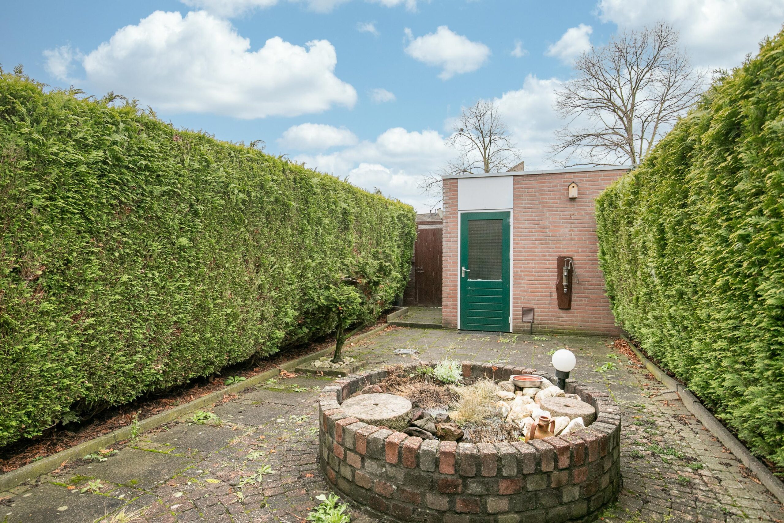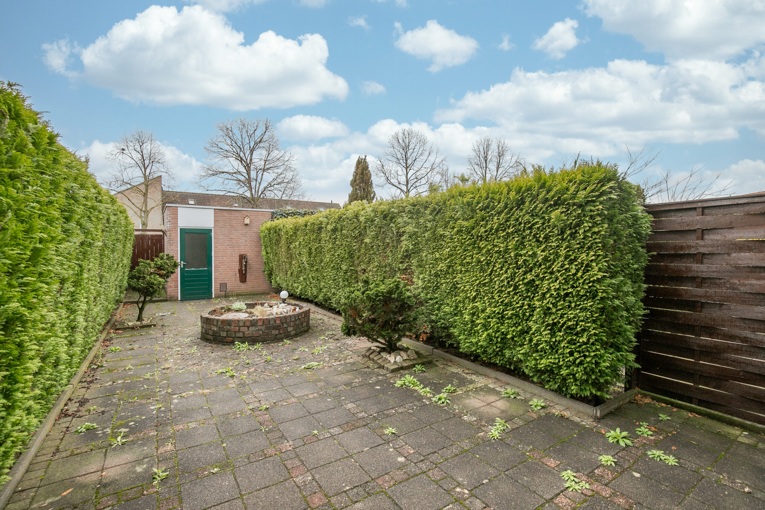 De tuin is via de woonkamer bereikbaar en gelegen op het zuidwesten. De tuin is geheel omsloten en aan weerszijde zijn groenhagen aanwezig voor extra privacy. De tuinberging is ideaal voor opslag van fietsen en dergelijke.