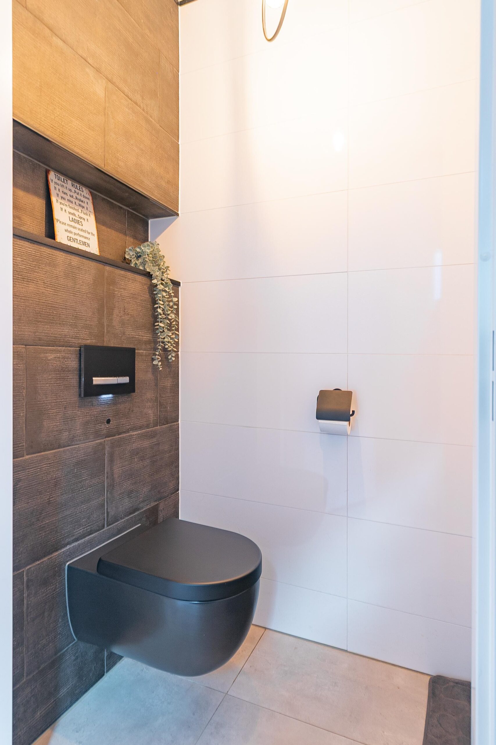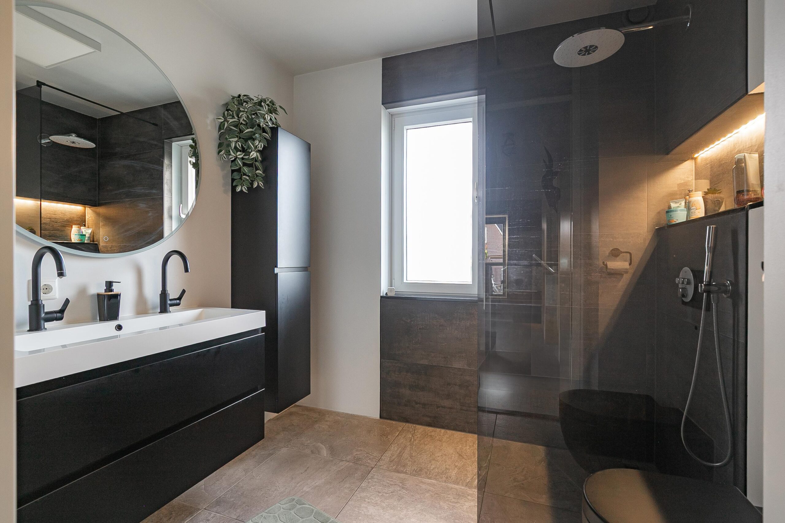 - Badkamervoorzieningen Toilet, dubbele wastafel, wastafelmeubel, inloopdouche, vloerverwarming