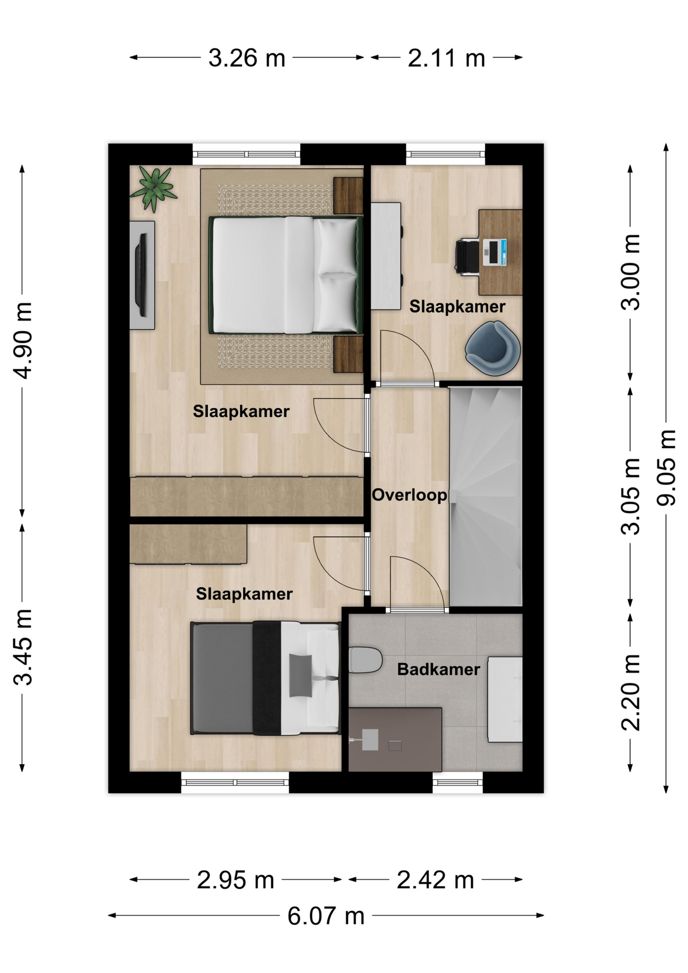 3 Slaapkamers uitgevoerd met een moderne laminaatvloer allen voorzien van vloerverwarming.