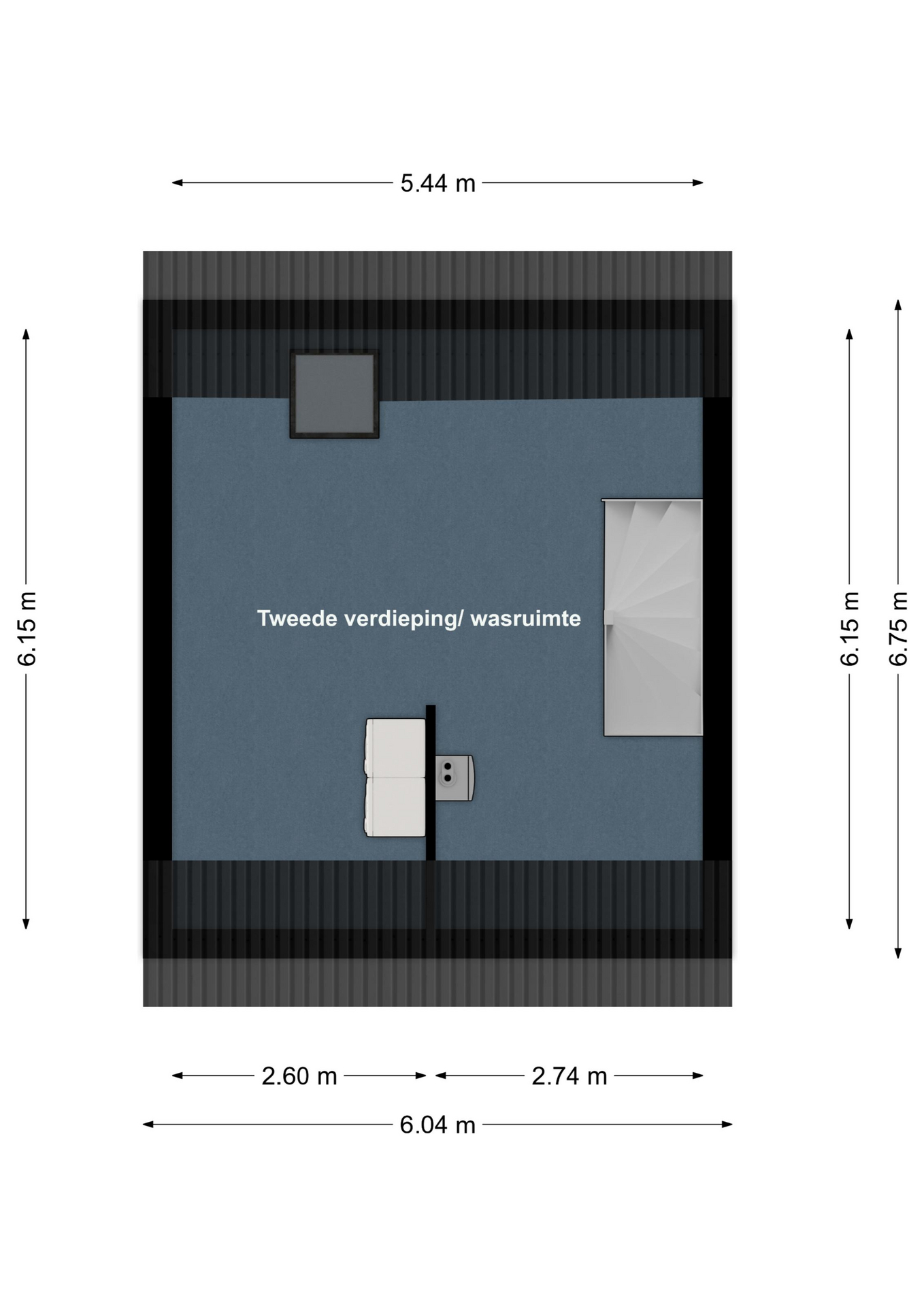 Ruime 2e verdieping met aansluiting wasapparatuur, Velux dakraam, omvormer, Remeha combi- c.v.installatie/eigedom