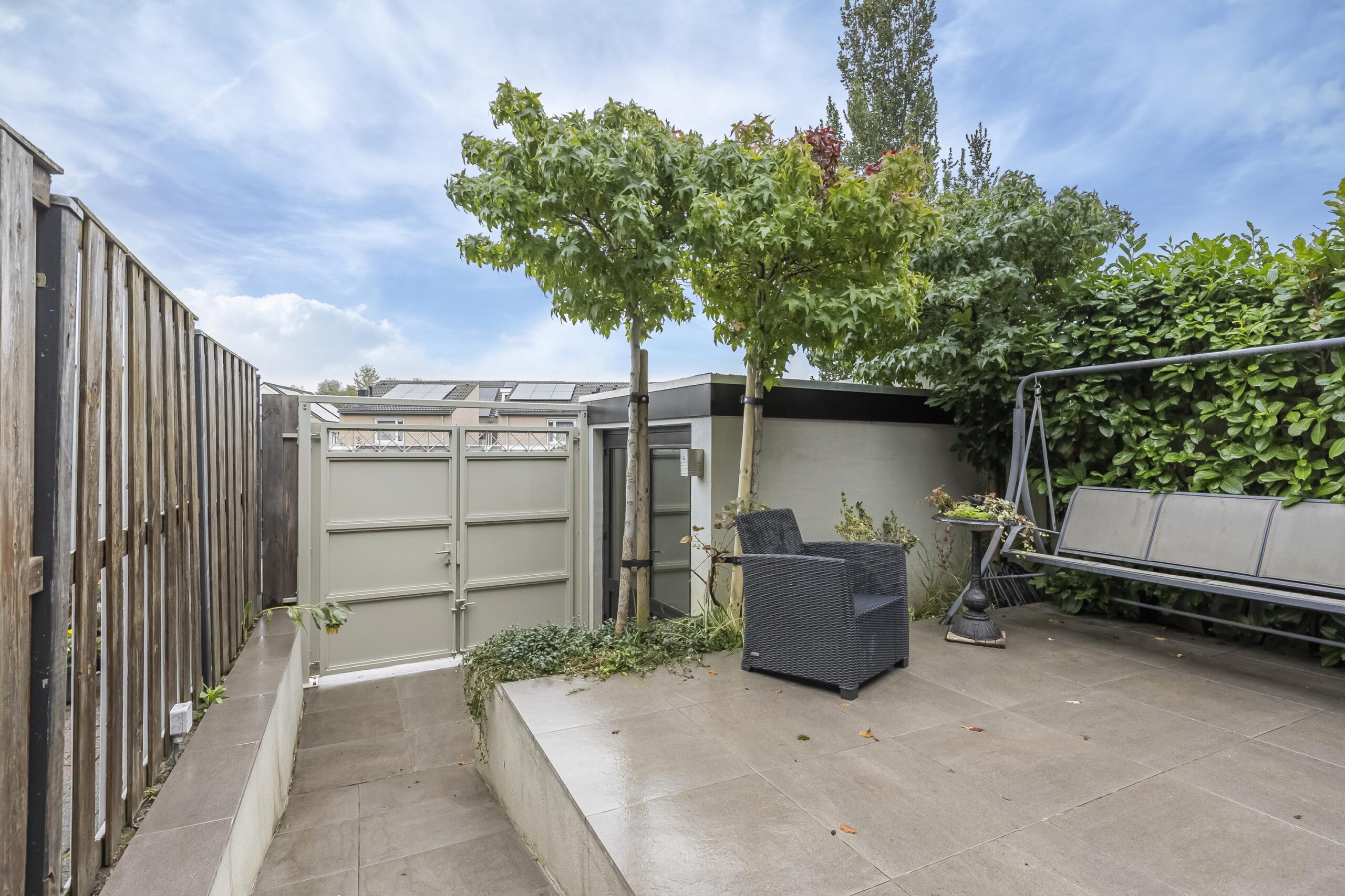 De geheel betegelde en onderhoudsvrije tuin is gelegen op het noordoosten. De tuin heeft een grote poort waardoor u makkelijk achterom komt komen.