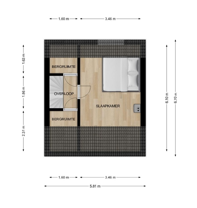 De 2e verdieping is middels een vaste trap te bereiken alwaar de mogelijkheid bestaat om een ruime 3e slaapkamer te creëren.