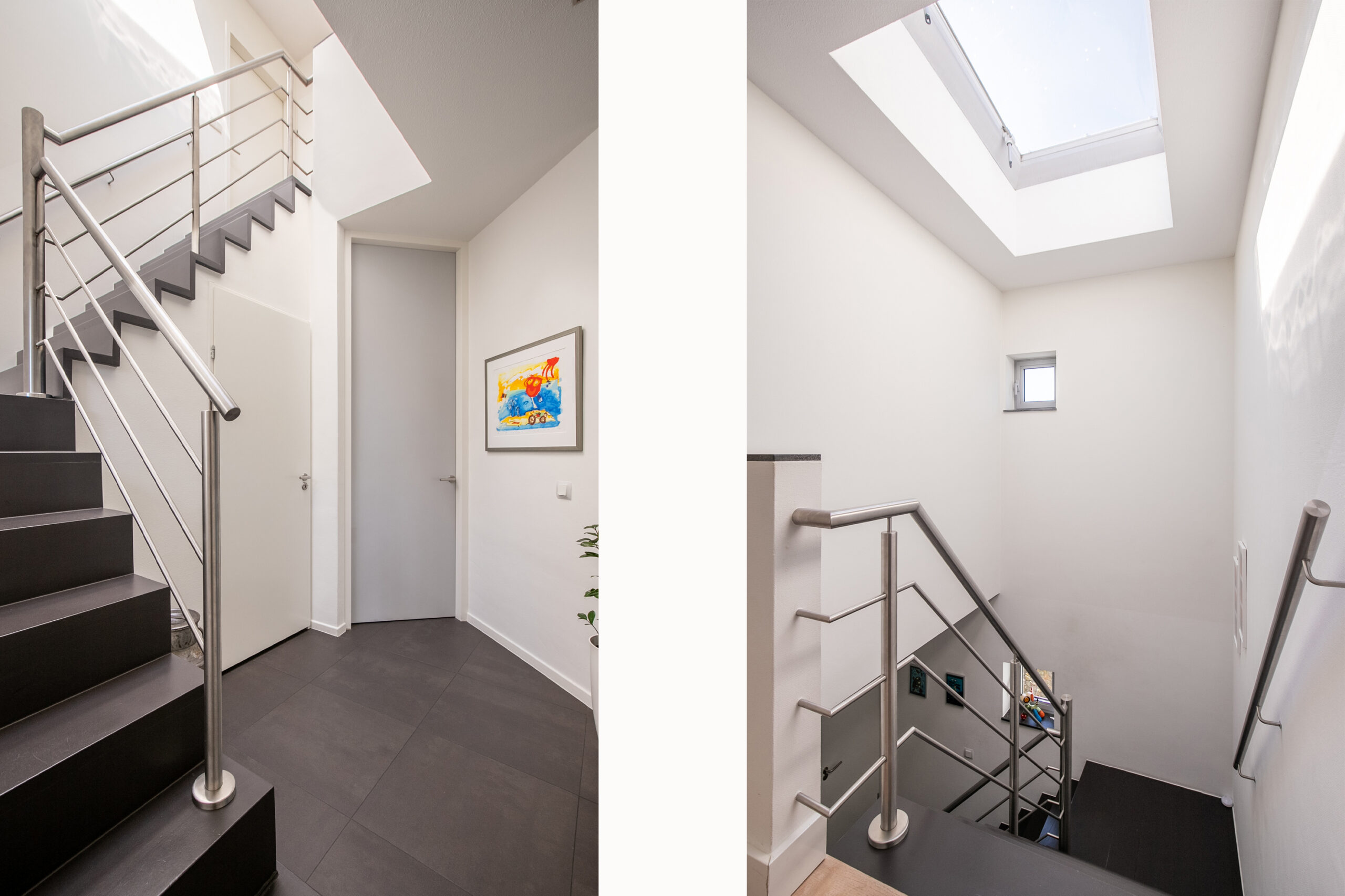 Een vaste trap leidt naar de overloop met vide, prachtig verlicht door een grote lichtkoepel. Hier bevinden zich vier ruime slaapkamers, respectievelijk ca. 22 m², 16 m², 16 m² en 8 m² groot. De gehele verdieping is voorzien van een houten parketvloer en airconditioning.