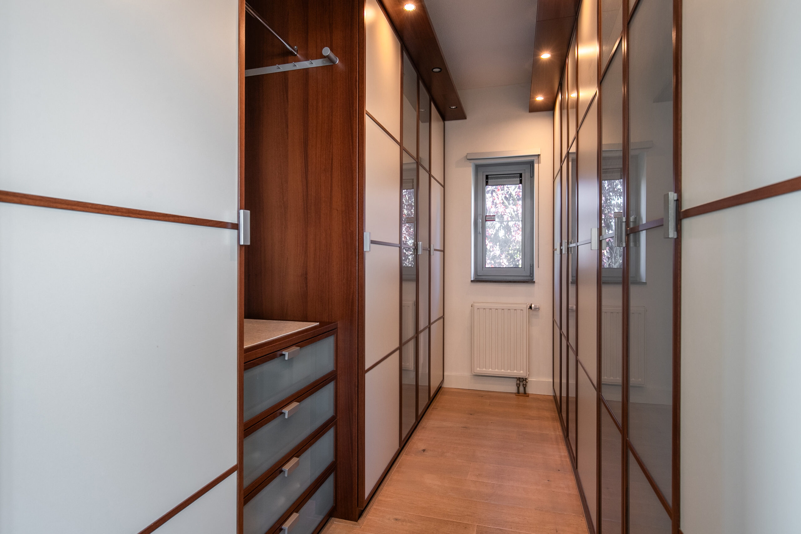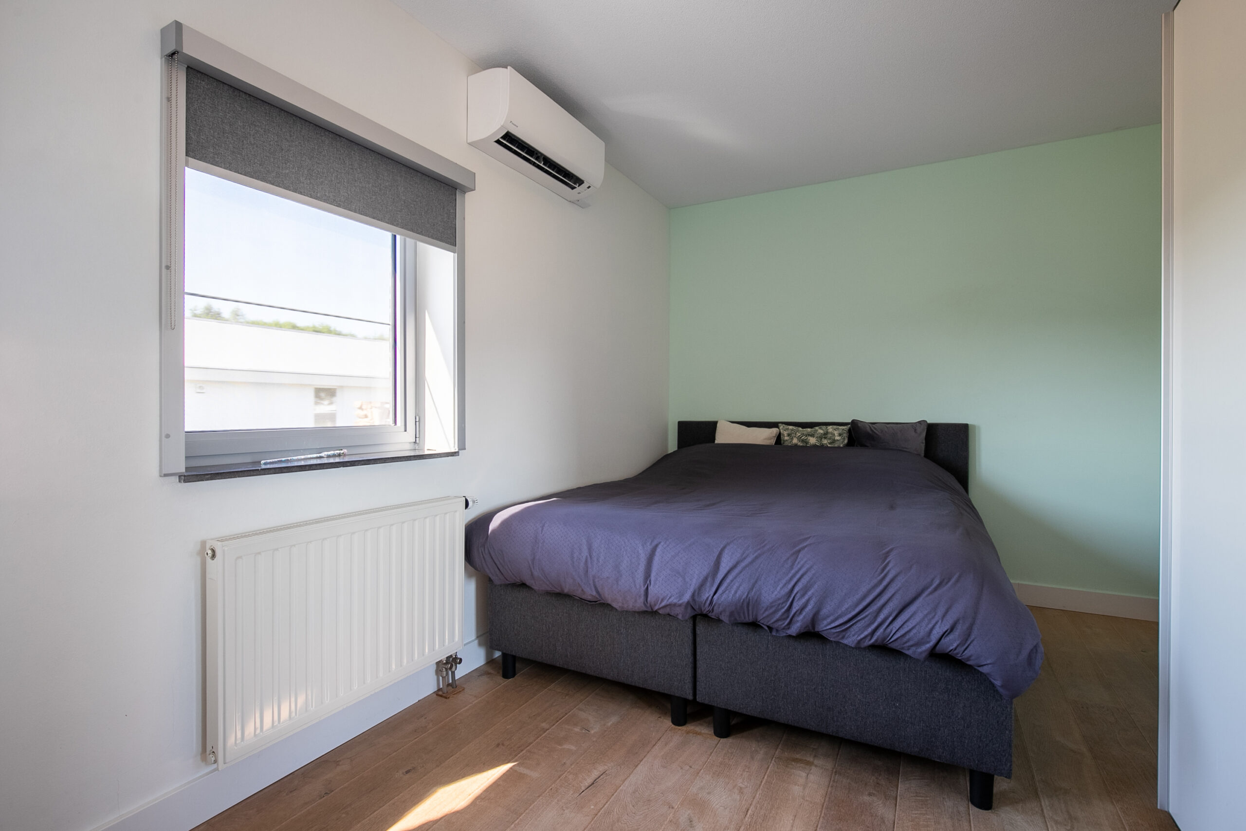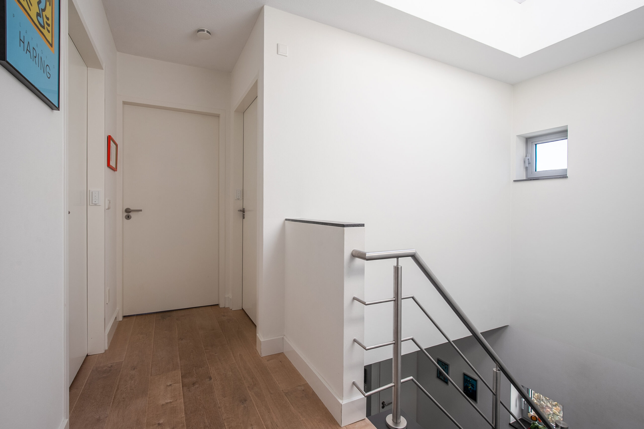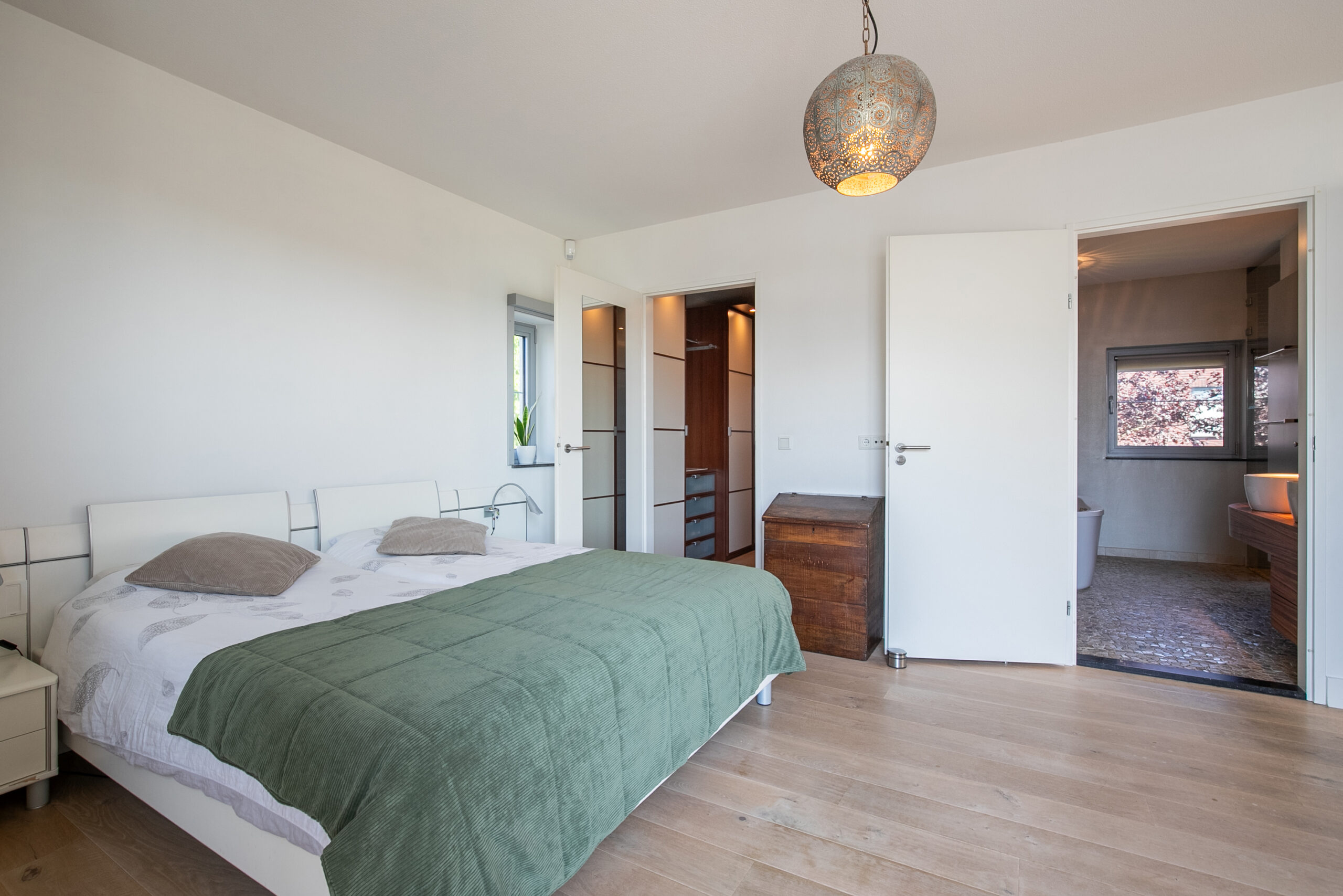 De hoofdslaapkamer beschikt over een luxe walk-in closet, een privébadkamer én toegang tot een royaal dakterras aan de achterzijde. De ensuite badkamer is afgewerkt met hoogwaardige materialen en voorzien van een vrijstaand bad, ruime inloopdouche met regendouche, een dubbel wastafelmeubel en een zwevend toilet.