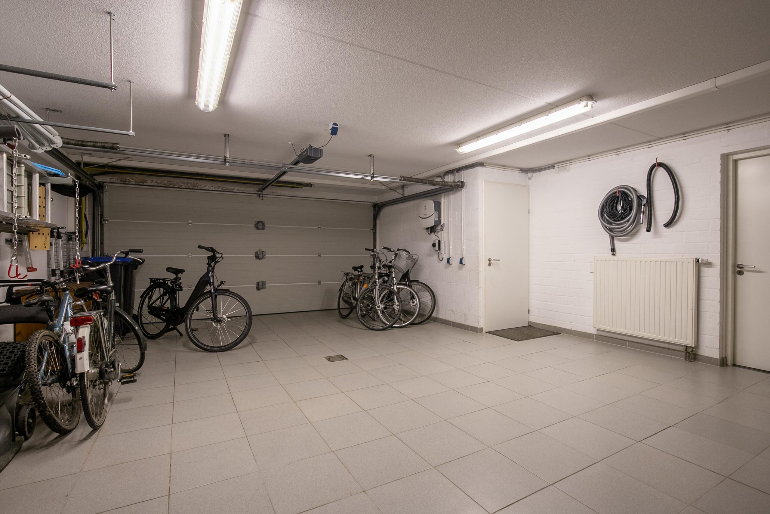 De woning is volledig onderkelderd en zowel via het trappenhuis als via de buitenzijde bereikbaar. In het souterrain bevindt zich een ruime inpandige garage van ca. 42 m², geschikt voor twee auto’s, voorzien van een brede sectionaalpoort en praktische tegelvloer met schrobput. Daarnaast zijn er twee separate bergingen, ideaal voor opslag of hobby, evenals de technische ruimte met opstelling van de warmtepomp, de vloerverwarmingsverdeler en het centraal stofzuigsysteem.
