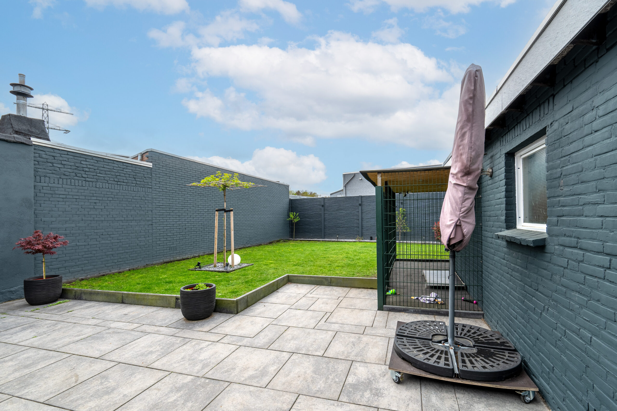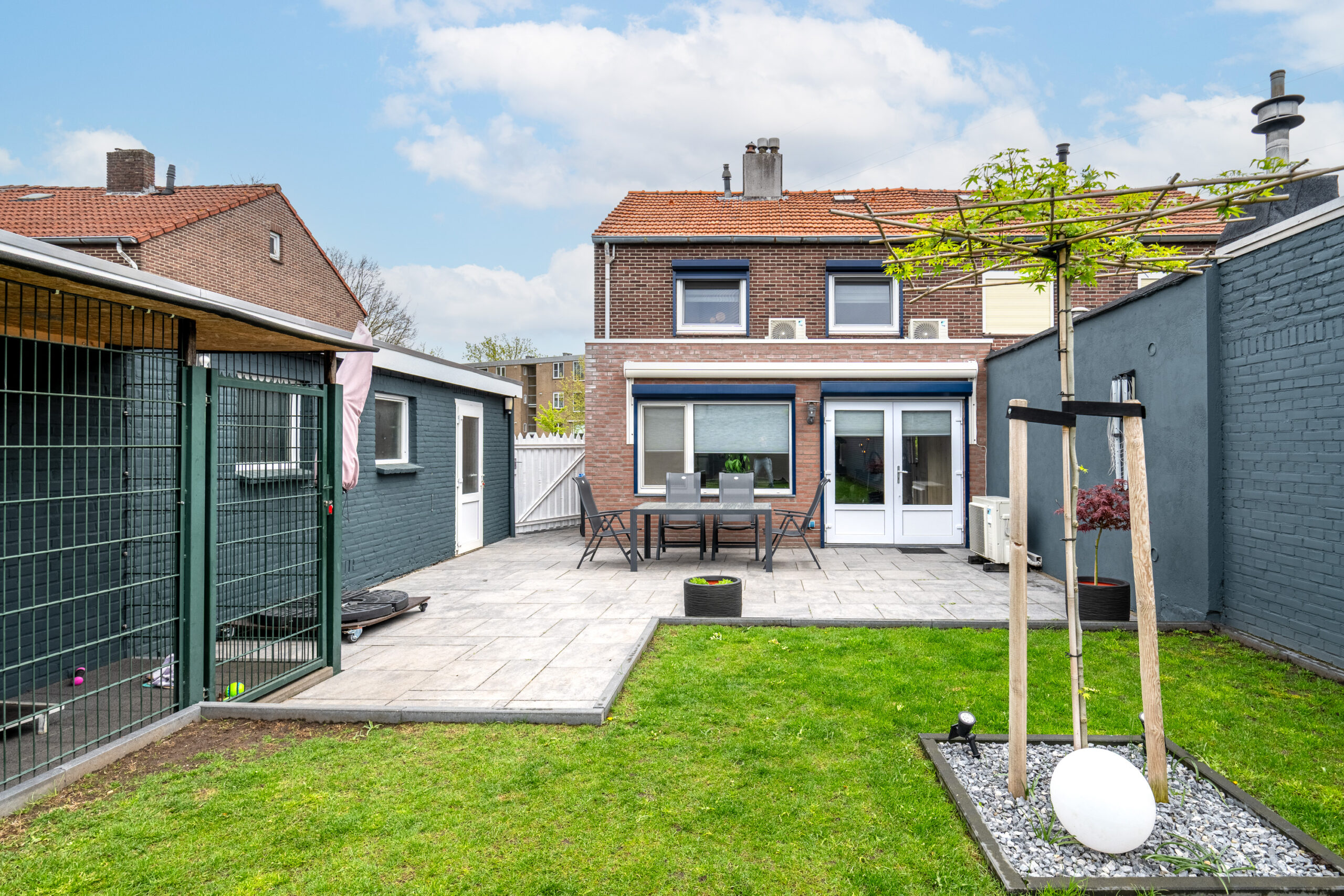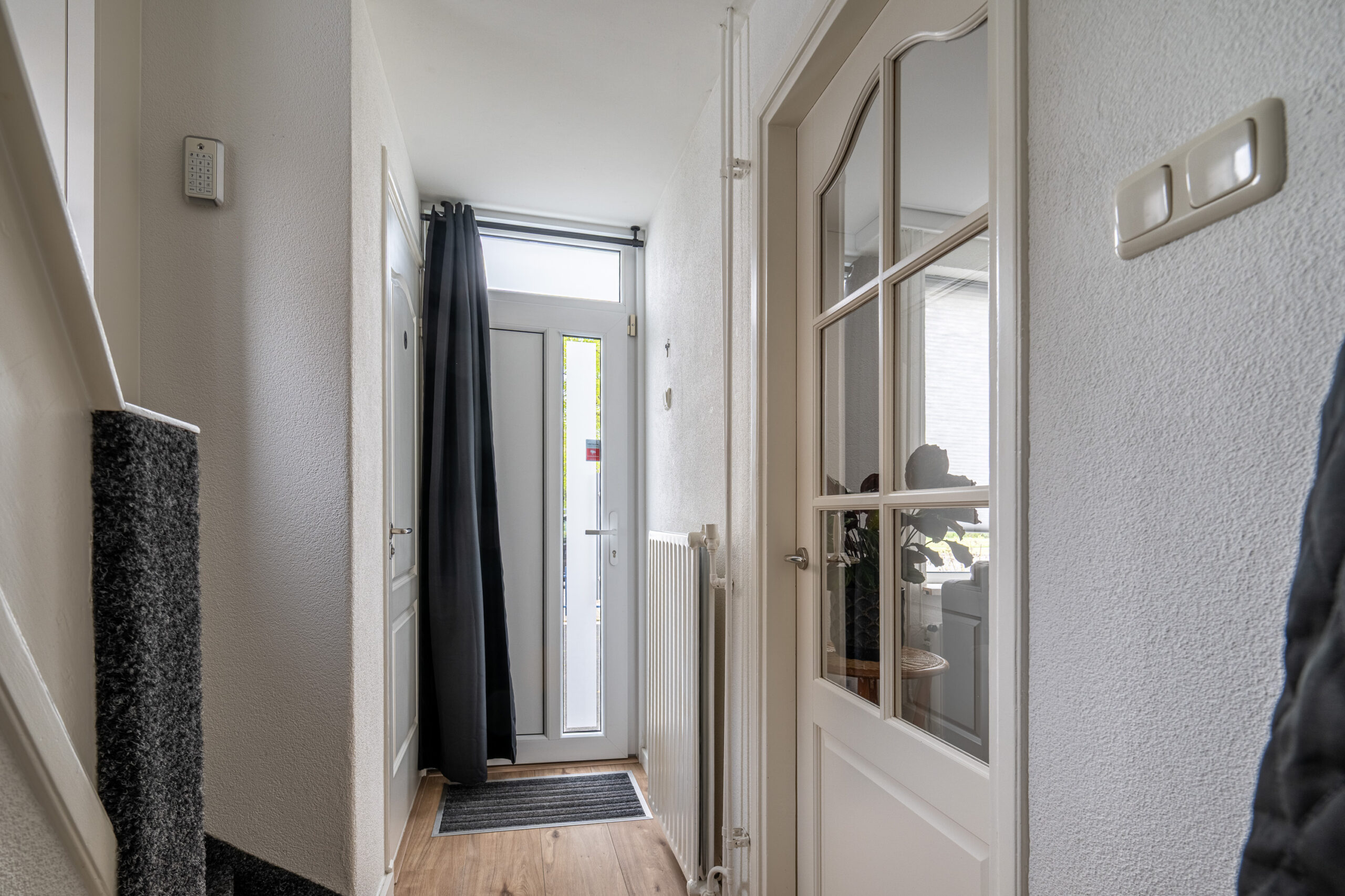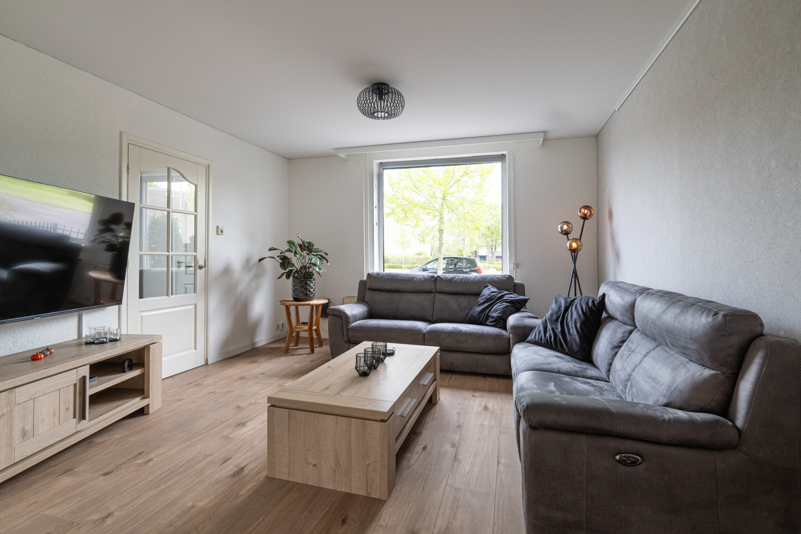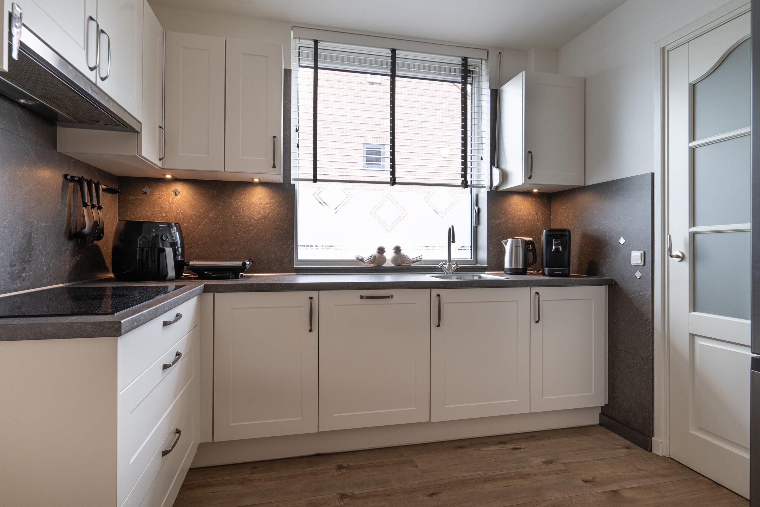 Ruime oprit met plaats voor het stallen van meerdere voertuigen. Entree/hal met trapopgang, meterkast en een toiletruimte met toilet en fontein. Vanuit de hal toegang tot zowel de woonkamer als de keuken. De woonkamer bevindt zich aan de voorzijde van de woning. De semi-open keuken is in een hoekopstelling geplaatst en voorzien van de navolgende inbouwapparatuur: inductiekookplaat, afzuigkap en vaatwasser. De begane grond kan gekoeld en verwarmd worden middels airconditioning. Aan de achterzijde bevindt zich een royale aanbouw met openslaande deuren (voorzien van horren) naar de tuin. De gehele begane grond is afgewerkt met een eiken design laminaatvloer en grotendeels voorzien van elektrisch bedienbare rolluiken. De recent aangelegde achtertuin is zonnig gelegen, volledig omsloten en biedt optimale privacy. Het royale terras en elektrisch bedienbaar zonnescherm zorgen voor optimaal tuingenot tijdens zomerse dagen. Dubbele garage met elektrische sectionaalpoort en hondenkennel. De tuin is via een achterom te bereiken.