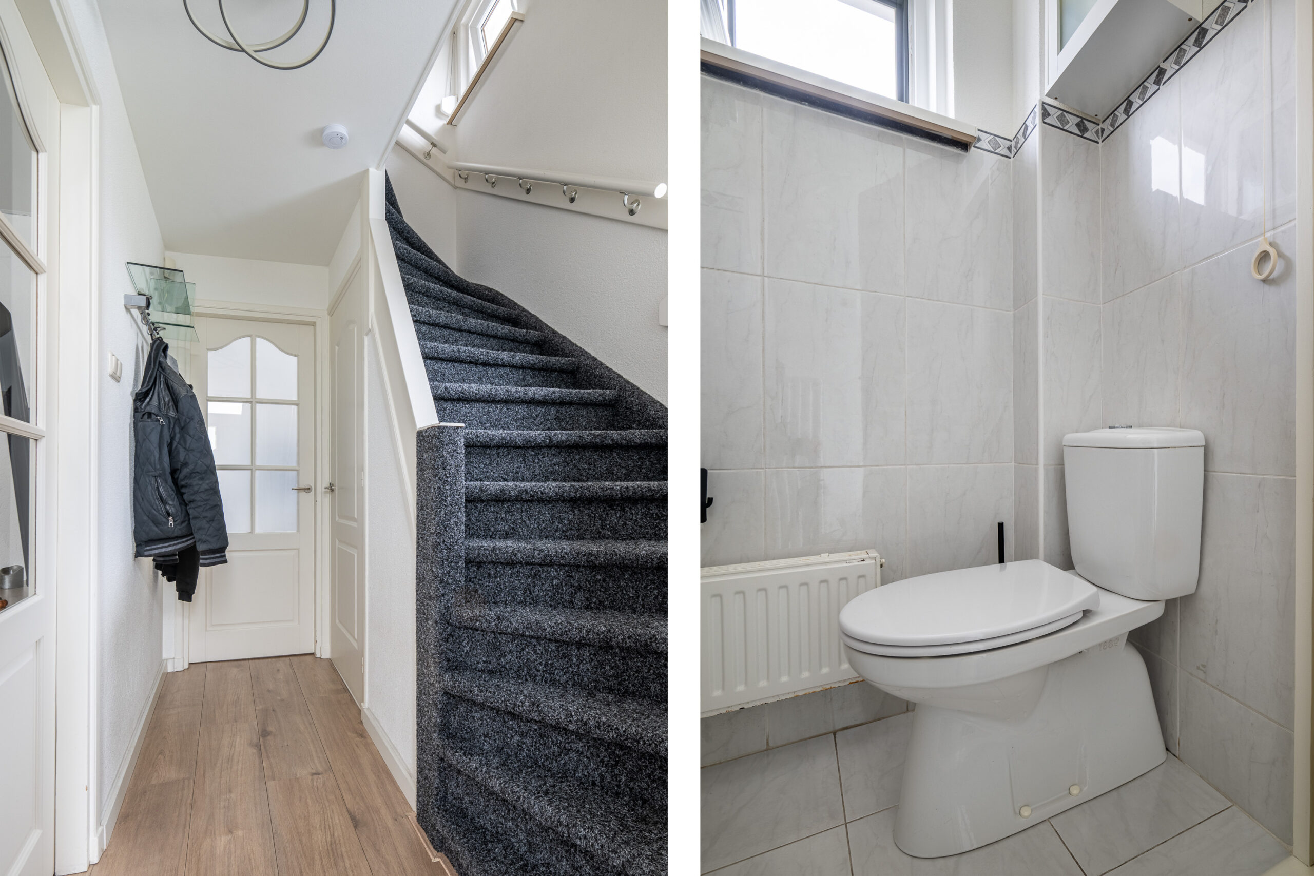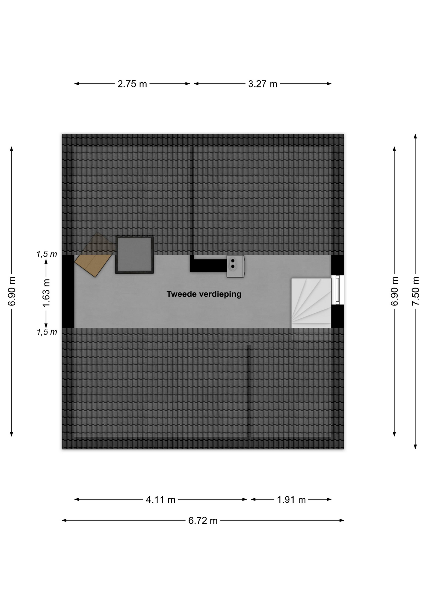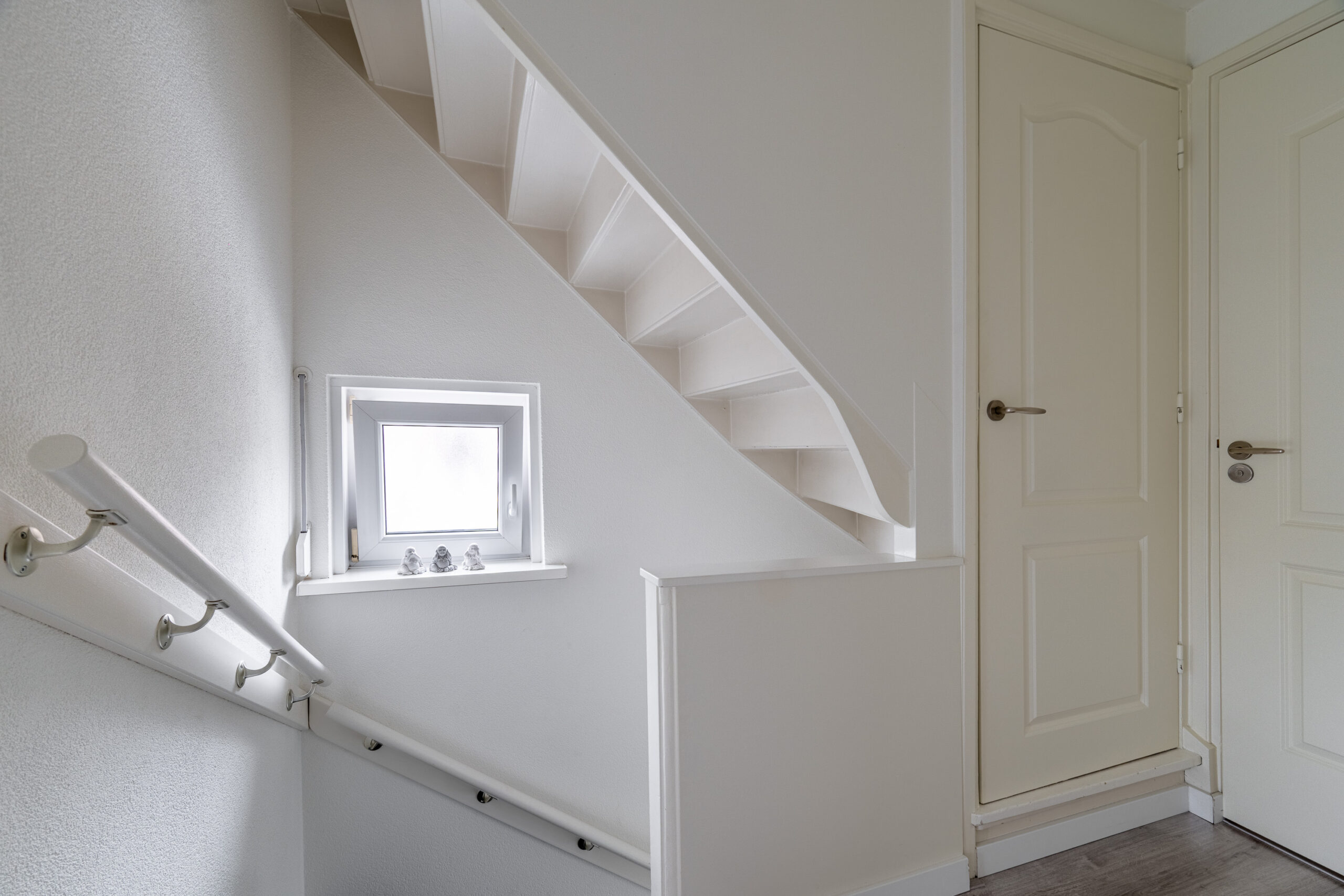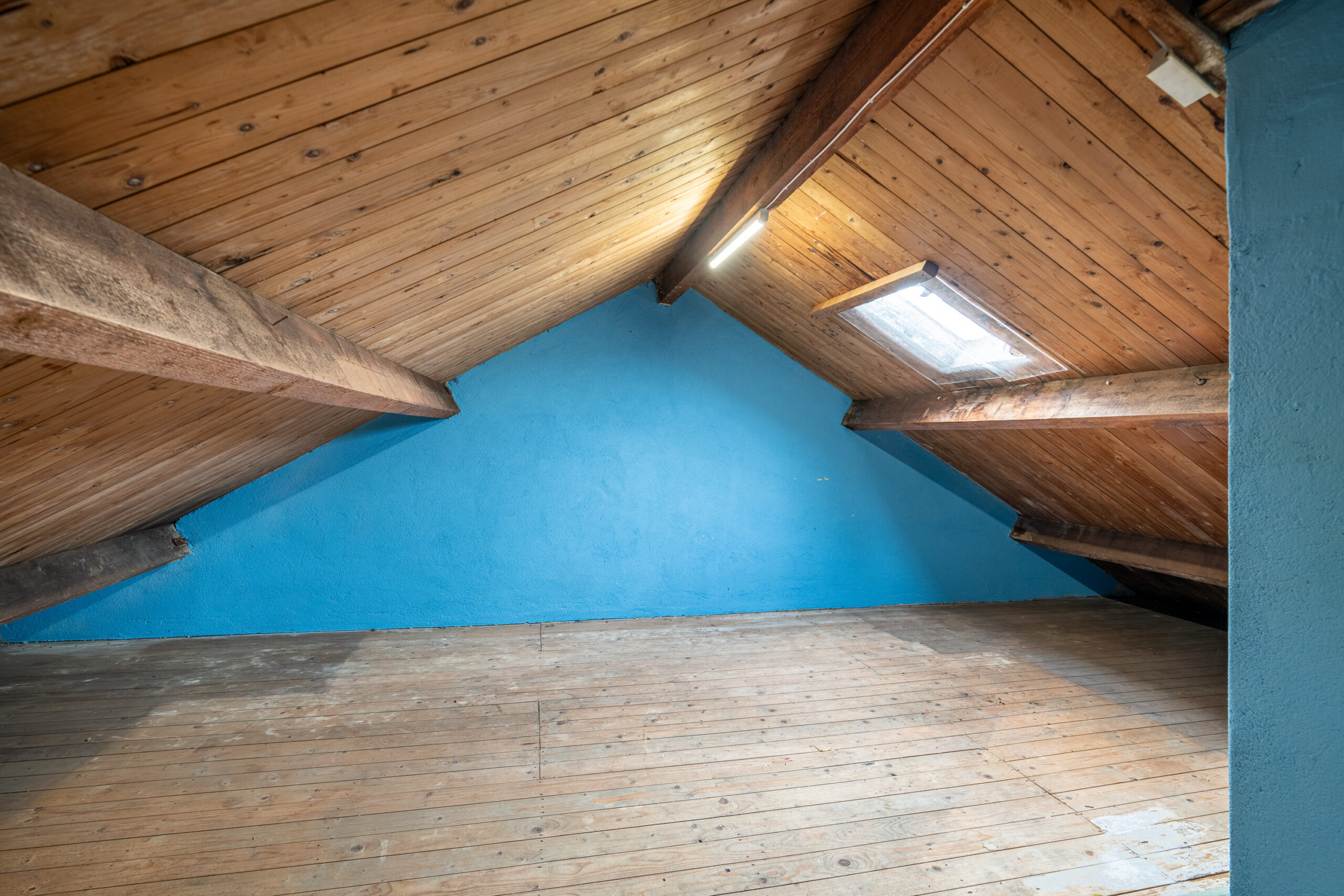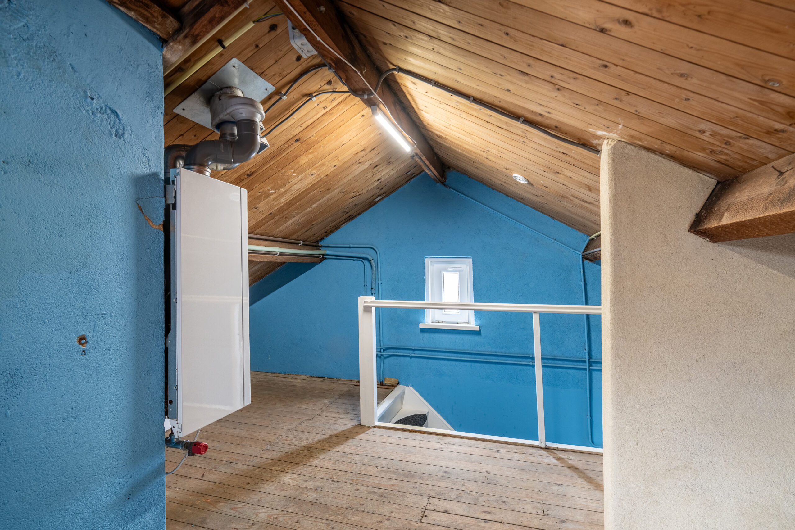 Middels vaste trap te bereiken tweede verdieping. Opstelplaats van de Vaillant Cv-ketel (2013, huur). De tweede verdieping is momenteel in gebruik als bergzolder maar biedt de mogelijkheid tot het realiseren van een vierde slaapkamer.