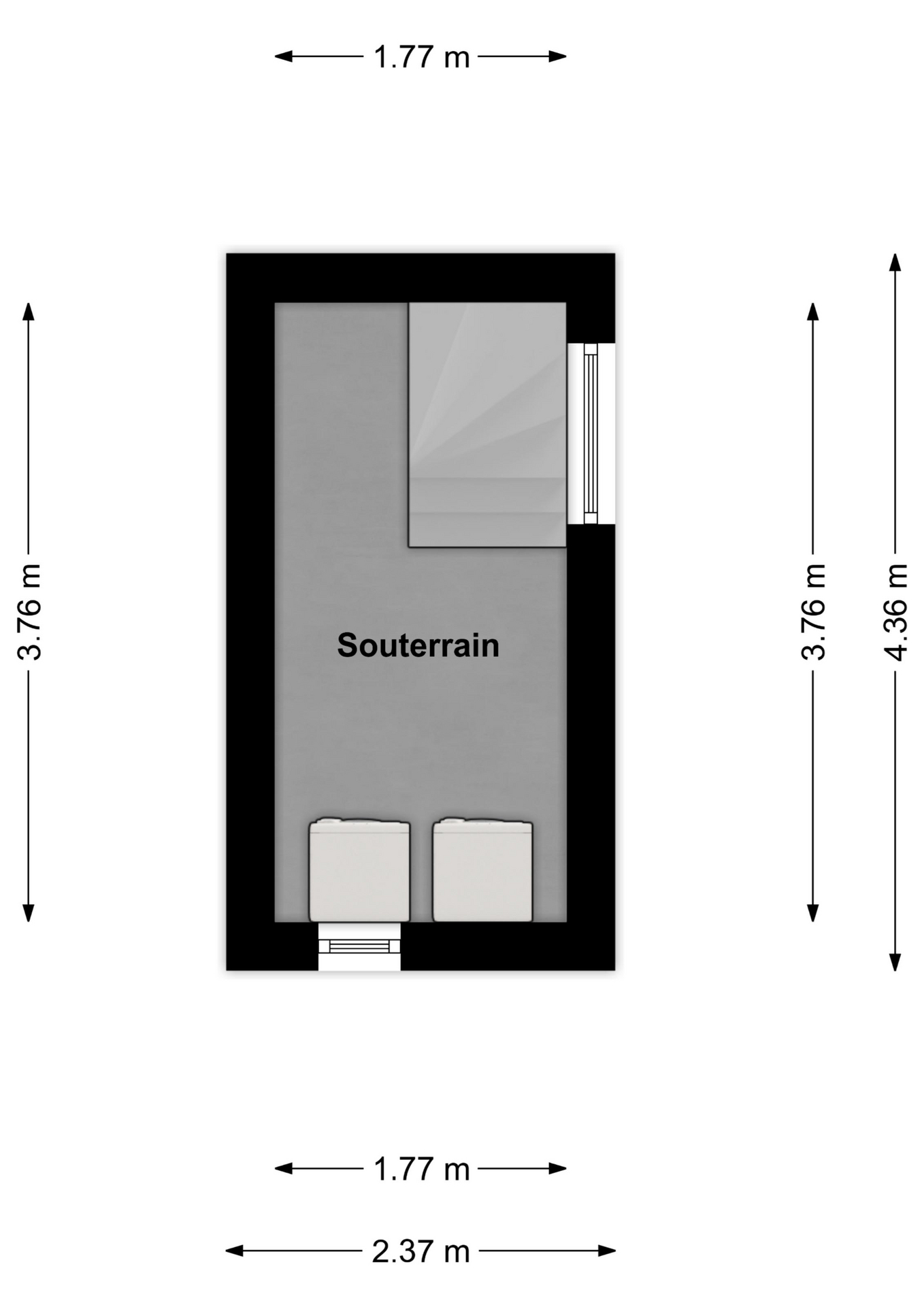 Vanuit de hal te bereiken provisiekelder ten behoeve van opslag. Tevens bevinden zich hier de aansluitpunten voor wasmachine en droger.