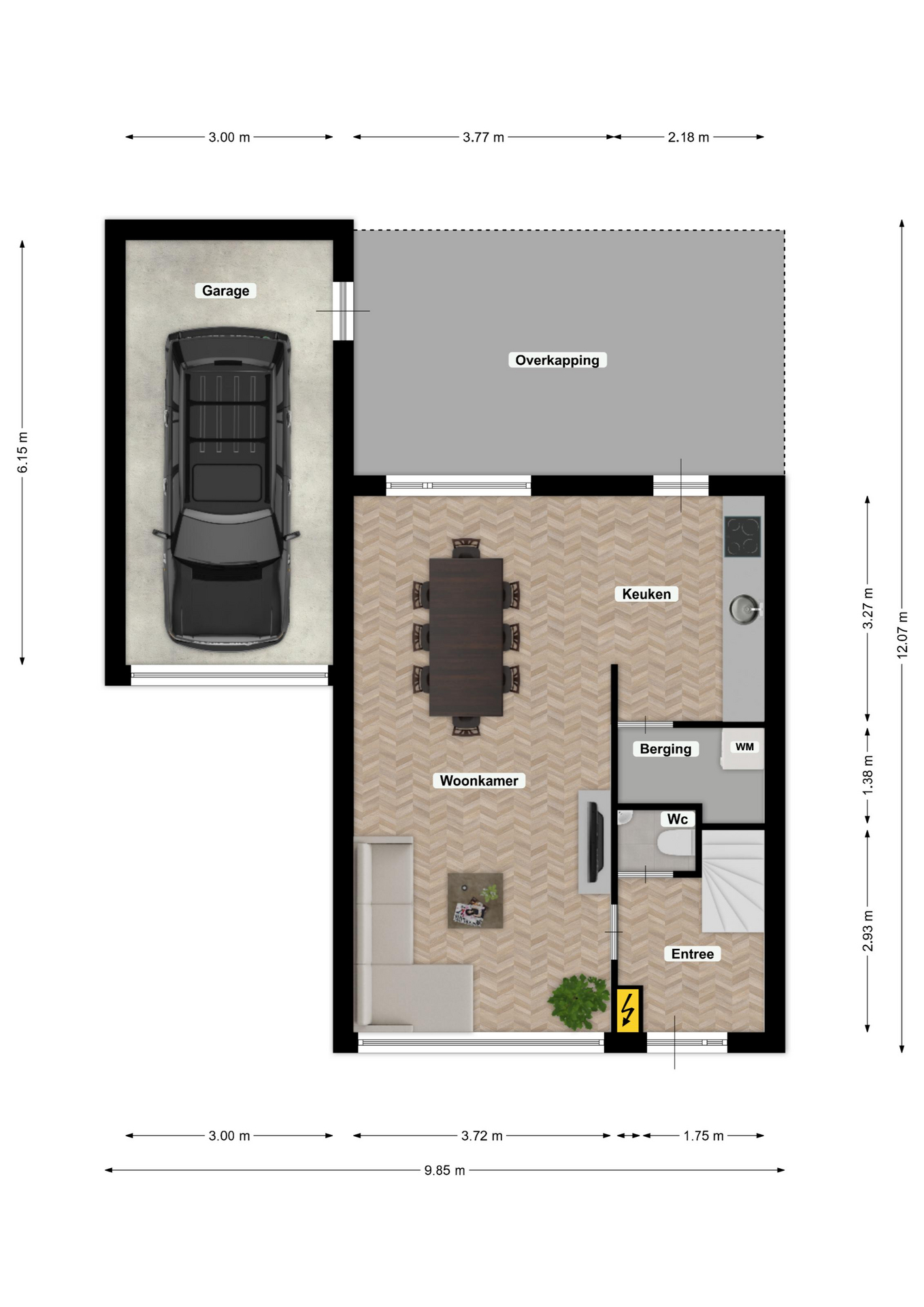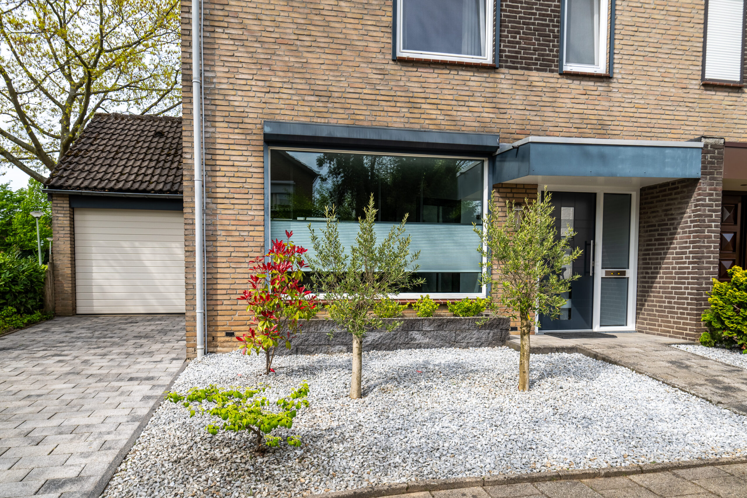 Naast de woning bevindt zich de ruime garage met elektrisch bedienbare sectionaalpoort en royale bergzolder.