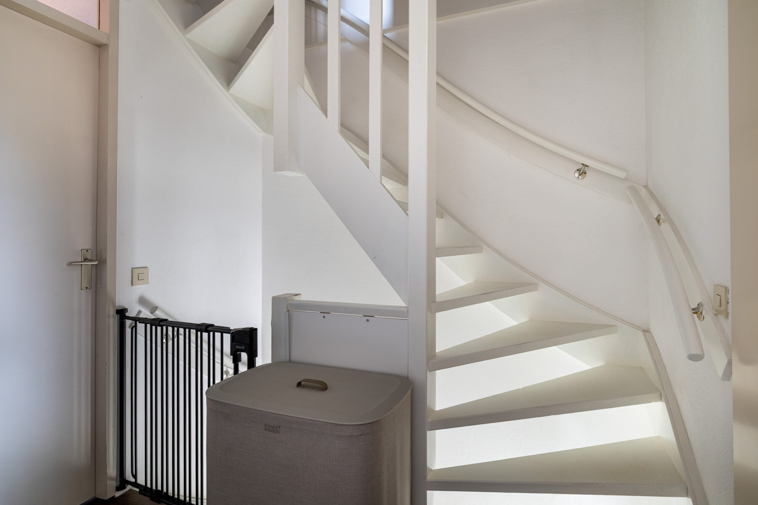 Via de onderhoudsarme voortuin bereikt u de overdekte entree. De ruime hal is voorzien van een trap naar de verdieping, garderobe, onlangs vernieuwde meterkast en een geheel betegeld vrijhangend toilet met hoekfontein.