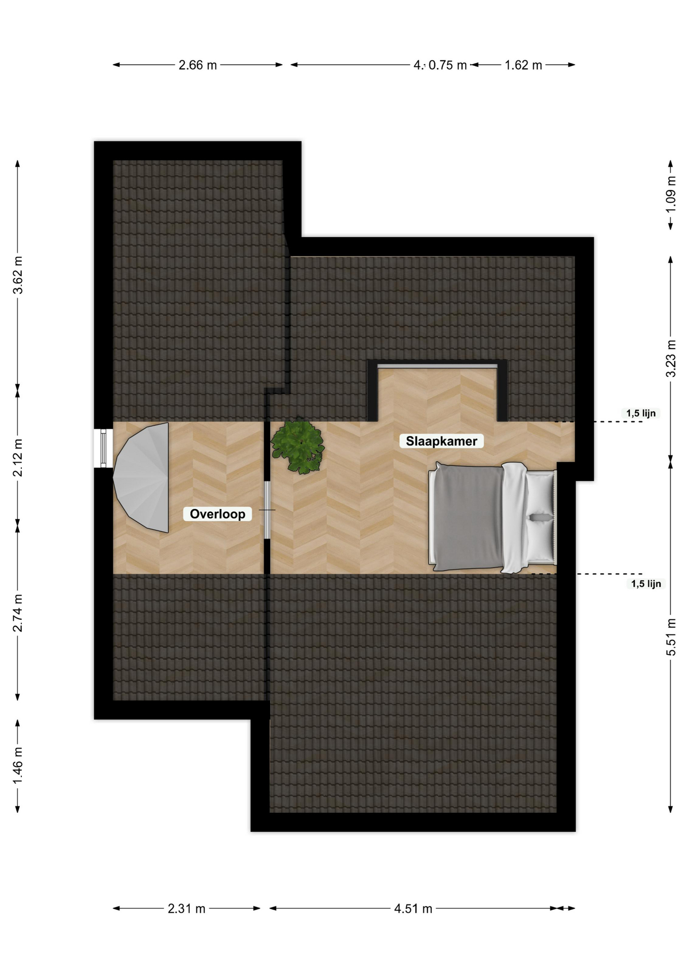 Via de spiltrap bereikt u de volledig geïsoleerde zolderverdieping, een verrassend ruime en veelzijdige verdieping. Hier bevindt zich de vierde slaapkamer, voorzien van een dakkapel die zorgt voor aangenaam licht en extra ruimte. Deze kamer leent zich uitstekend als slaapkamer, werkruimte of hobbykamer. De slaapkamers is respectievelijk: