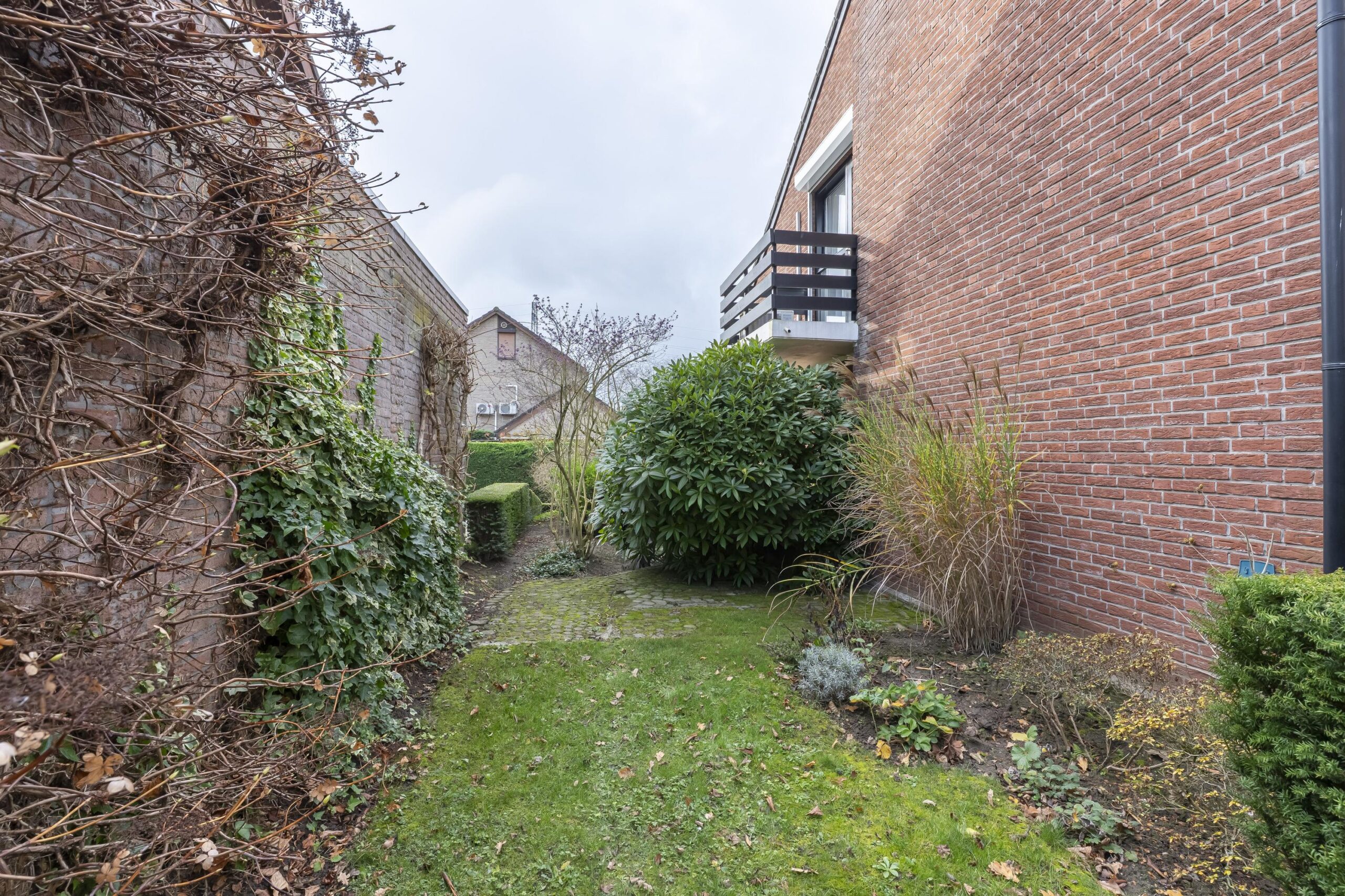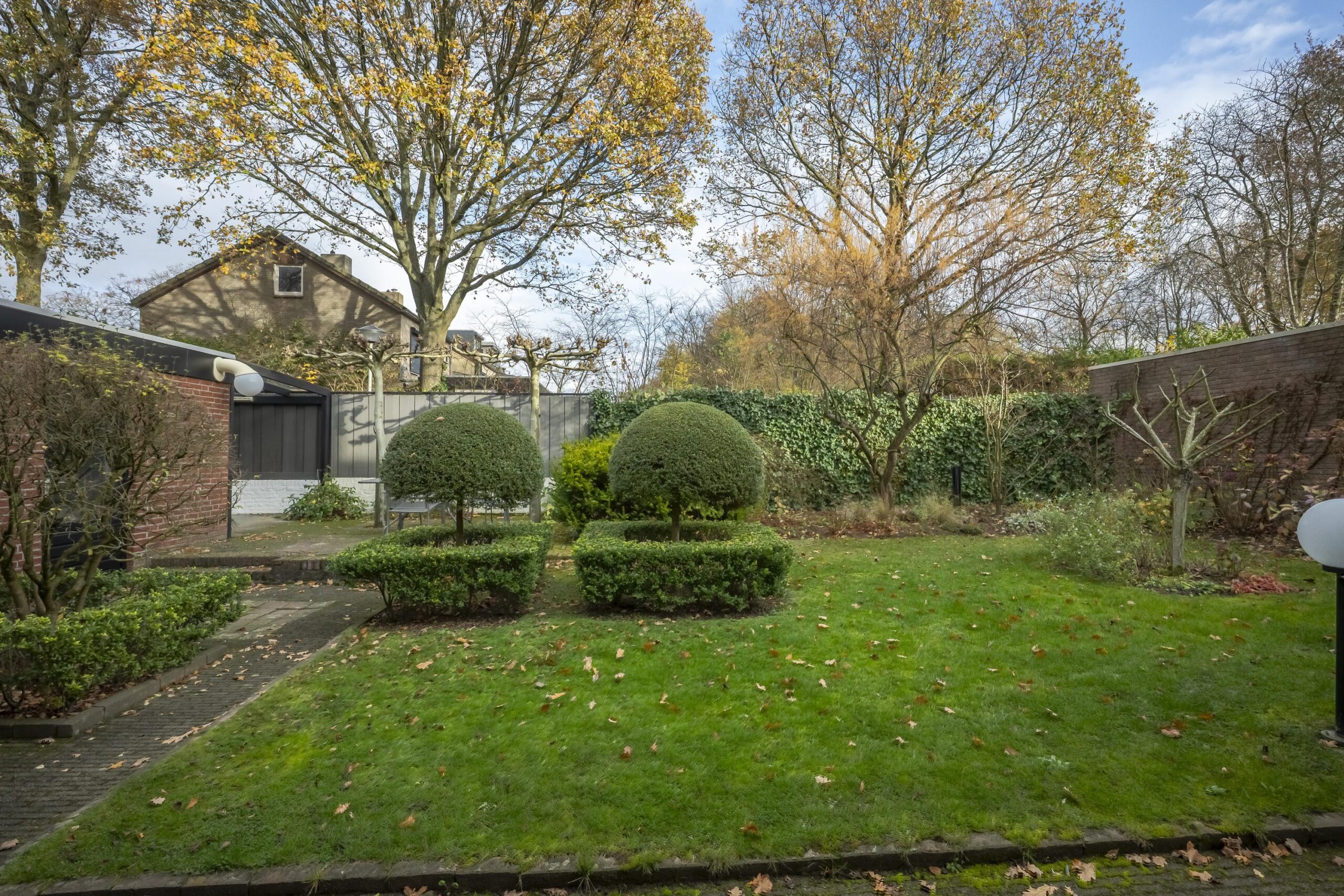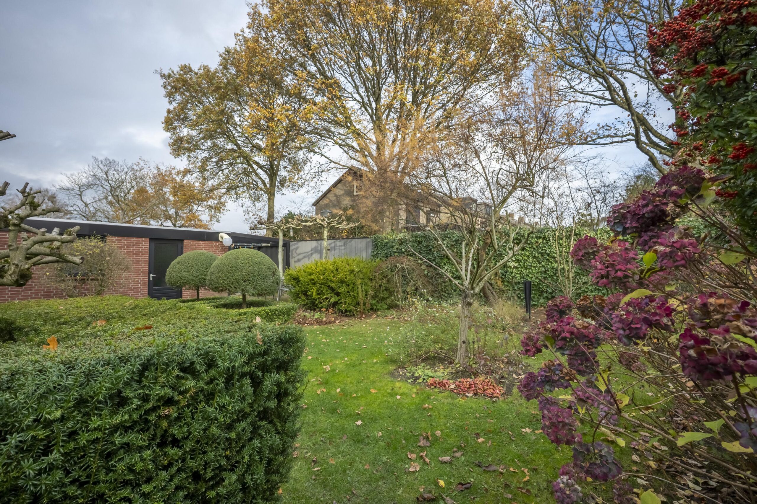 Wat deze tuin écht bijzonder maakt, is het prachtige vrije uitzicht aan de achterzijde, waarbij het omliggende groen het gevoel van ruimte en rust versterkt.