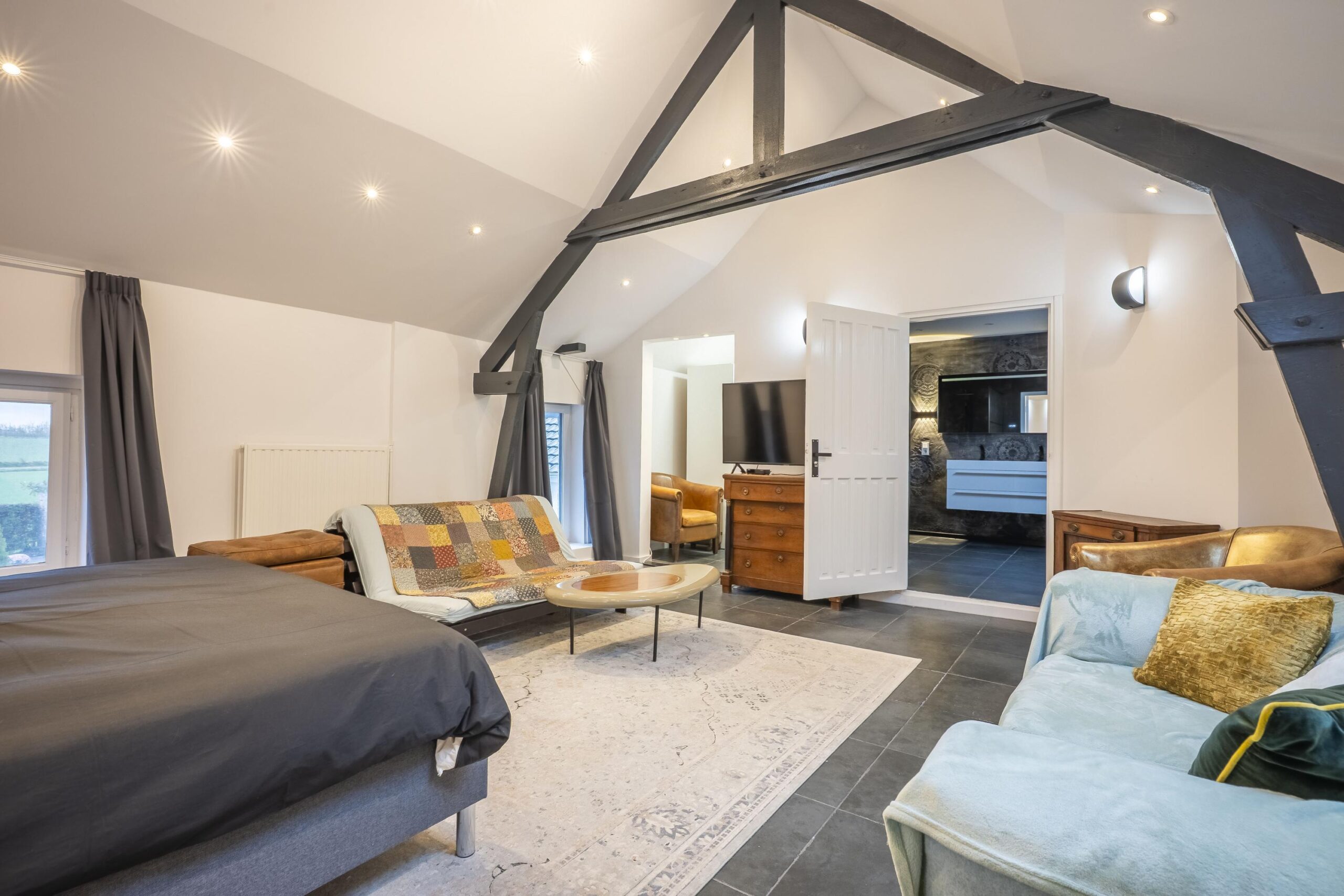 De verbonden zijvleugel herbergt drie ruime privésuites, uitgevoerd met: