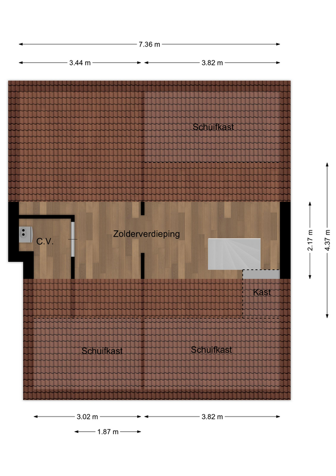 Via een vaste trap bereikbare, erg mooi afgewerkte zolder, welke multifunctioneel gebruikt kan worden. Tevens is op zolder de cv-ruimte. De ketel is in eigendom, bouwjaar 2022, merk Nefit. In de knieschotten van het dak zijn bergruimtes met schuifdeuren gerealiseerd.