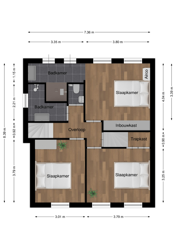 – De twee badkamers en het toilet op de eerste verdieping zijn voorzien van elektrische vloerverwarming, op de ouderslaapkamer is een airco;