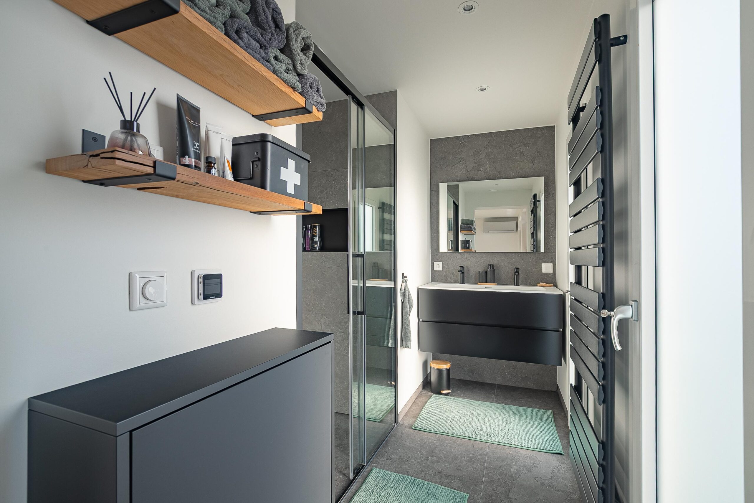 - Badkamervoorzieningen Wastafel, wastafelmeubel, inloopdouche, vloerverwarming, douche, wastafel, wastafelmeubel, vloerverwarming