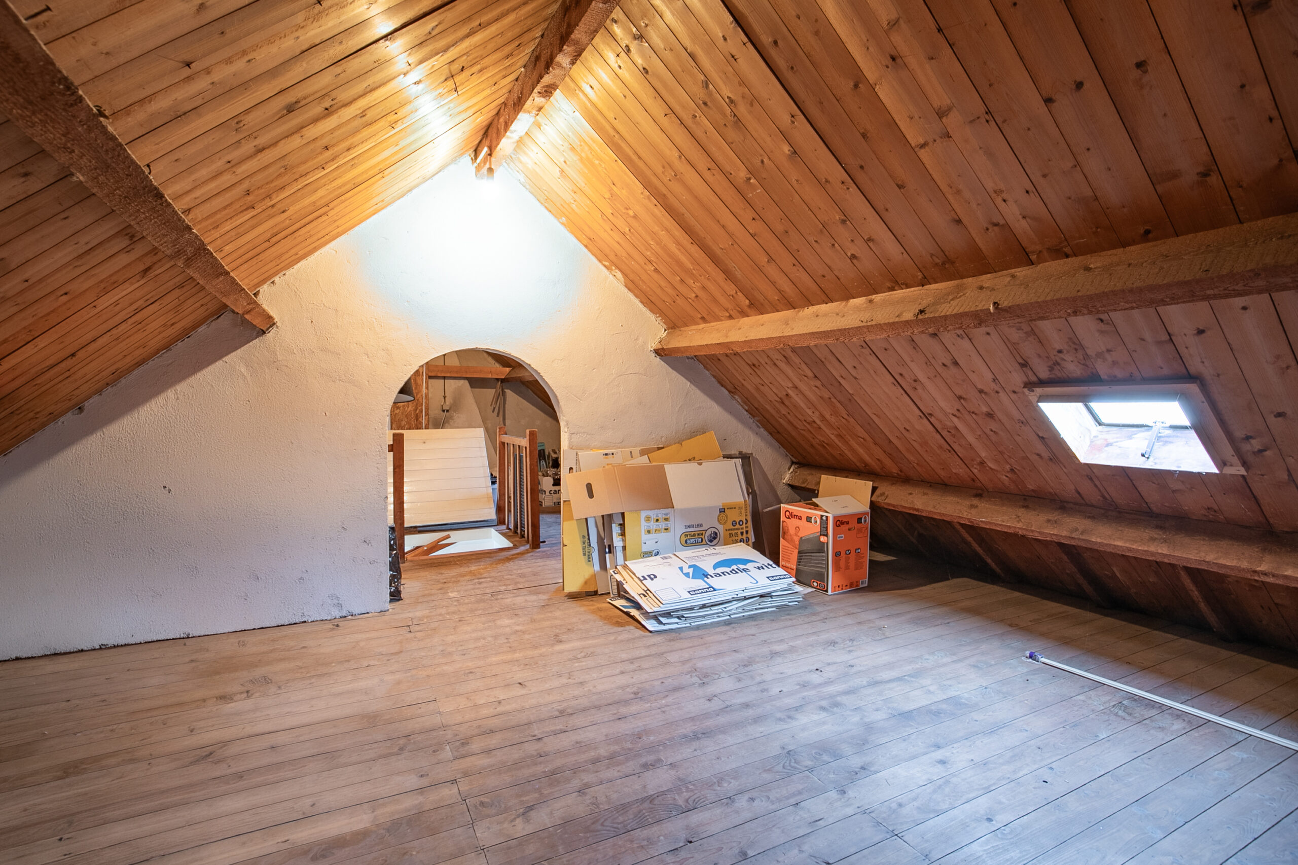 Via een vaste trap bereik je de zolderverdieping. Momenteel in gebruik als bergzolder, maar met voldoende mogelijkheden om hier een extra slaapkamer, hobbyruimte of werkplek te realiseren.