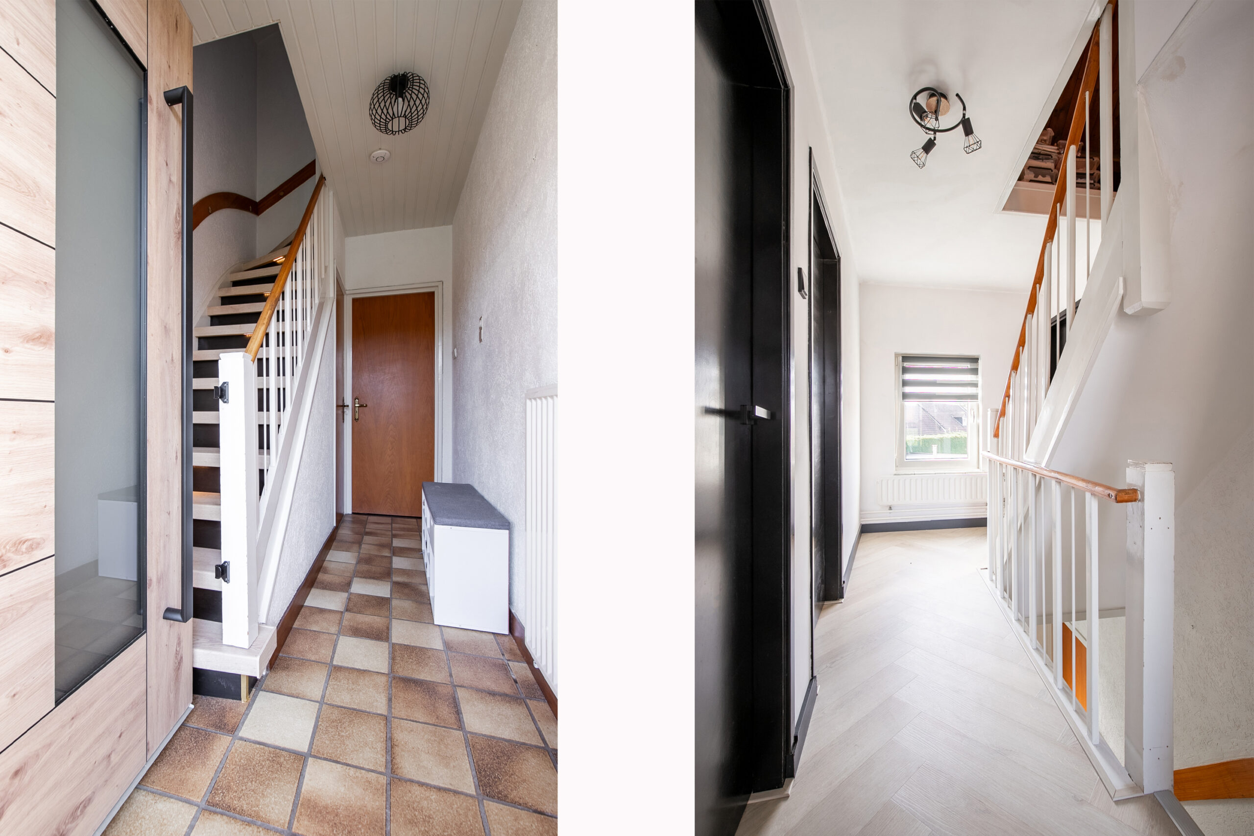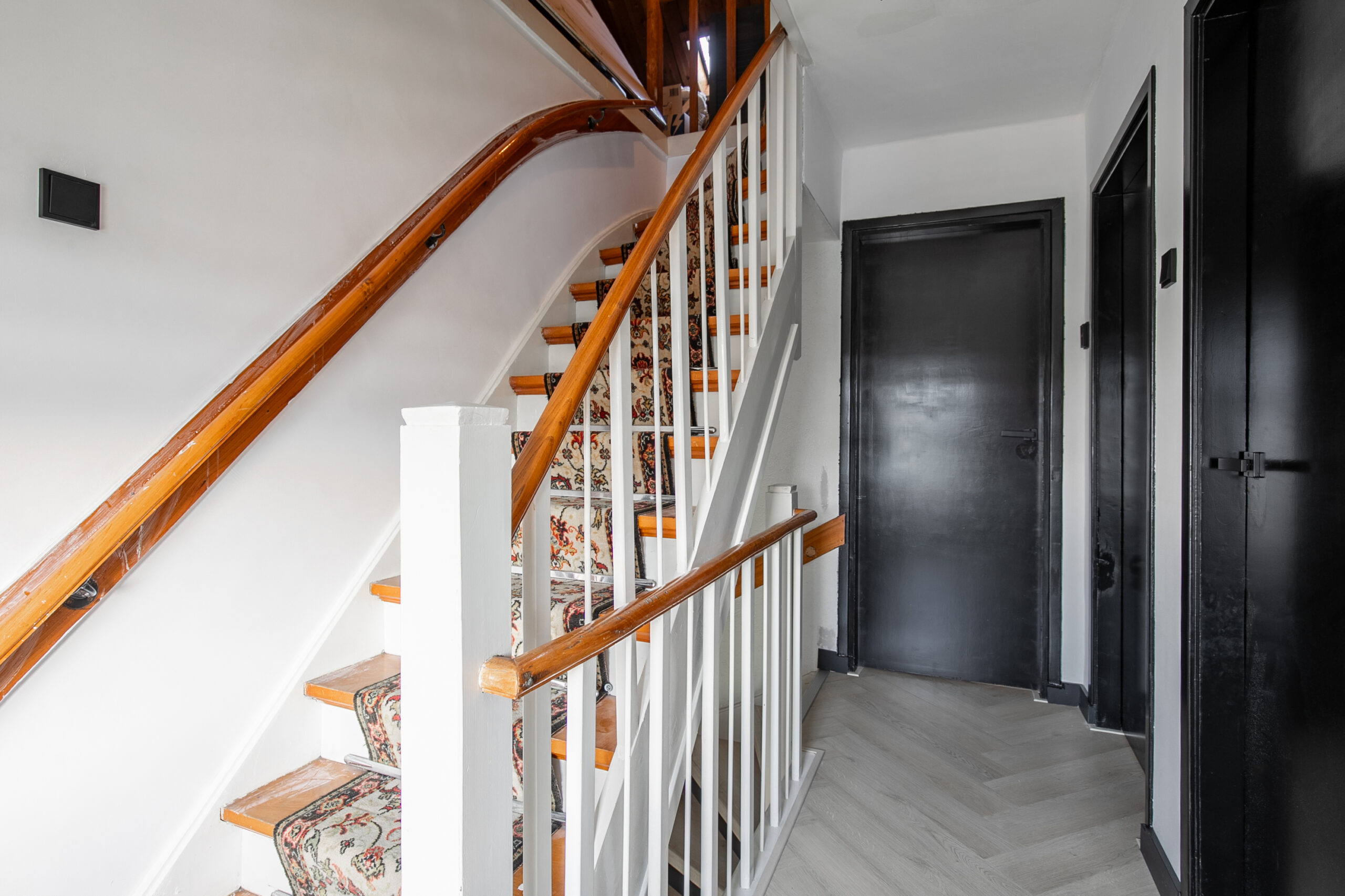 De eerste verdieping is volledig gemoderniseerd en straalt direct sfeer en stijl uit. De visgraat pvc-vloer trekt meteen de aandacht, terwijl de zwarte kozijnen en deuren perfect aansluiten bij de woontrends van nu.