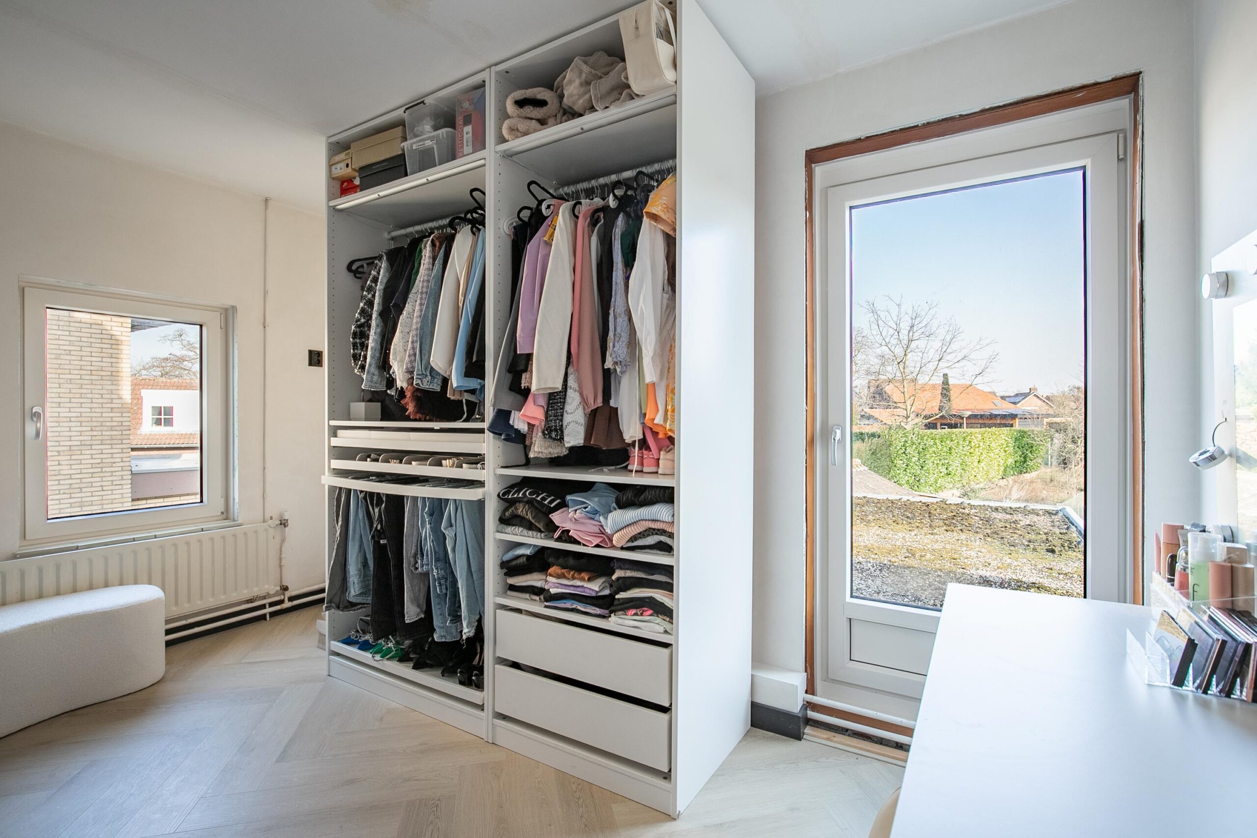 Het kantoor aan de voorzijde van de woning is een fijne, lichte ruimte; perfect als thuiswerkplek of studeerkamer.