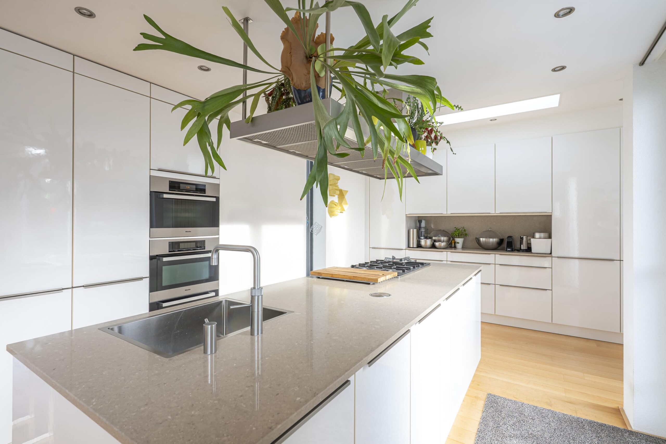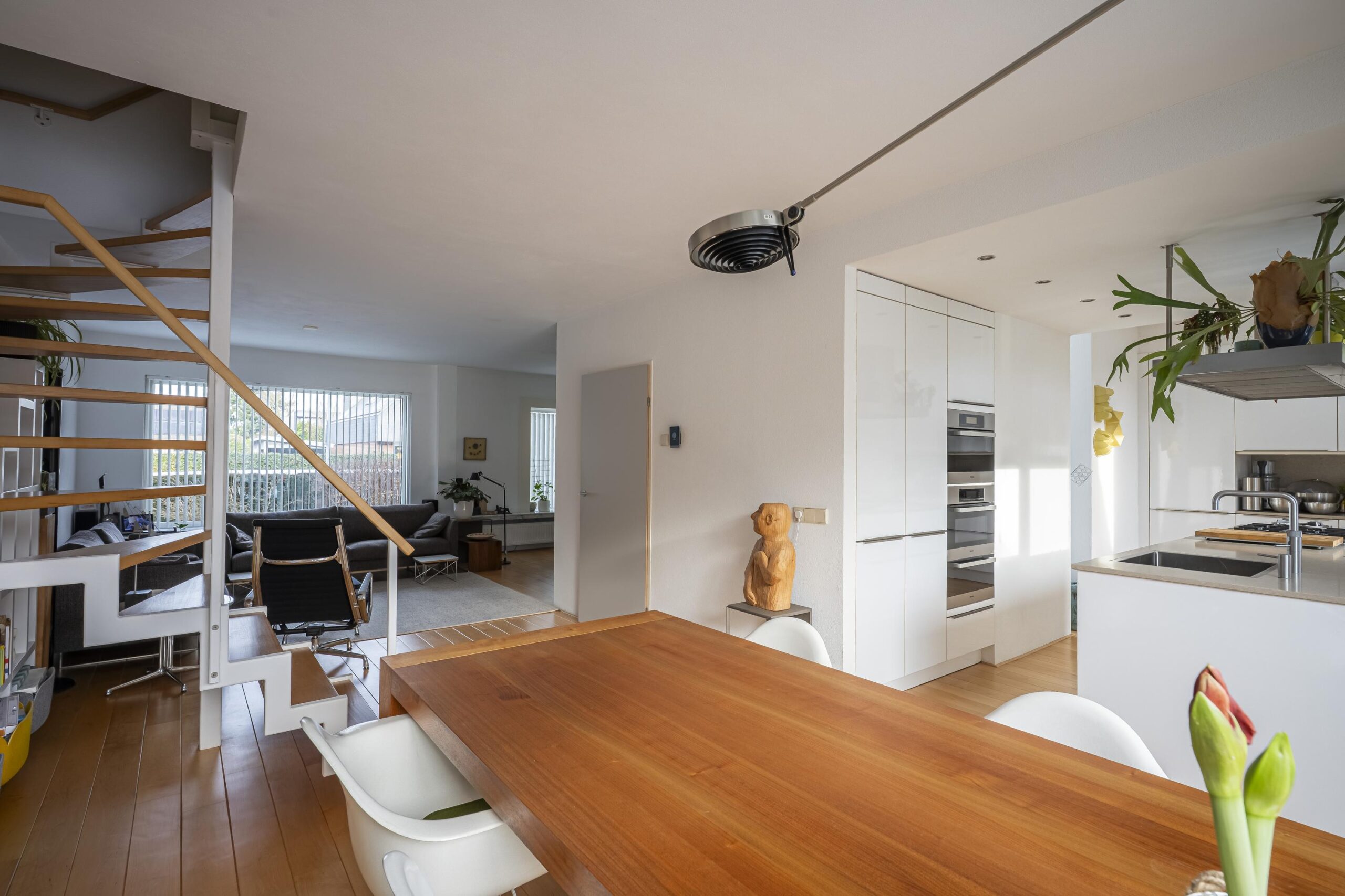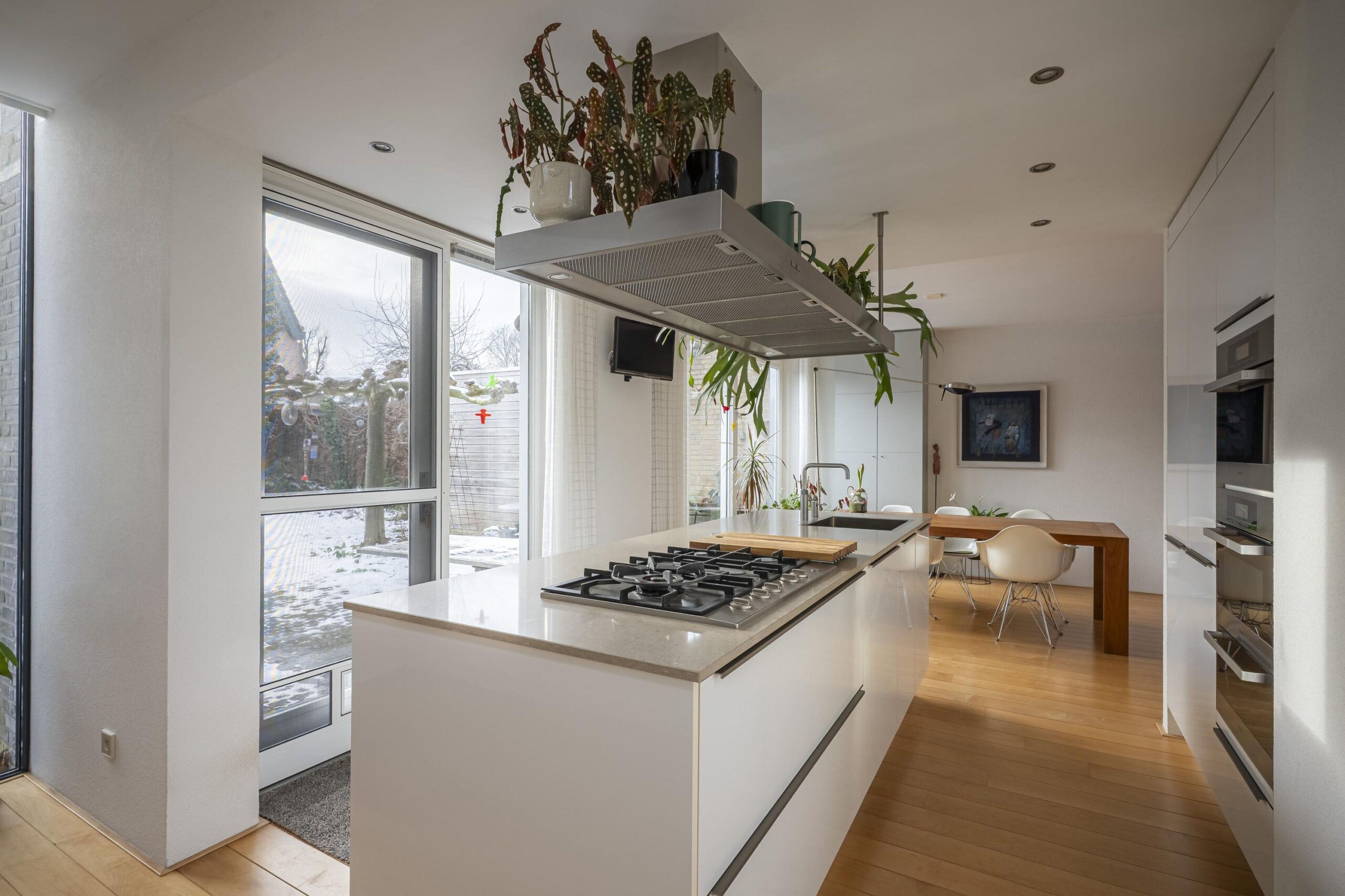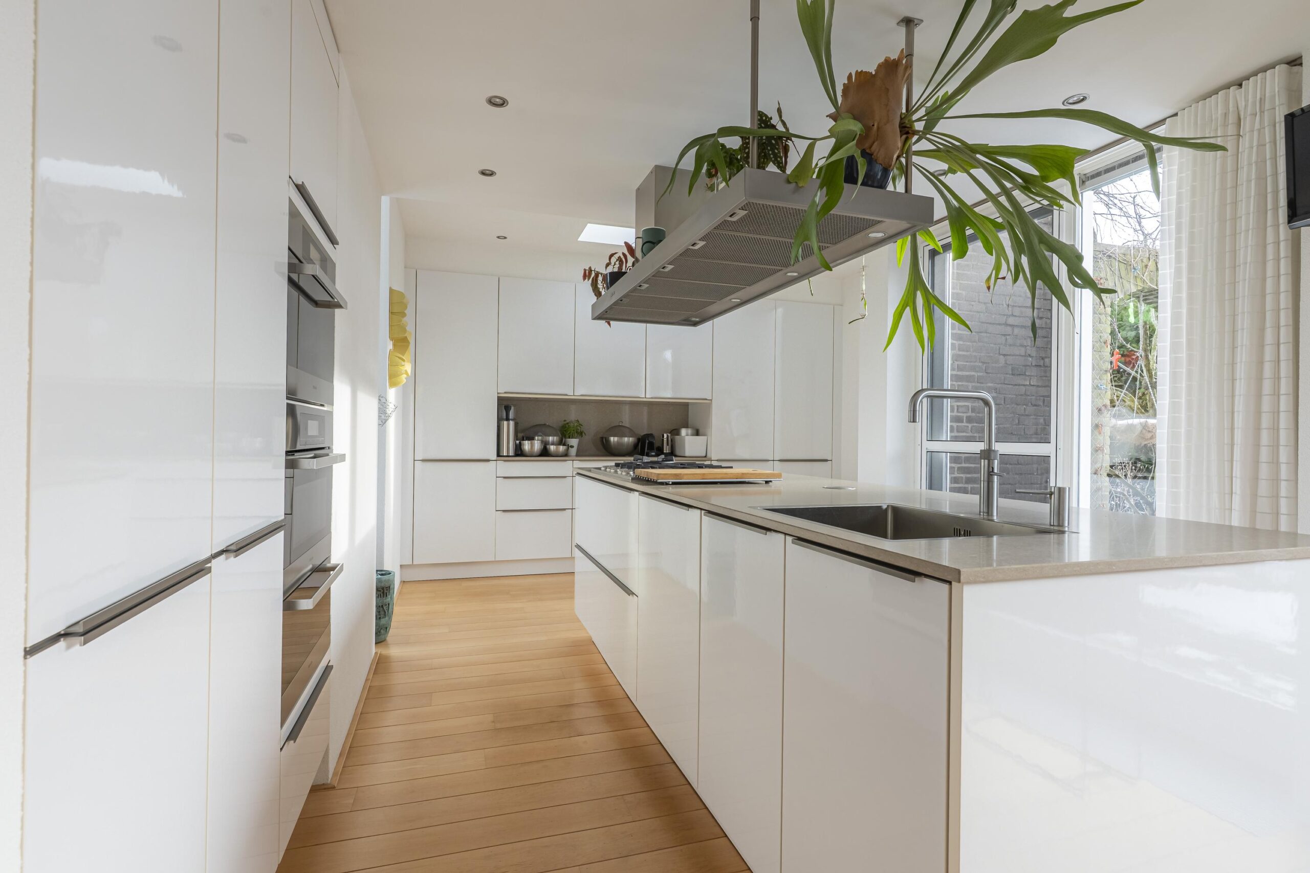 Voor-zijtuin met keurige taxushaag en gevarieerde aanplant. Overdekte entree met toegang tot de hal met parketvloer, spuitwerk, aluminium plafond en uitgebreide/vernieuwde meterkast. Volledig betegelde toiletruimte met hangcloset en fonteintje. Ruime living met aanbouw (in totaliteit ca. 59 m2) met veel lichtinval en leefruimte. Aan de voorzijde de L-vormige woonkamer (ca. 31 m2) met parketvloer, bloemenraam, spuitwerk en trap naar verdieping. Aan de tuinzijde ligt de ruime leefkeuken (ca. 28 m2) met schuifpui, convectorput en aanbouw (2012) met lichtkoepel en inbouwspots. De ruime en luxe Siematic keukenopstelling uit 2012 bestaat uit een royaal kookeiland en dubbele kastenwand met legio bergruimte, 5-pits gaskookplaat, afzuigkap, quooker, kraan, vaatwasser, warmhoudlade, koelkast, diepvries, stoomoven en magnetron (beiden met hetelucht en grillfunctie). De op het zuidoosten gelegen privacyvolle achtertuin is weelderig aangelegd met diverse terrassen en gevarieerde aanplant met o.a. diverse struiken, borders, appelboom, plataan en beukenhaag rondom. Vanuit de tuin is er tevens toegang tot de verlengde garage (ca. 32 m2) met betonvloer, elektrische sectionaalpoort en aanrechtblok met wateraansluiting. Voor de garage is een kleine carport gerealiseerd en ligt een diepe oprit met laadpaal voor het stallen/opladen van bijvoorbeeld (elektrische) auto’s.
