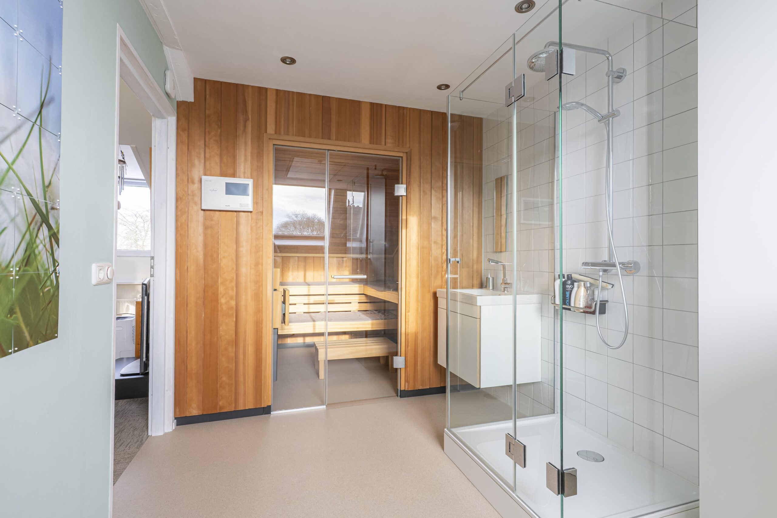 - Badkamervoorzieningen Ligbad, toilet, douche, wastafelmeubel, douche, wastafelmeubel, sauna