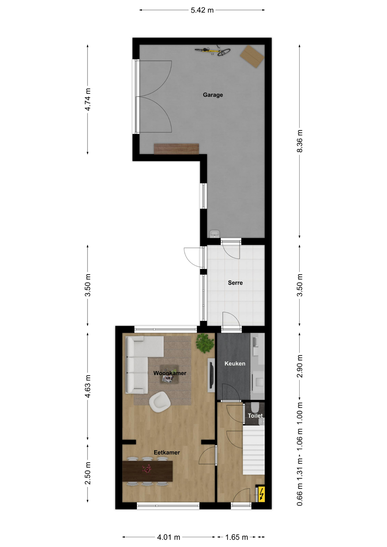 – De woning is volledig voorzien van houten kozijnen met dubbele beglazing.