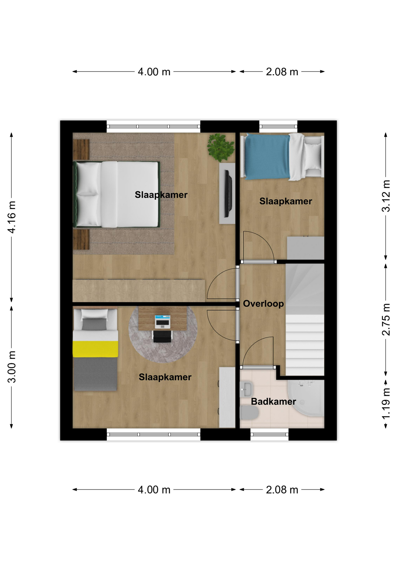 Deze verdieping biedt de mogelijkheid tot het realiseren van een vierde slaapkamer.