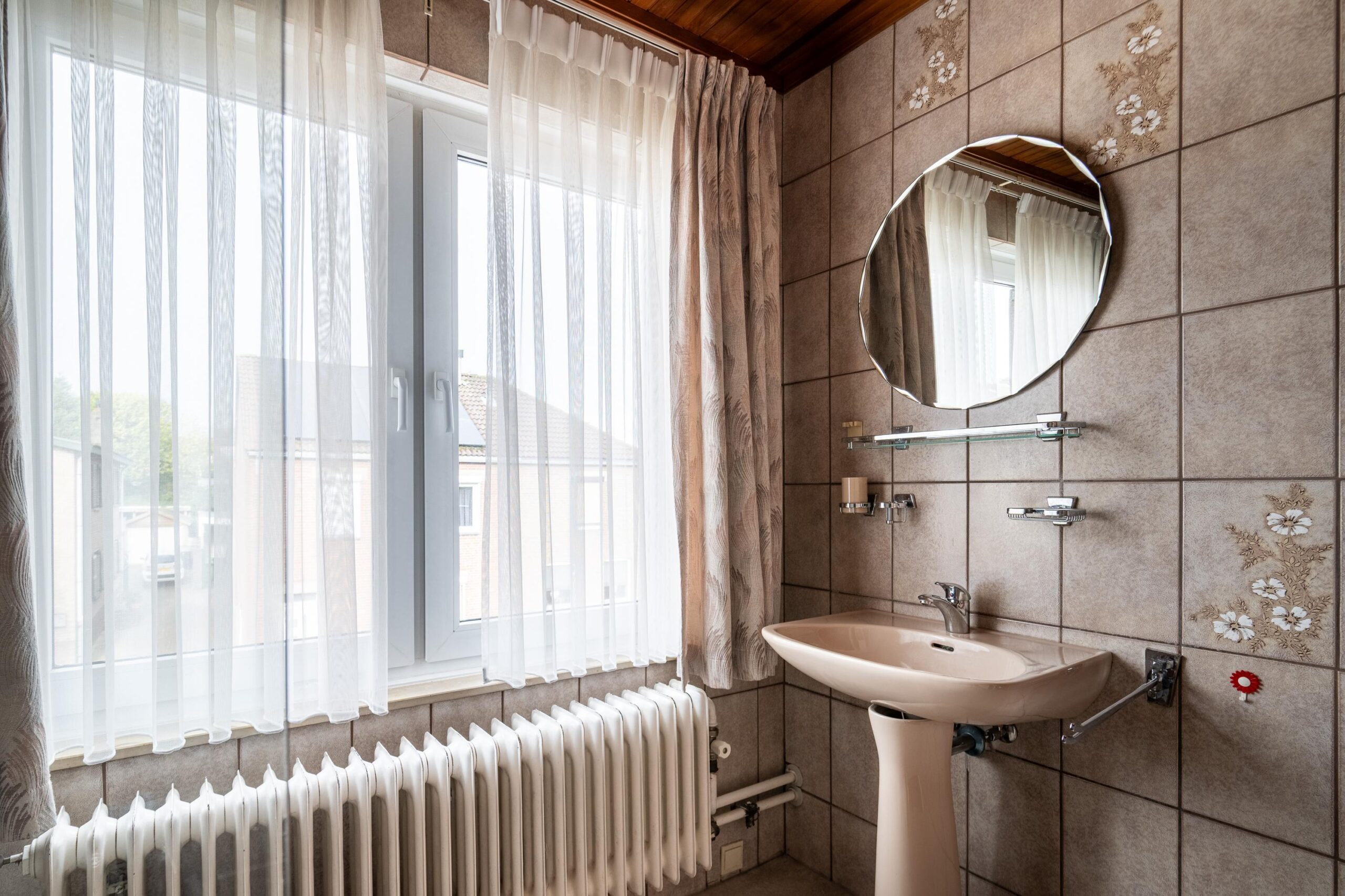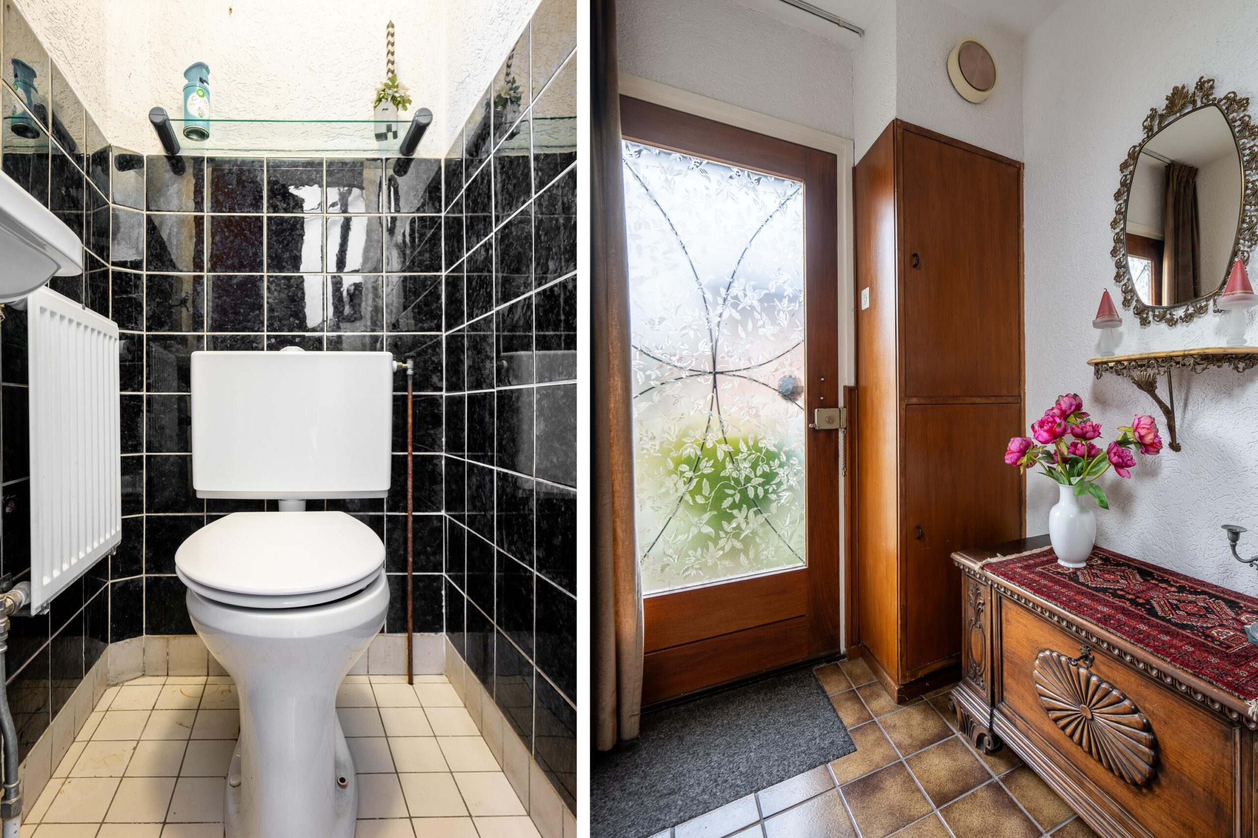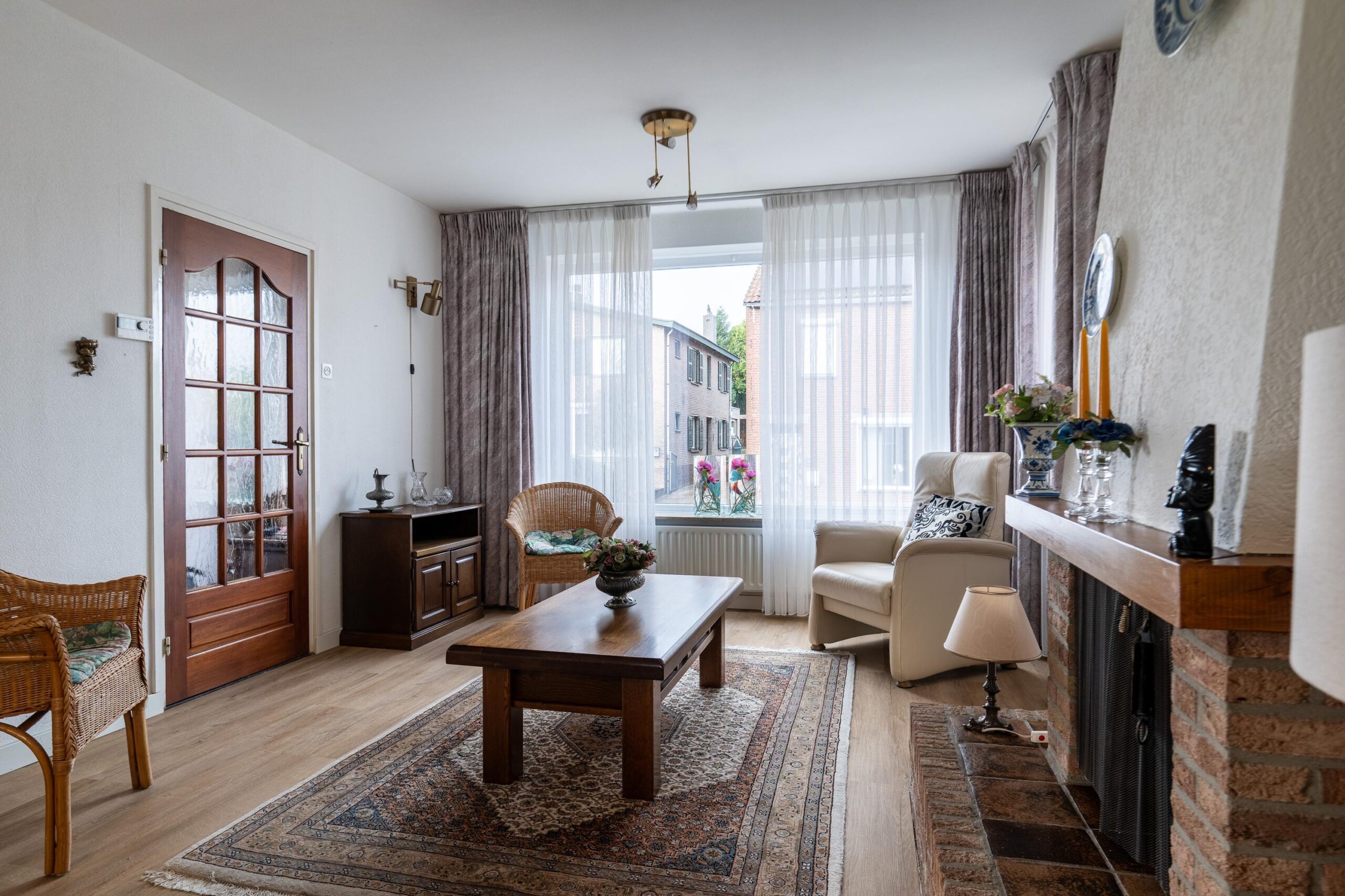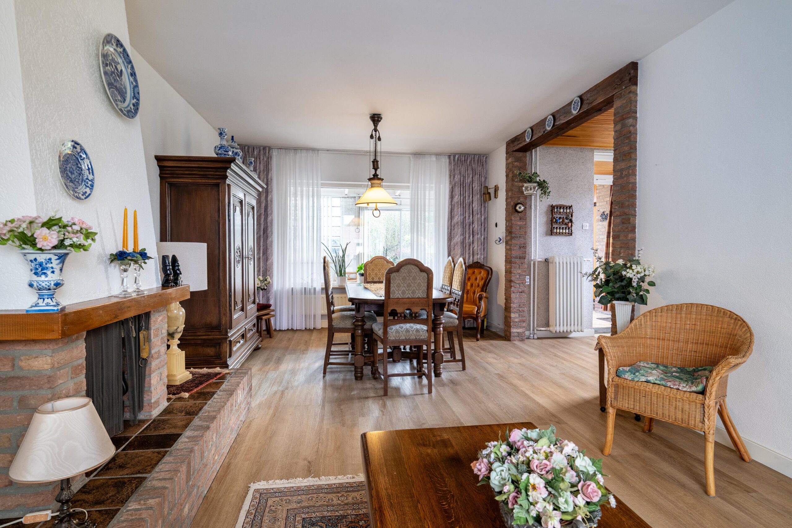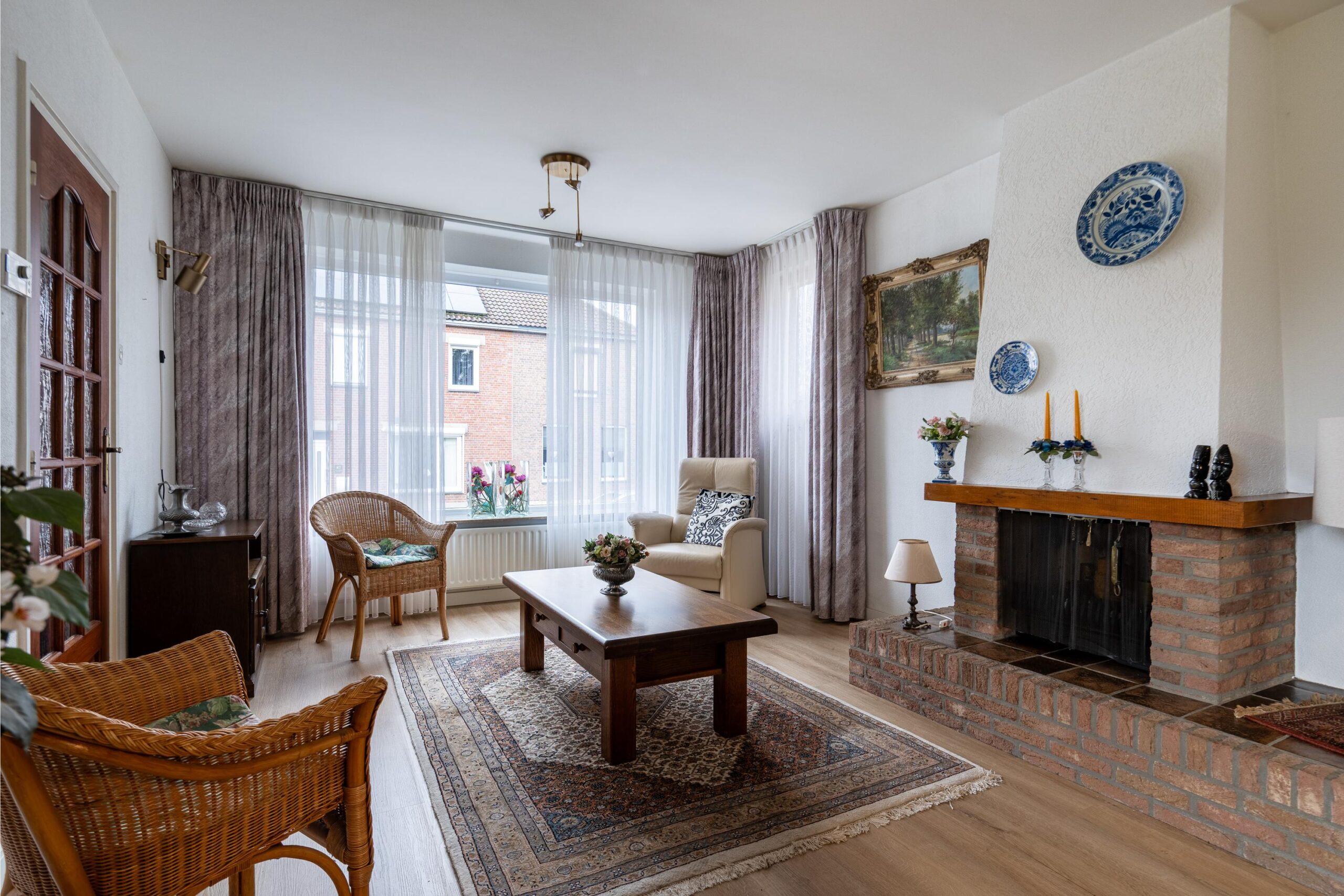Via de verzorgde voortuin bereik je de entree van de woning. De ontvangsthal straalt karakter uit, met een originele trap naar de eerste verdieping en voldoende ruimte voor garderobe en opbergruimte. Het deels betegelde toilet beschikt over een fonteintje, radiator en een raam dat zorgt voor natuurlijke ventilatie. Vanuit de hal bereik je de lichte doorzonwoonkamer. Dankzij de grote raampartijen valt hier de hele dag door een royale hoeveelheid daglicht naar binnen. De moderne pvc-vloer en de gezellige open haard maken het geheel compleet en geven de ruimte een warme en huiselijke sfeer.