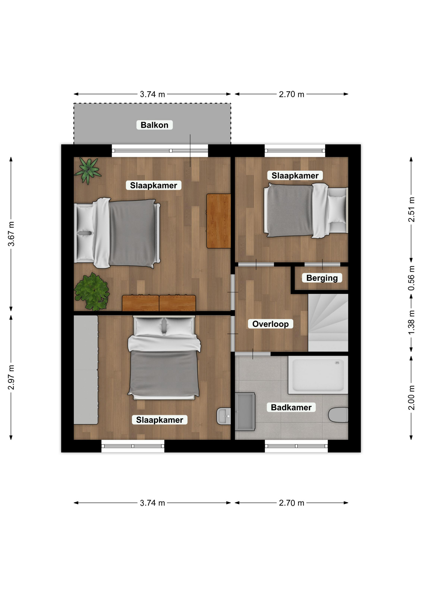 Op de eerste verdieping biedt de overloop toegang tot drie slaapkamers van respectievelijk: