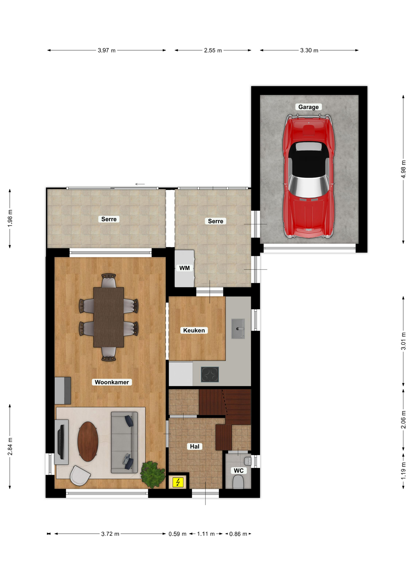 De garage is zowel via de serre als via de oprit te bereiken en is uitgerust met een kantelpoort en praktisch wasbakje.