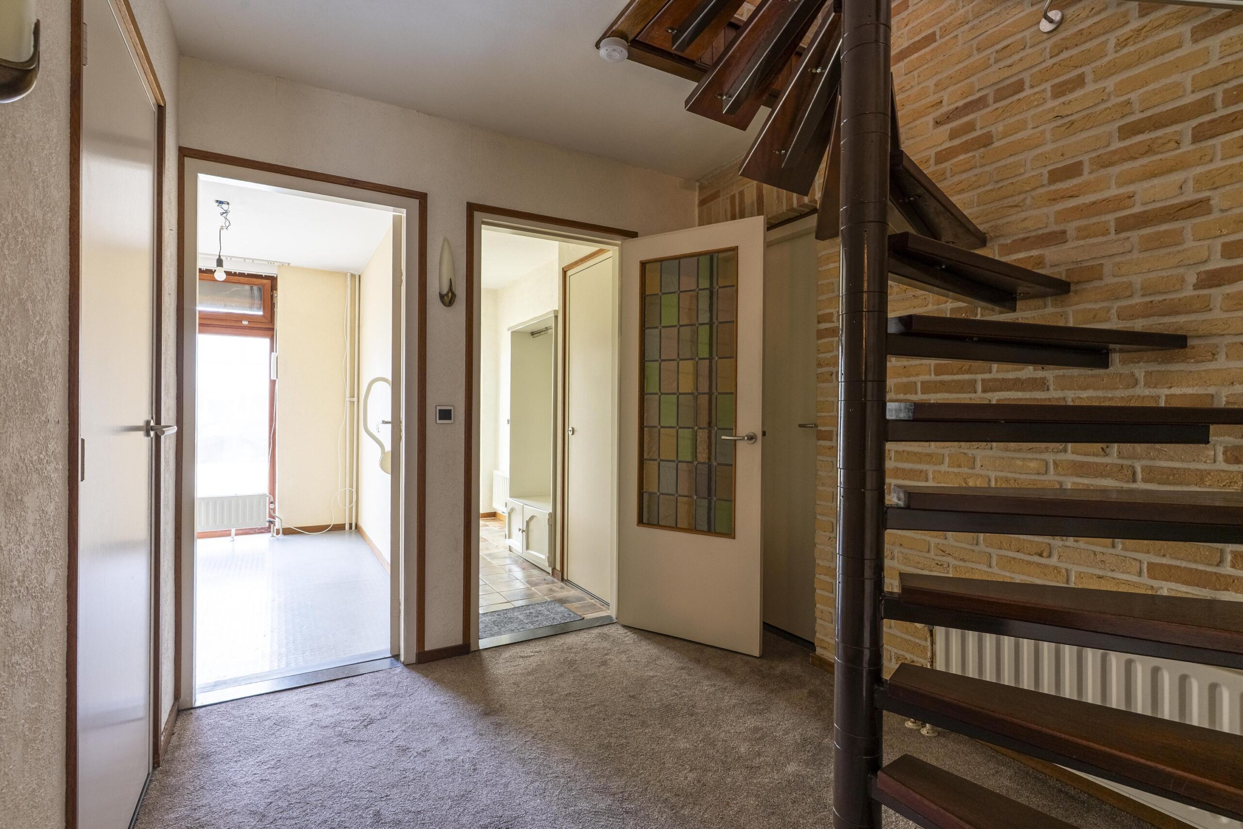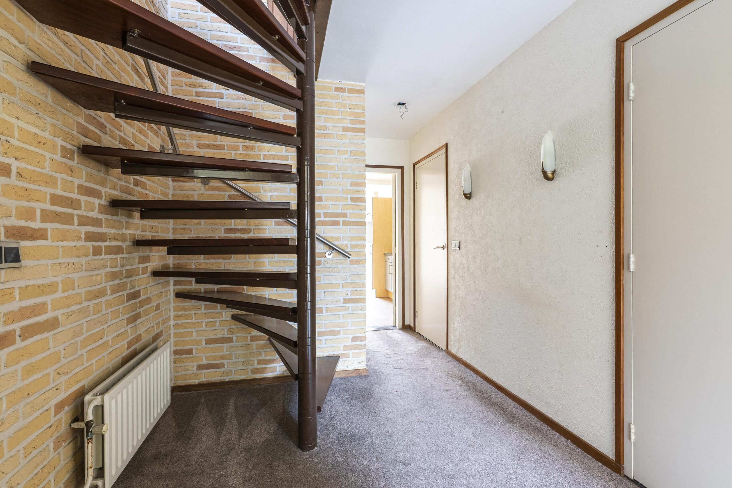 Entree. Hal met toegang naar de ontvangstruimte met trappenpartij naar de eerste verdieping, toegang naar de eerste slaapkamer, toiletruimte en badkamer.