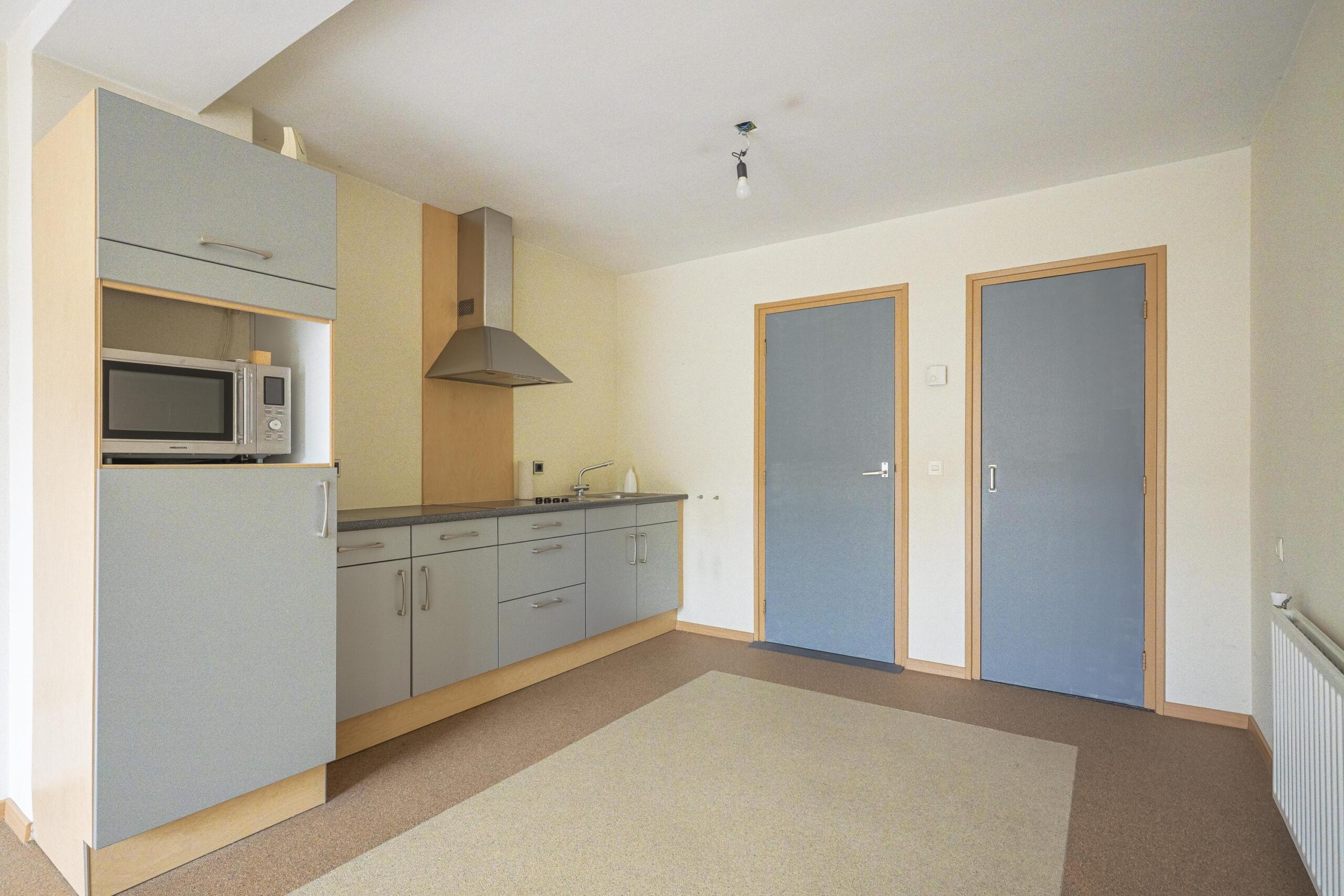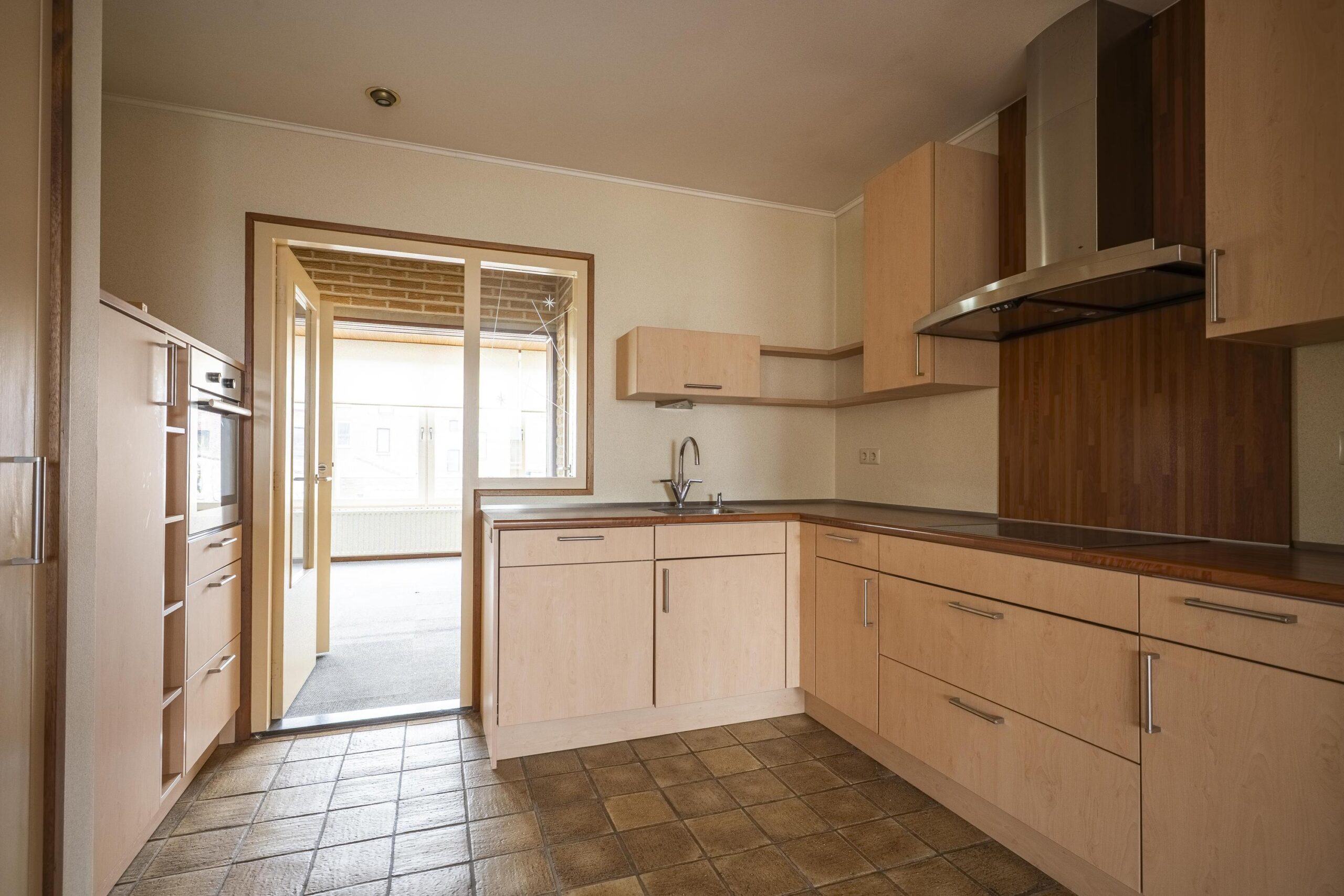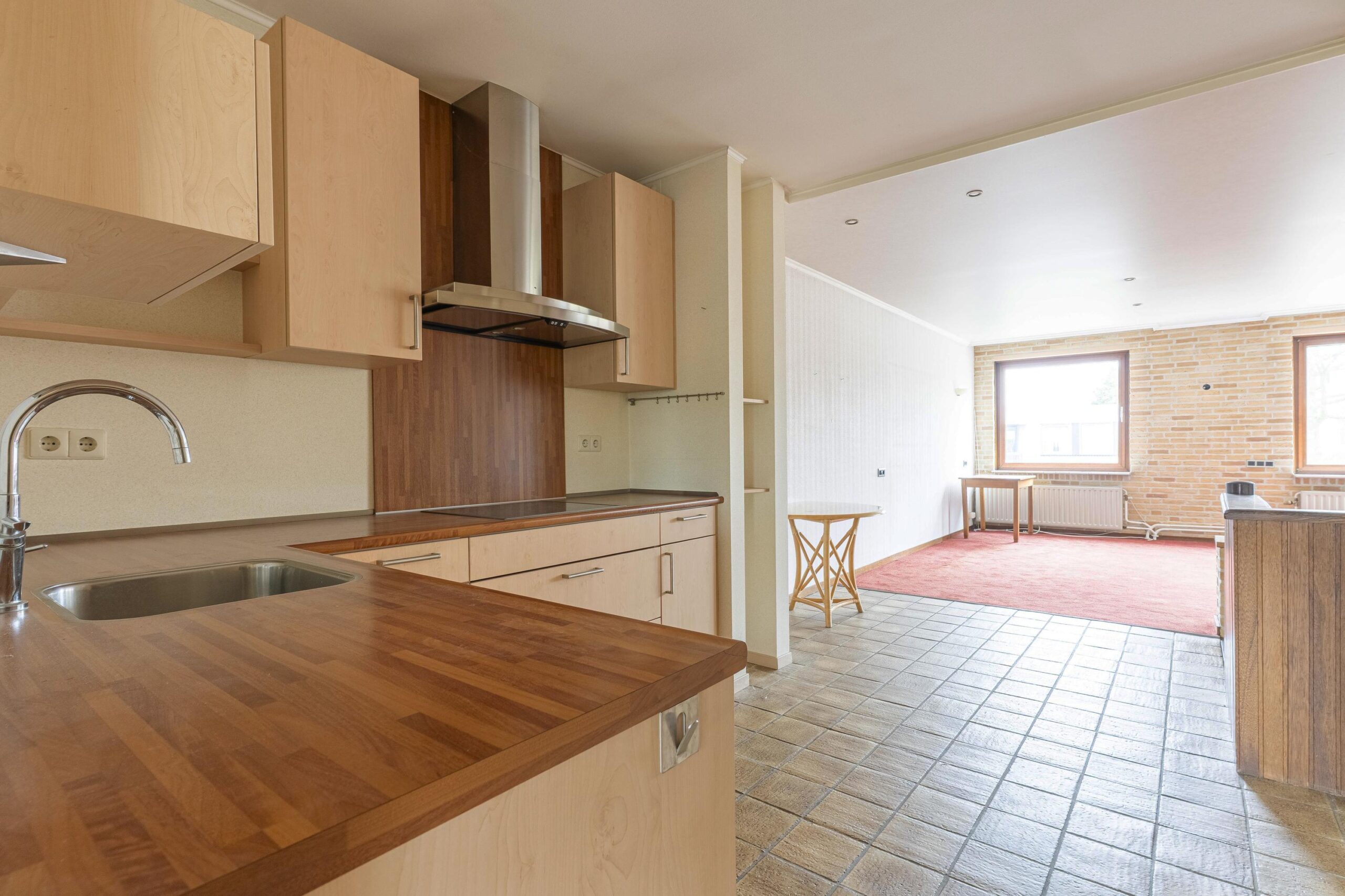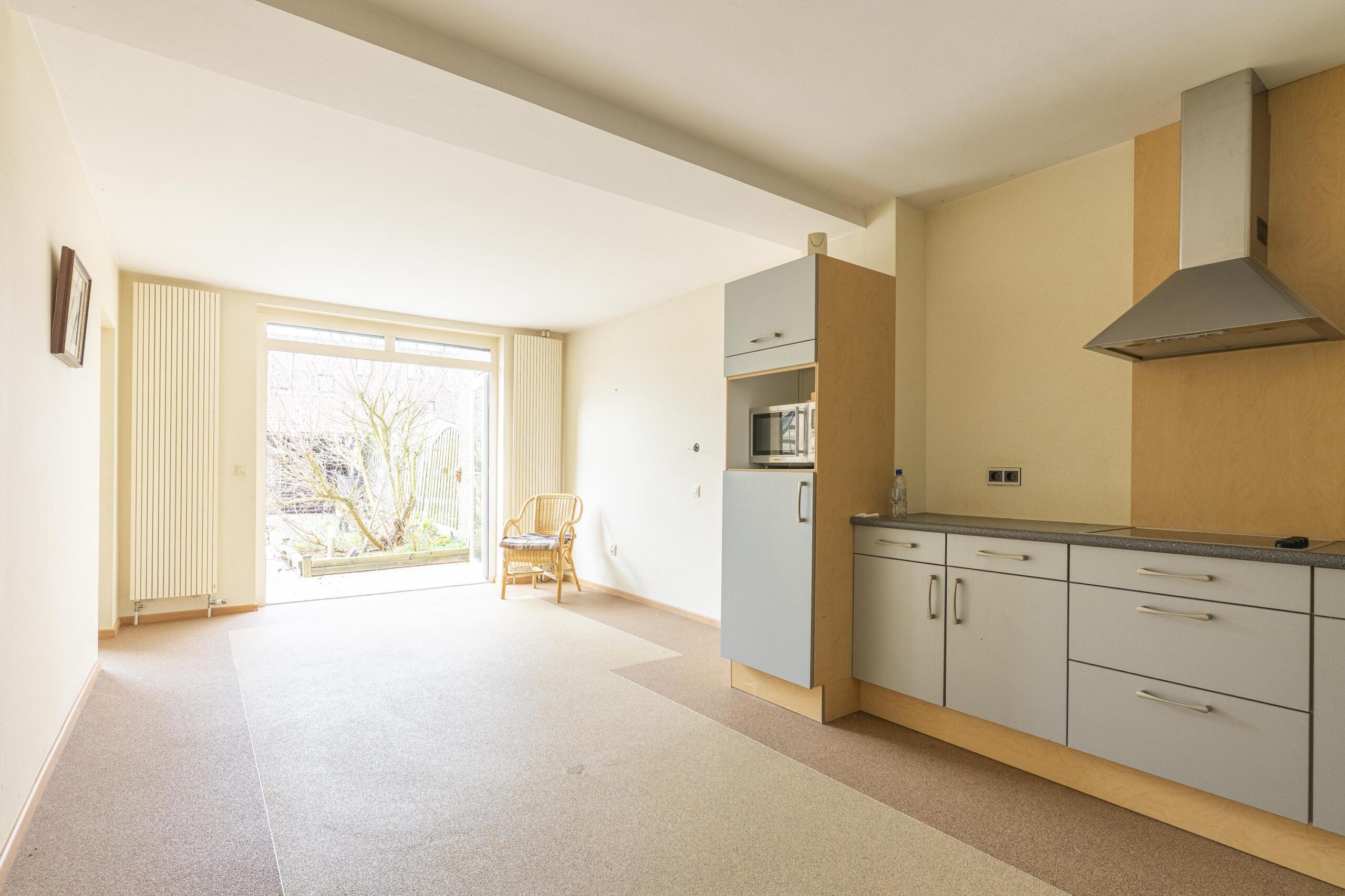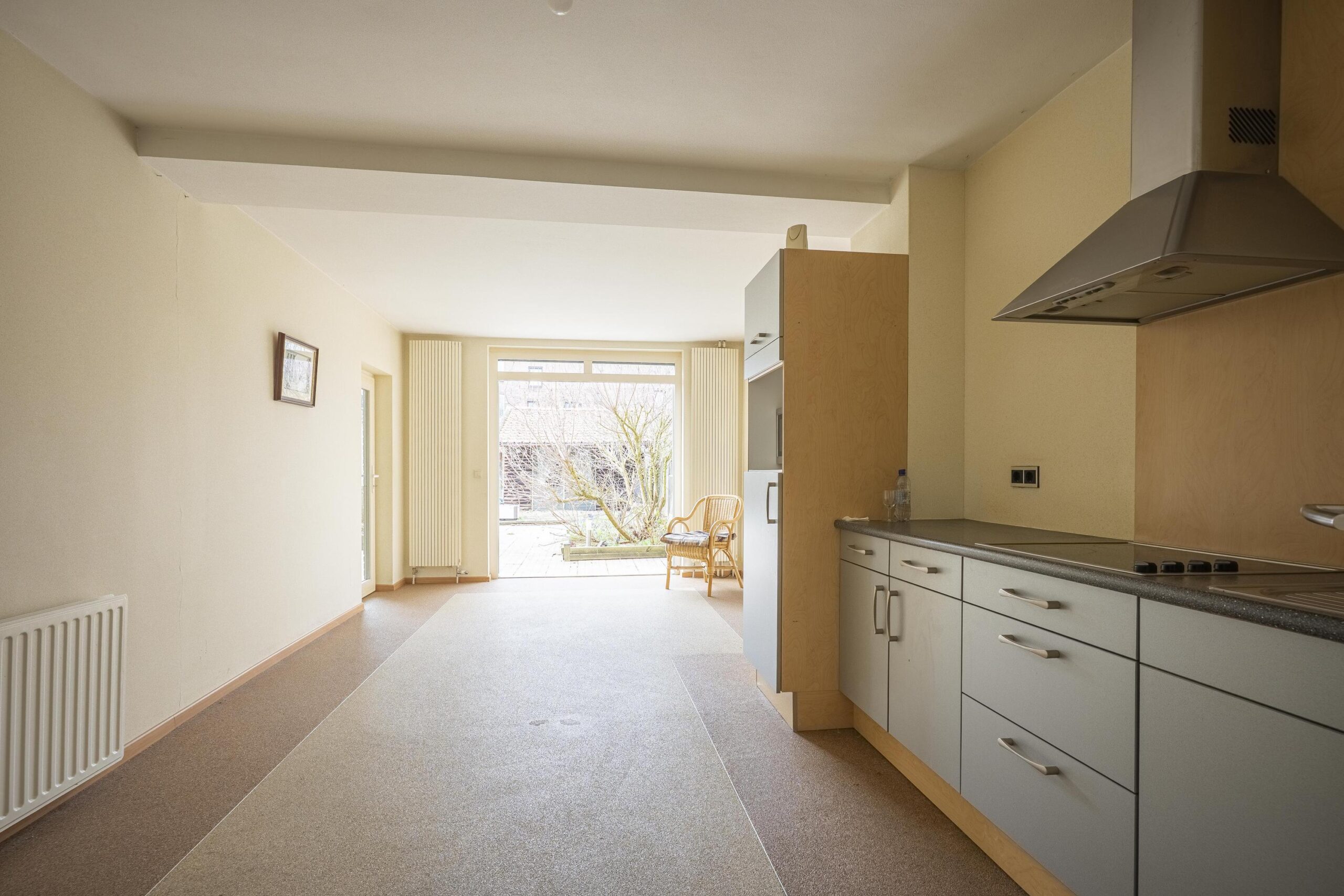 Ruime woonkamer uitgerust met een haardpartij. De woonkamer is aan de voorzijde gelegen en staat in open verbinding met de keuken. De keuken is voorzien van een keuken in hoekopstelling inclusief apparatuur: inductiekookplaat, afzuigkap, vaatwasser, combi-oven en koelkast.