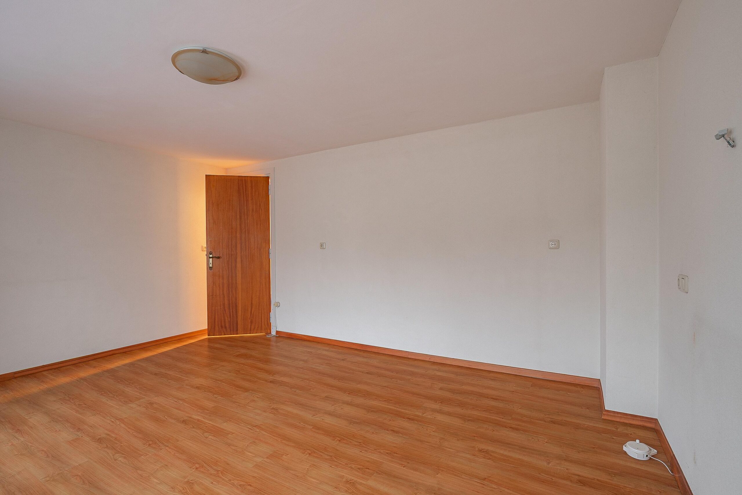 We lopen verder naar de woonkamer. Hier valt direct op hoe aangenaam ruim de woonkamer is. Op de vloer ligt een tegelvloer en de wanden zijn voorzien van behang. Hiermee is de woonkamer een blanco canvas waar je met gemak je eigen stempel op drukt. Hoe ga jij het inrichten? Zowel aan de voor- als de achterzijde is voldoende ruimte voor een royale zit- en eethoek.