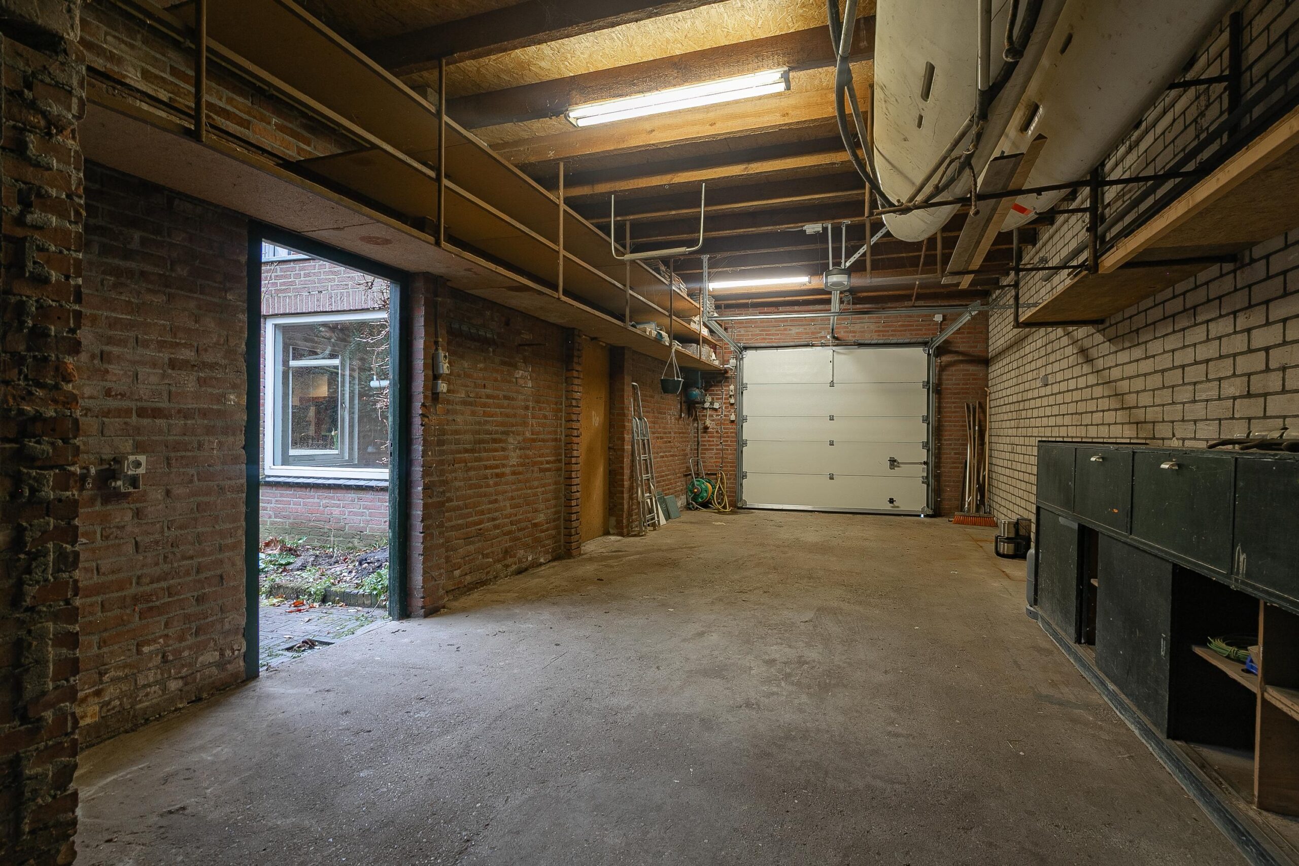 Tevens is er vanuit de voorzijde van het huis en de tuin toegang tot de garage. Deze royale garage is circa 57 m² groot en biedt volop mogelijkheden. Van veilig stallen van voertuigen tot het inrichten van een hobbyruimte of werkplaats. Een fijne ruimte die je helemaal naar eigen wens kunt benutten!