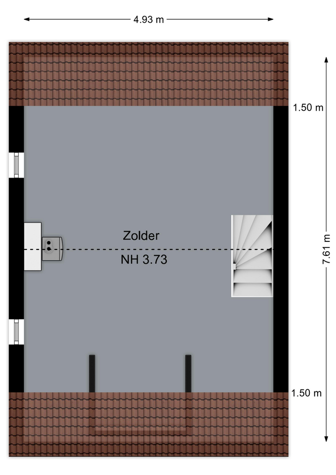 – Royale zolder met dakkapel;