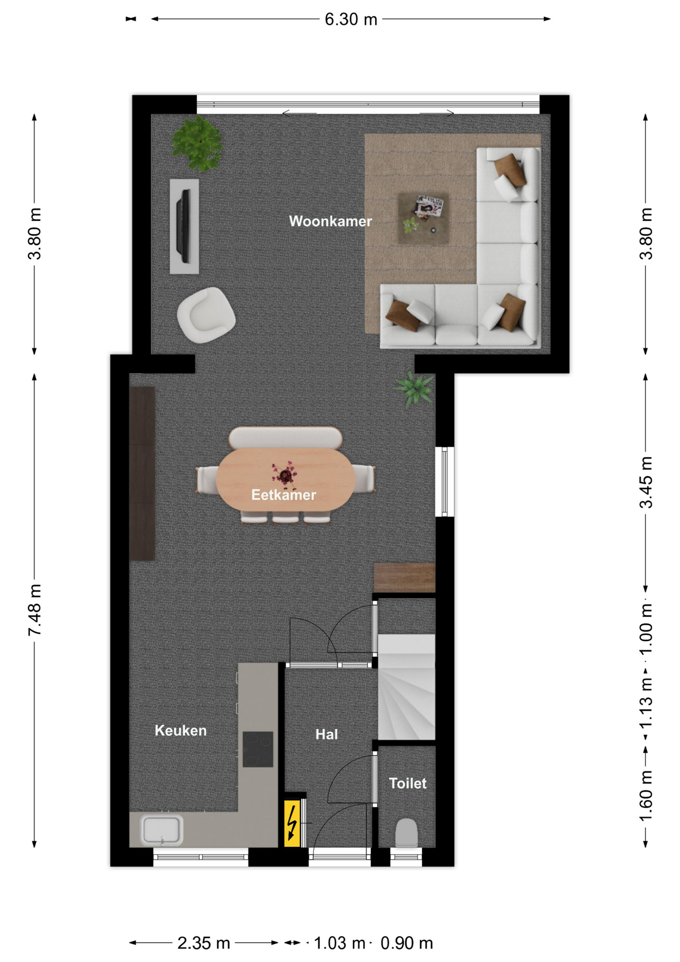 De begane grondvloer is royaal van opzet doordat er een aanbouw is gerealiseerd van ca. 24m2 groot. Hierdoor is er extra woonruimte gecreëerd met mogelijkheden. De gehele begane grondvloer is voorzien van een grindvloer met vloerverwarming. De keuken is uitgerust met een keuken in hoekopstelling inclusief apparatuur: vaatwasser, combi-oven, keramische kookplaat, afzuigkap en koelkast. Door de vele raampartijen geniet de woonkamer veel lichtinval.