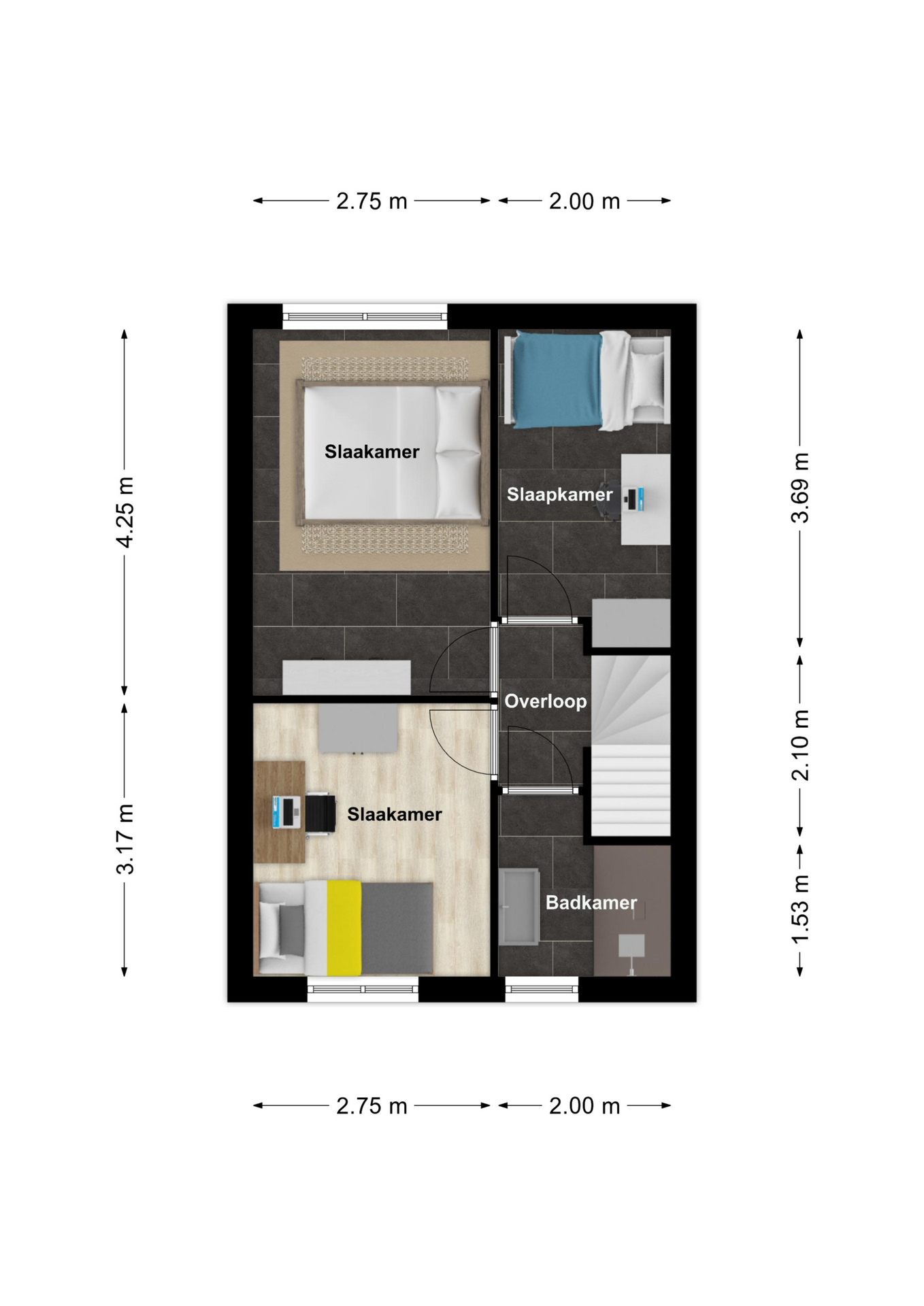 Middels vlizotrap is de zolder bereikbaar. Indien men een vaste trap realiseert is een vierde slaapkamer mogelijk.