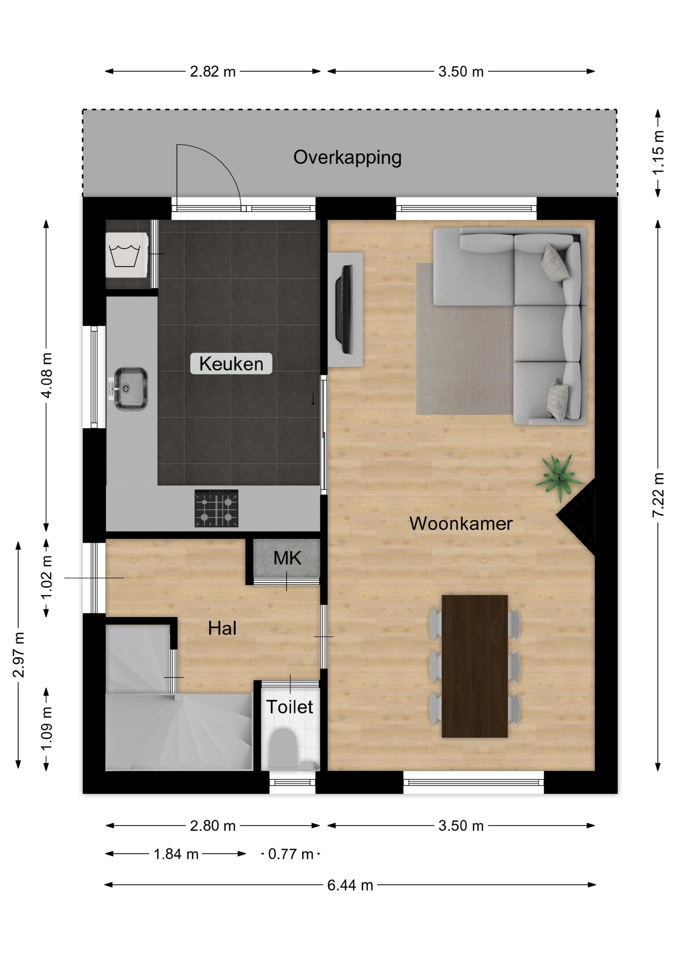 - Oppervlakte gebouwgebonden ca. 8 m2