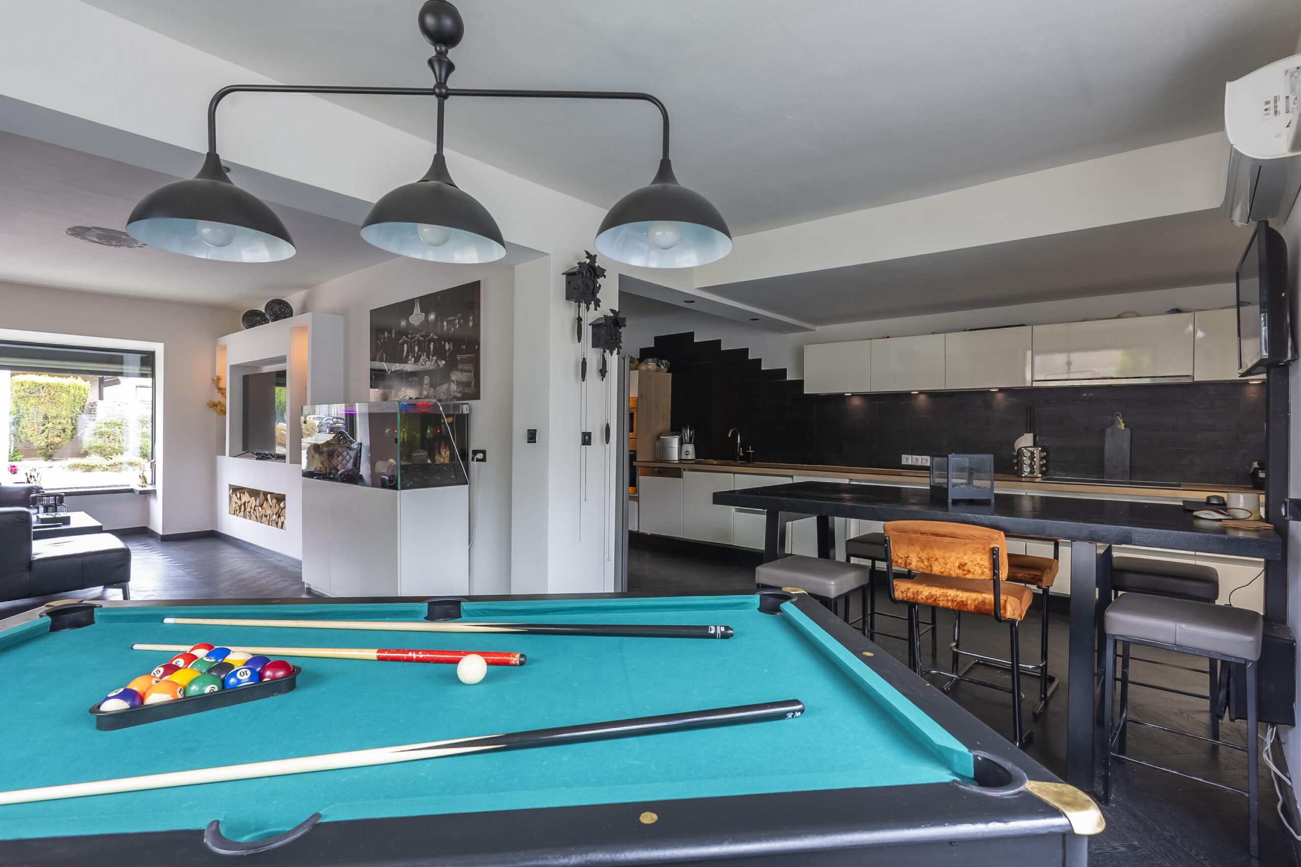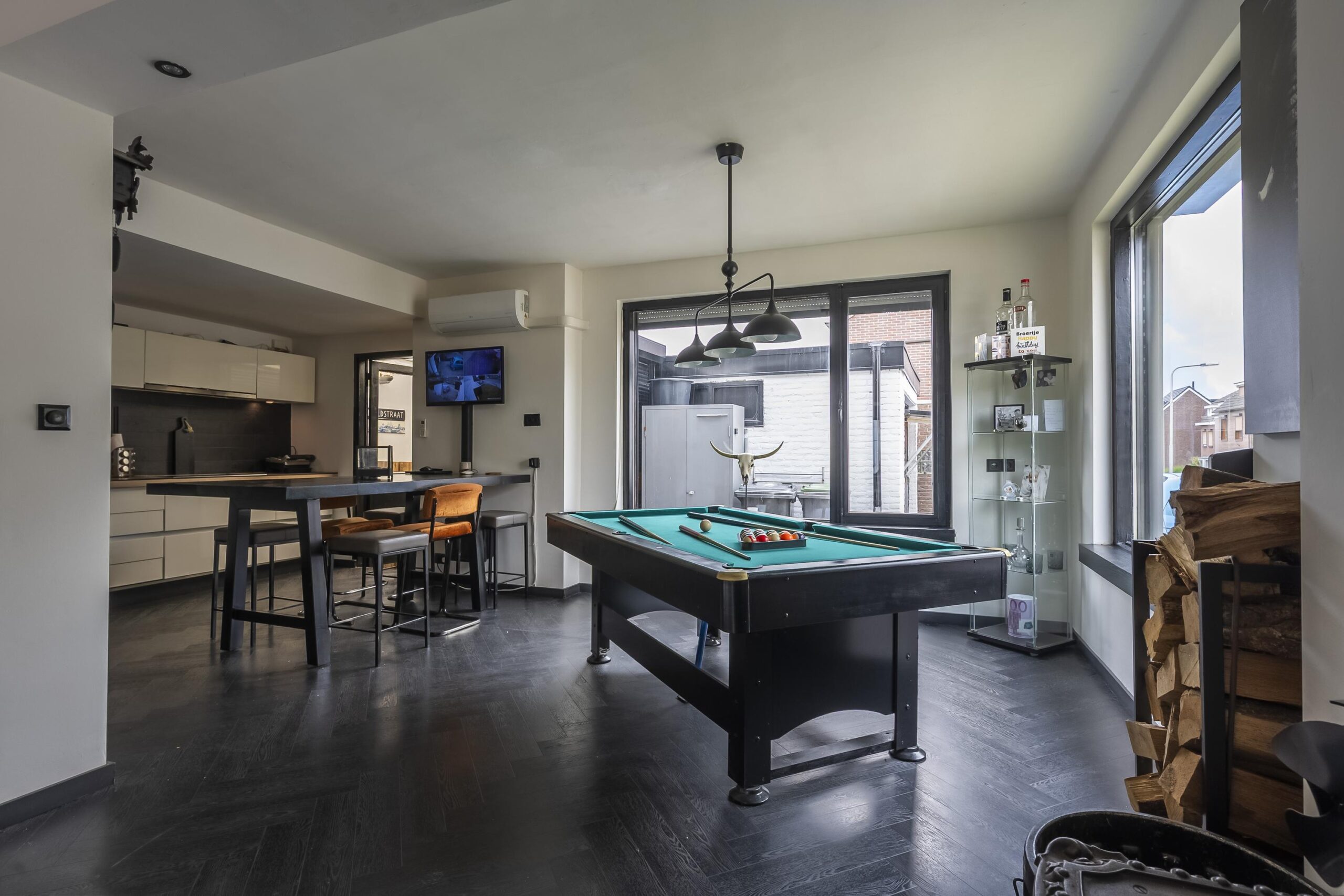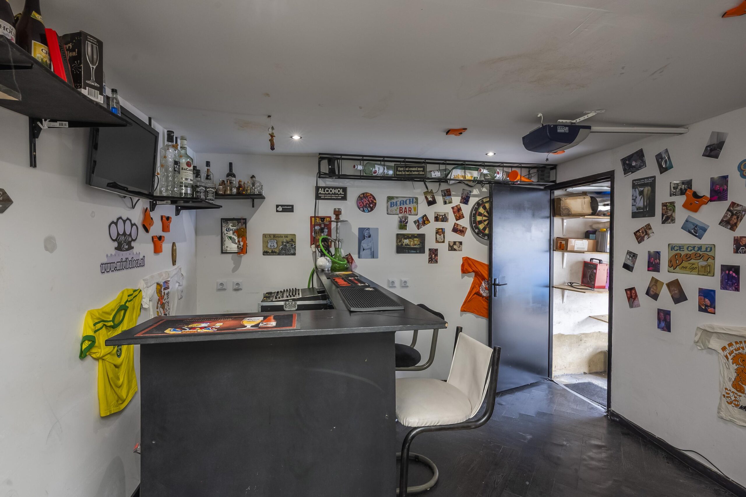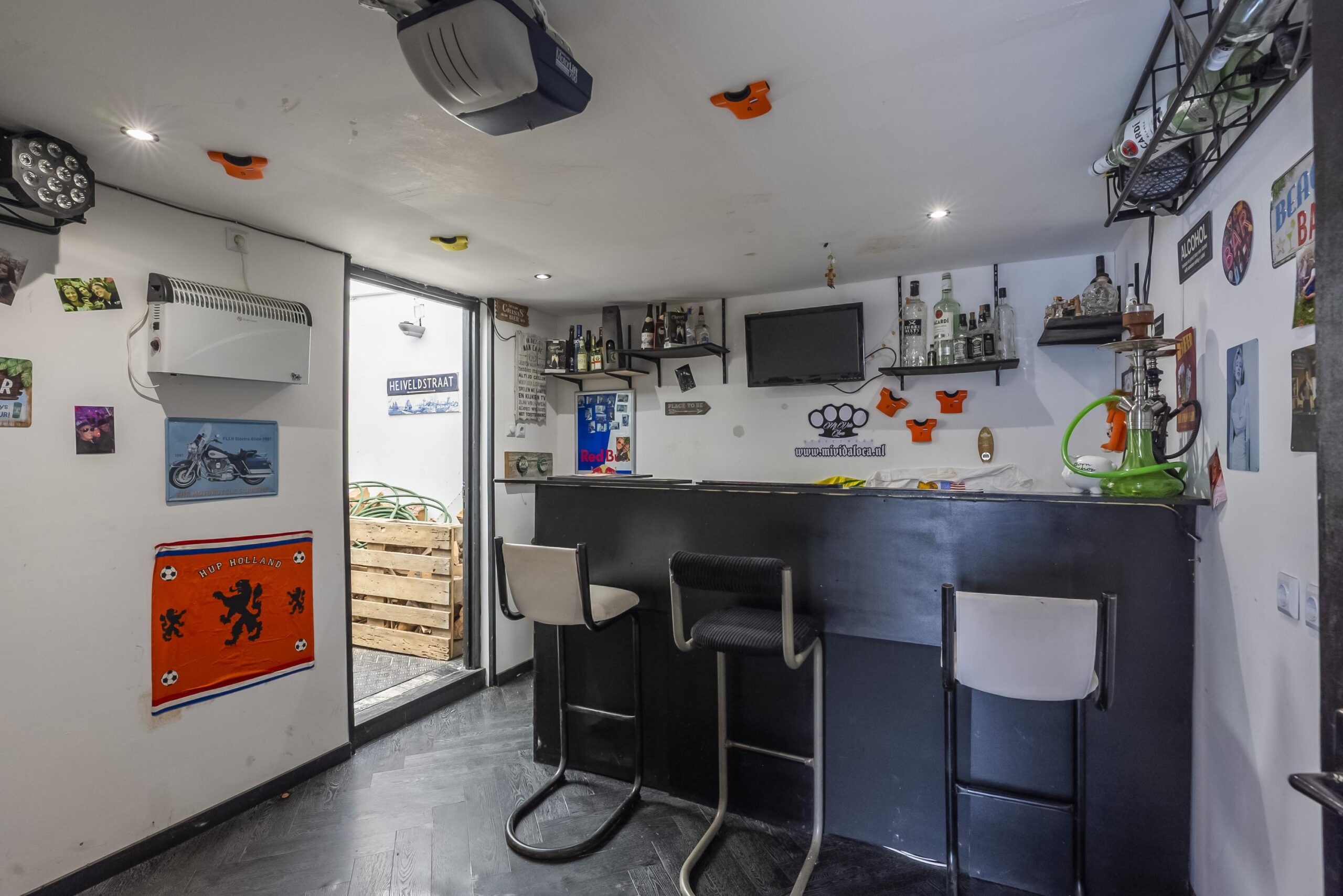 Via de keuken bereikt men middels een tussenruimte de mancave/ voormalige garage met op maat gemaakte bar, de ruimte is grotendeels geïsoleerd, beschikt over een tv-aansluiting, elektra en doorloop naar werkruimte met elektrisch bedienbare poort naar dubbele oprit.