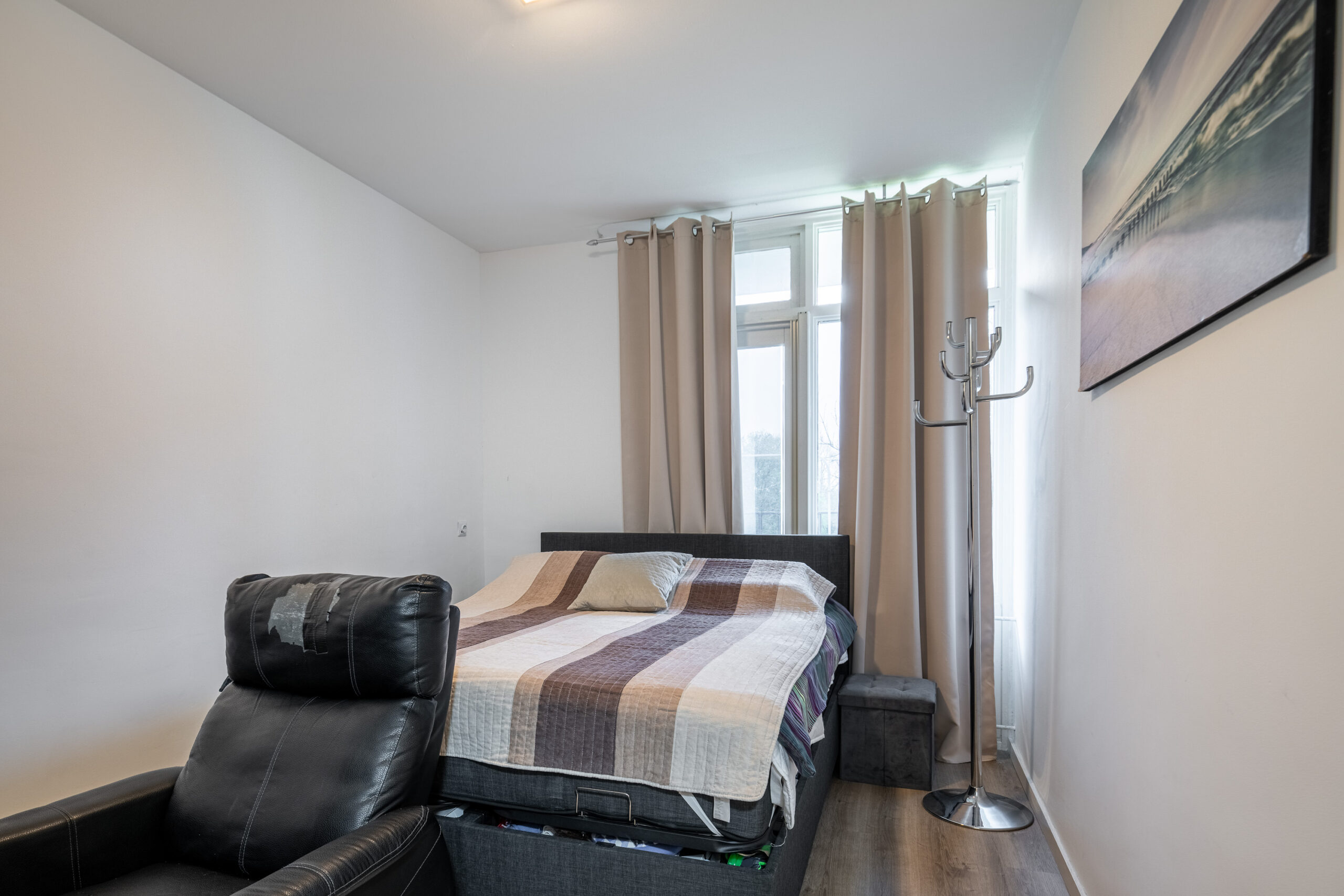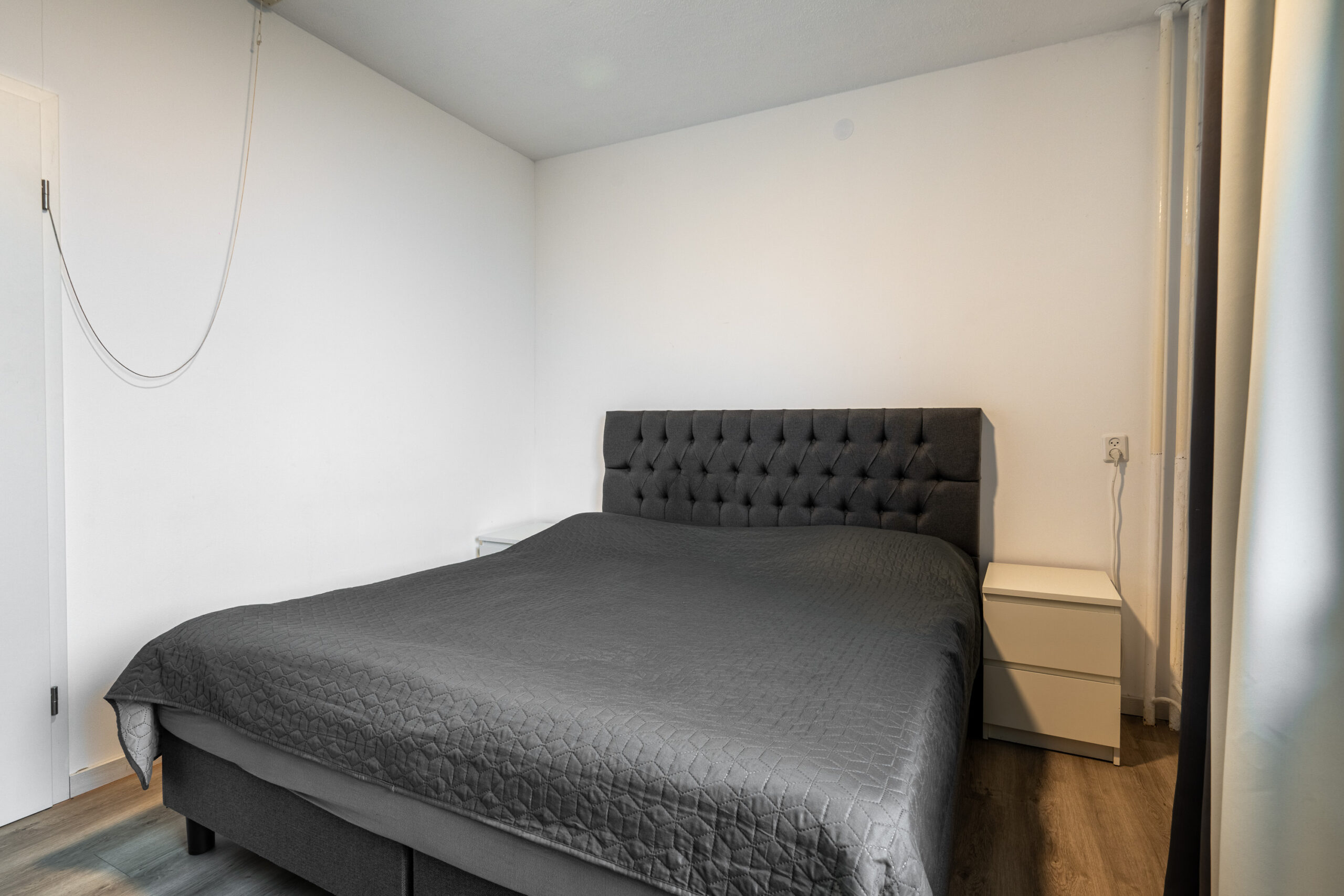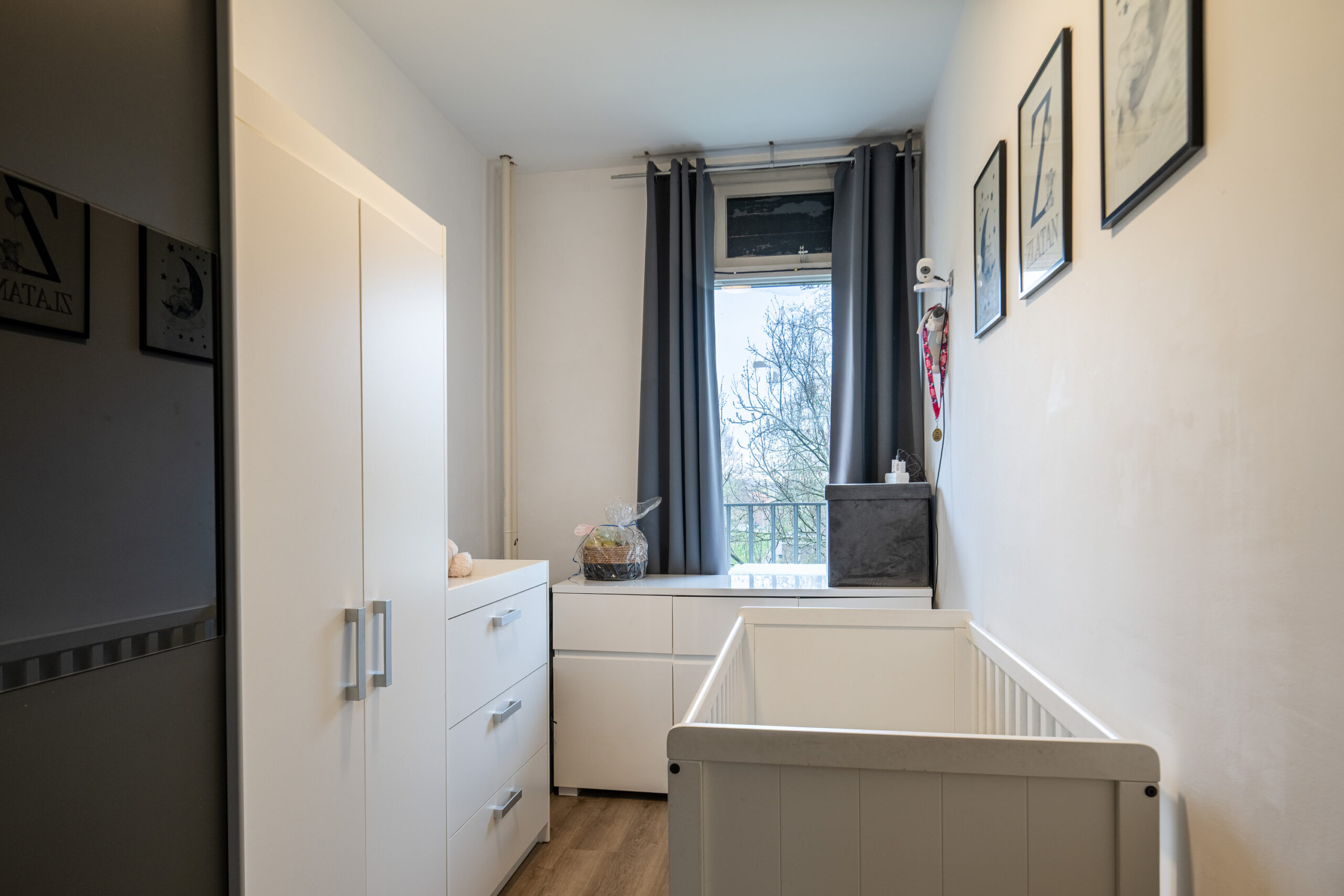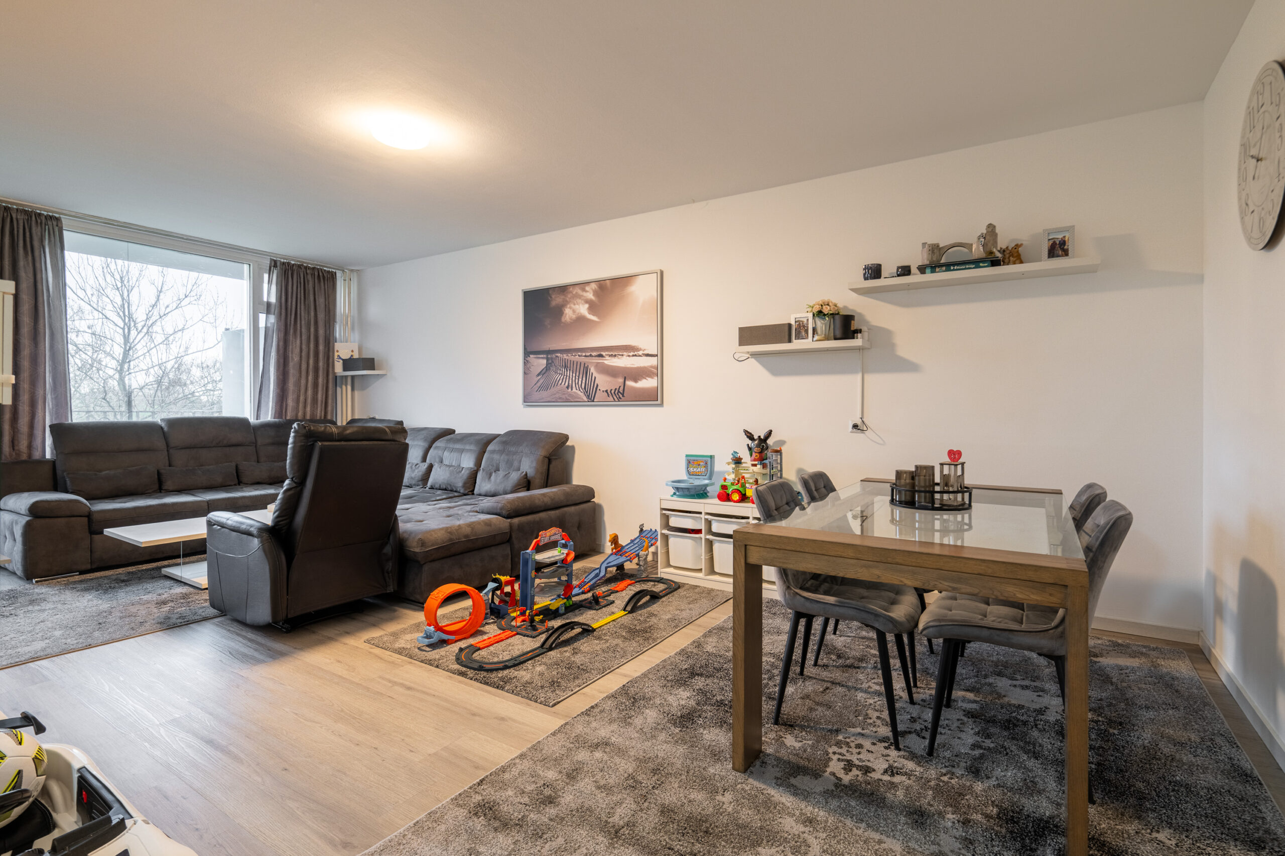 Via de galerij bereikt u de entree van het appartement. De hal is voorzien van een moderne groepenkast en garderobe en geeft toegang tot de centrale verdeelhal. De ruime woonkamer kenmerkt zich door een prettige lichtinval en een praktische indeling. Door het royale formaat hebben de huidige eigenaren een deel van de woonkamer afgescheiden, waardoor een extra (master) slaapkamer is gerealiseerd: