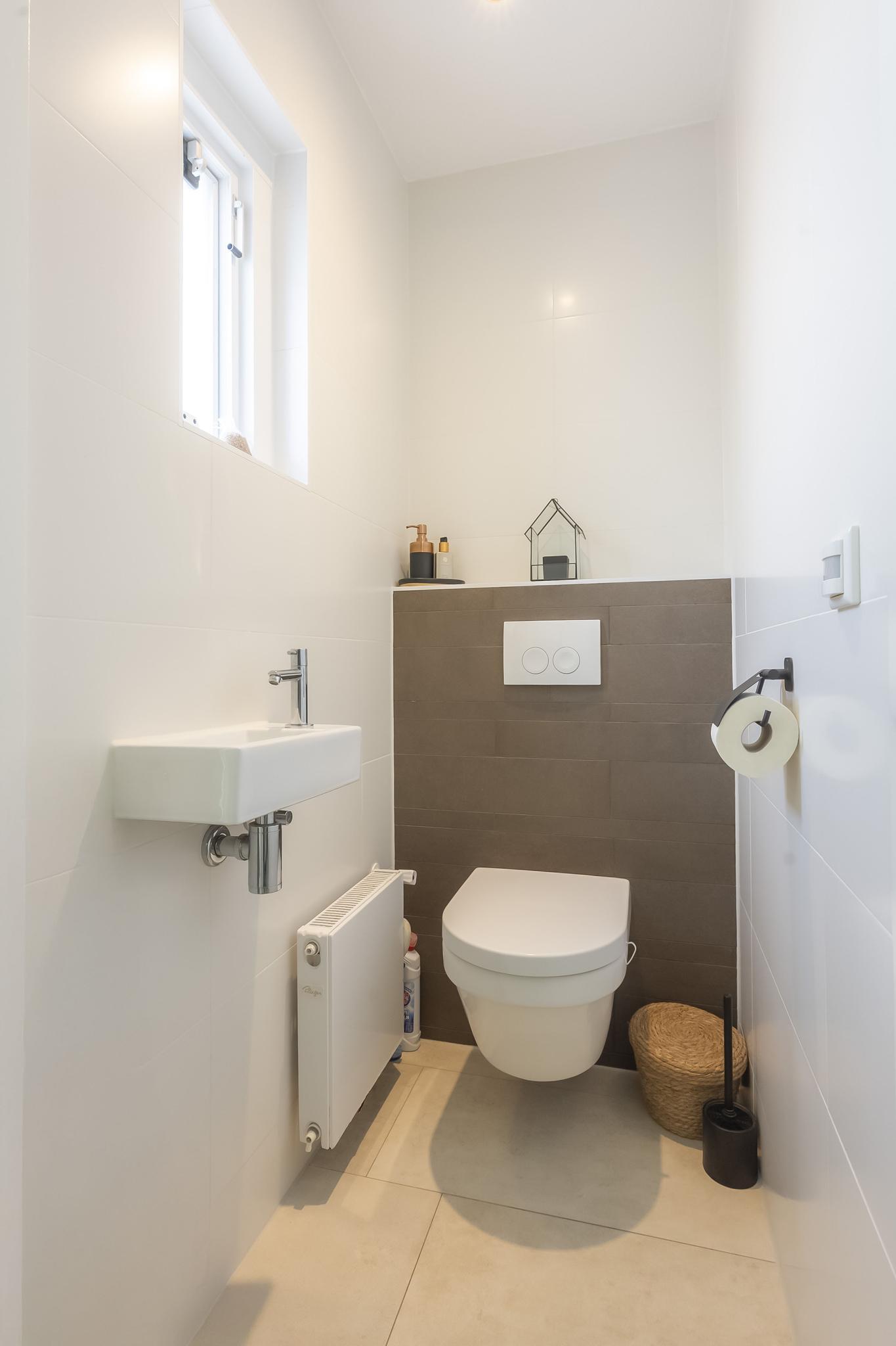 Via de verzorgde voortuin bereikt men de entree. De hal is voorzien van garderobe, vernieuwde meterkast, separate CV-ruimte (Nefit HR combiketel, CW5, bwj. 2020, huur) en verdeler voor de vloerverwarming. Het moderne, vrijhangende toilet is voorzien van fonteintje, radiator en raam.