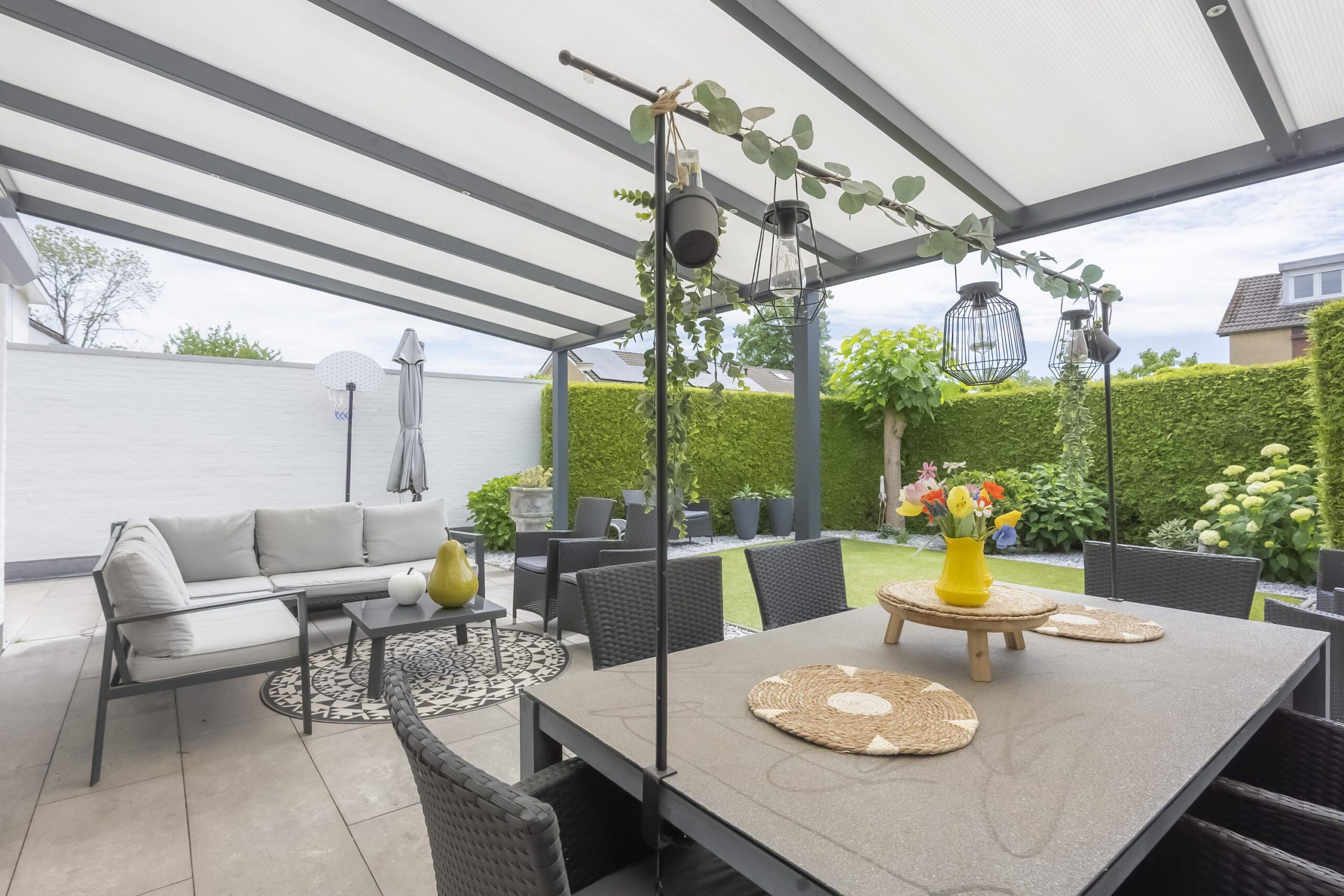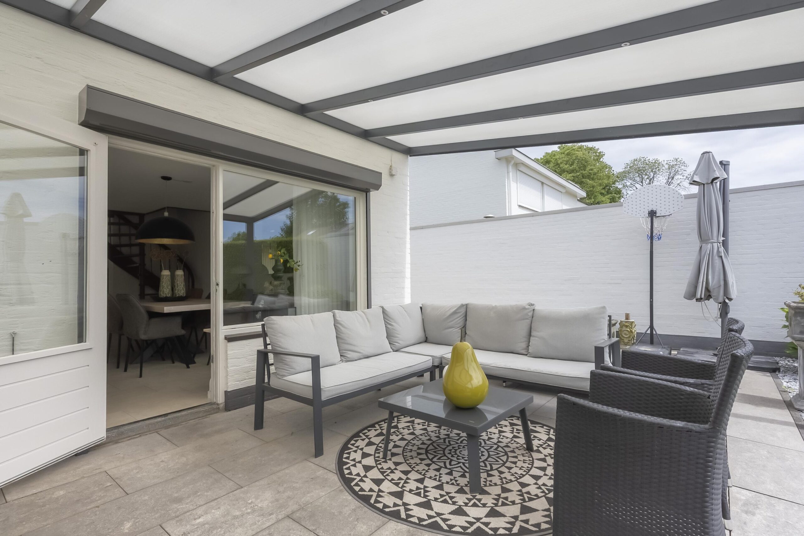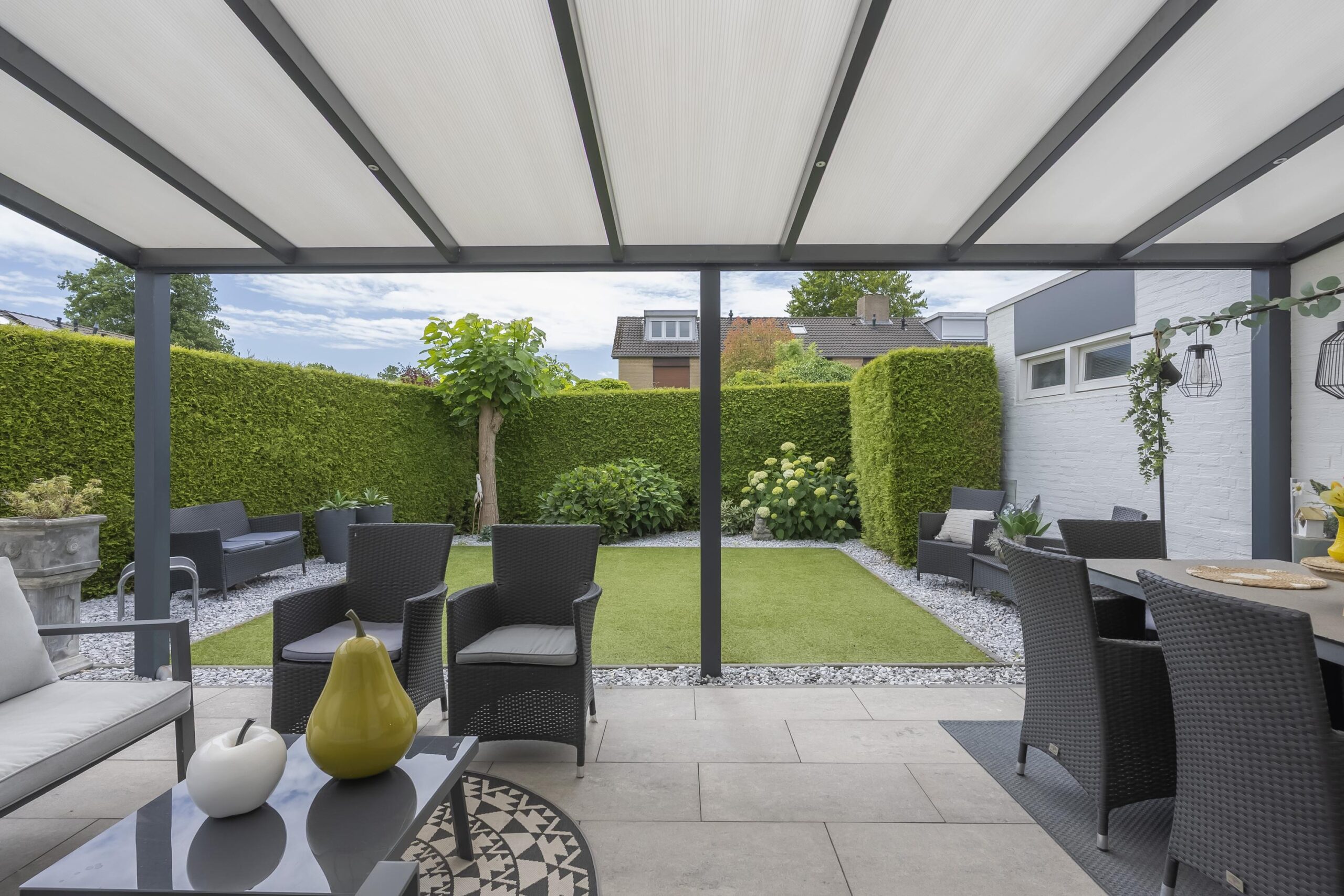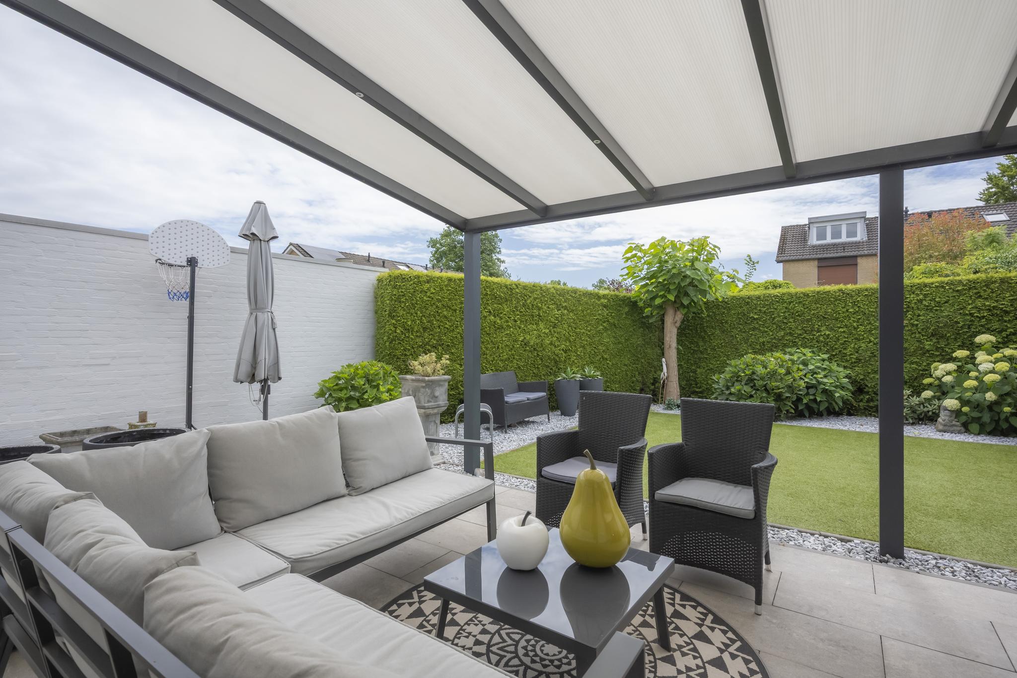 Via de woonkamer en bijkeuken bereikt men de fraai aangelegde en onderhoudsvriendelijke achtertuin welke is gelegen op het zuiden en biedt volledige privacy. De tuin is voorzien van een modern terras, kunstgras gazon en een aluminium fietsenberging.