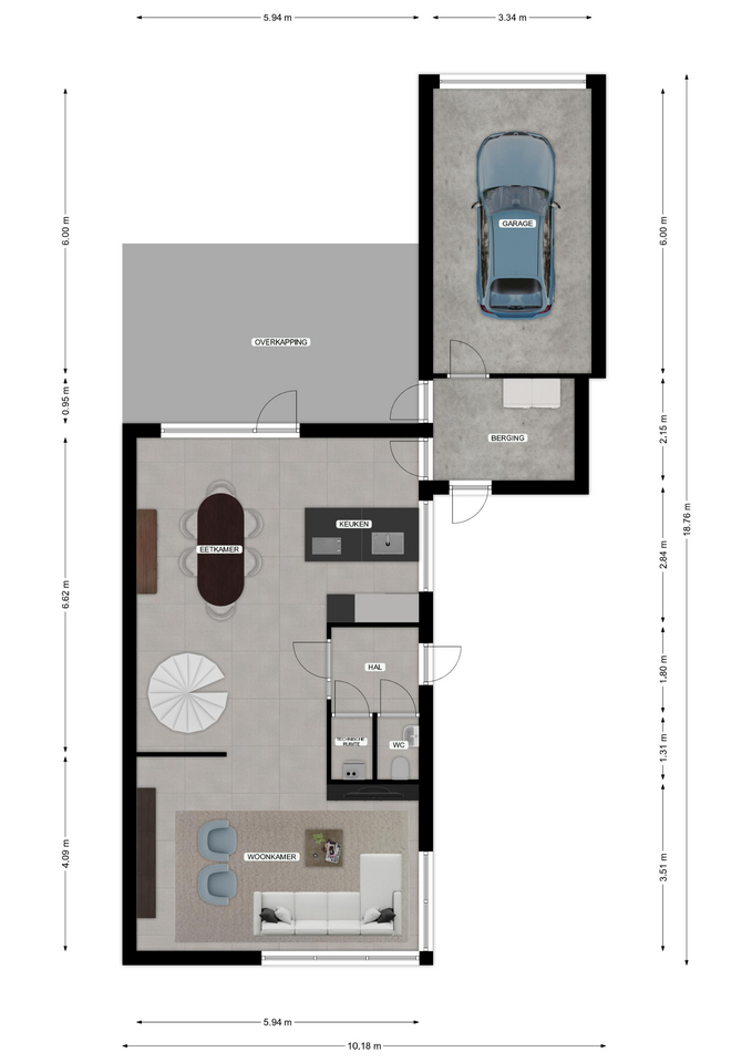 – Inpandige garage en oprit via achterzijde bereikbaar;