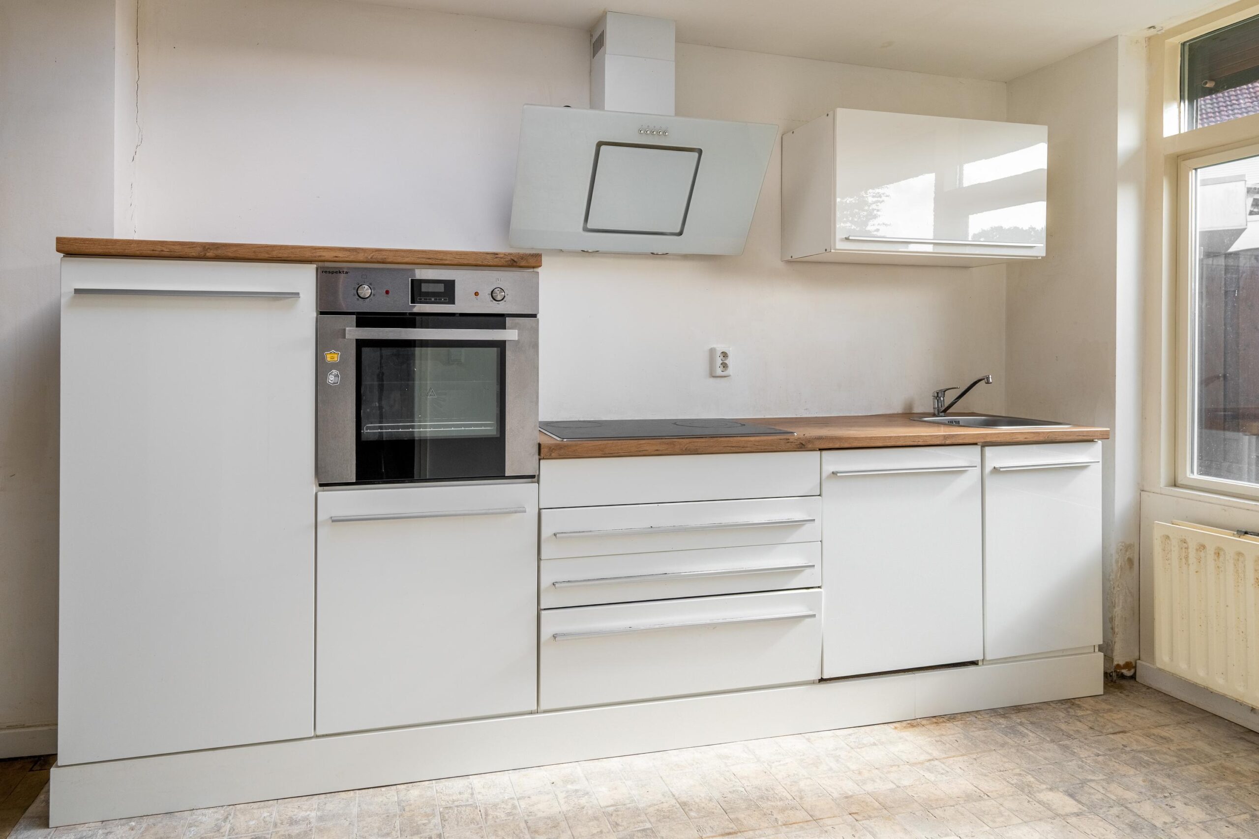 De keuken is voorzien van een rechte opstelling met de navolgende apparatuur: keramische kookplaat, afzuigkap, oven en koelkast.