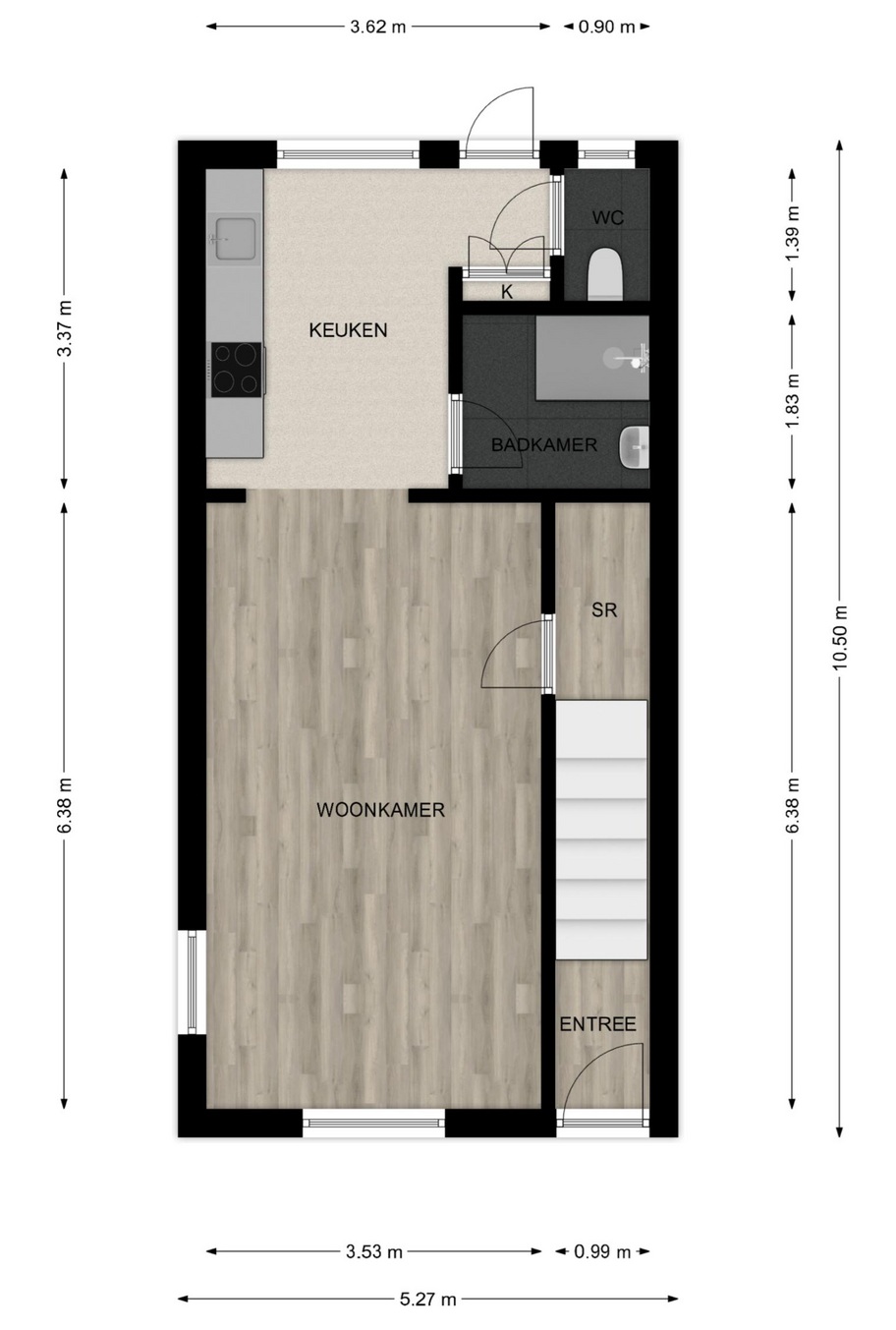 Middels de hal/entree met meterkast en trapopgang komt u in de woonkamer met open keuken.