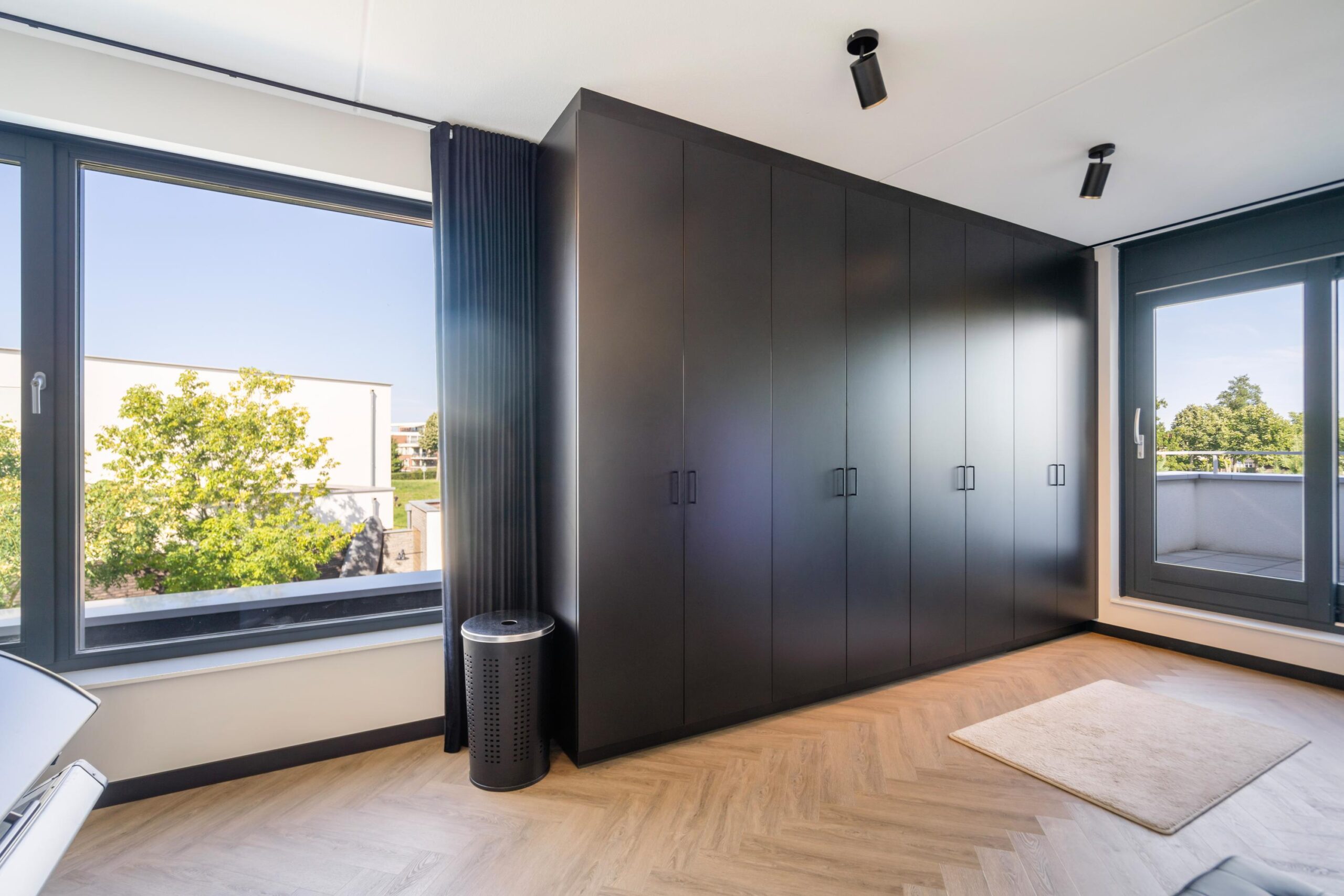 De eerste verdieping biedt drie ruime slaapkamers, een luxe badkamer en een separaat toilet. De slaapkamers en overloop zijn alles voorzien van eenzelfde, dorpelvrije en moderne PVC visgraatvloer. Ook op de verdieping zijn de vloeren voorzien van vloerverwarming en -koeling. Een van de slaapkamers is voorzien van een maatwerk kastenwand. De twee grootste slaapkamers bieden toegang tot een ruim dakterras met een schitterend uitzicht over het water. Een plek waar het heerlijk vertoeven is. De badkamer is voorzien van een ruime inloopdouche, ligbad, dubbele wastafel met meubel en een praktische opbergwand. Tevens is er een praktische berging met installaties aanwezig.