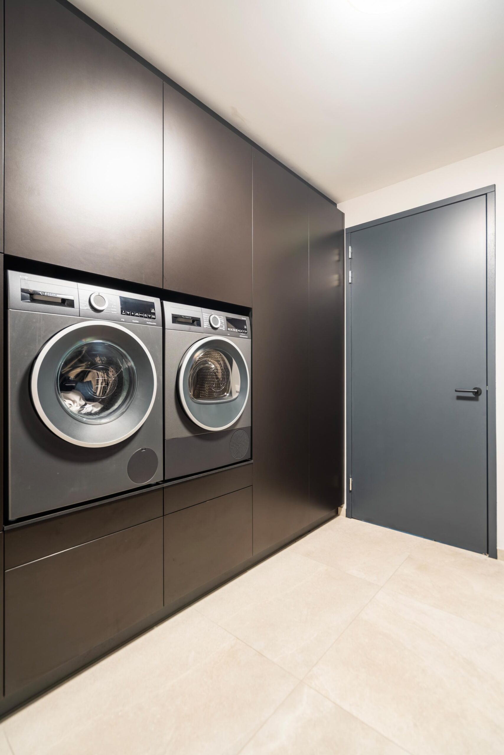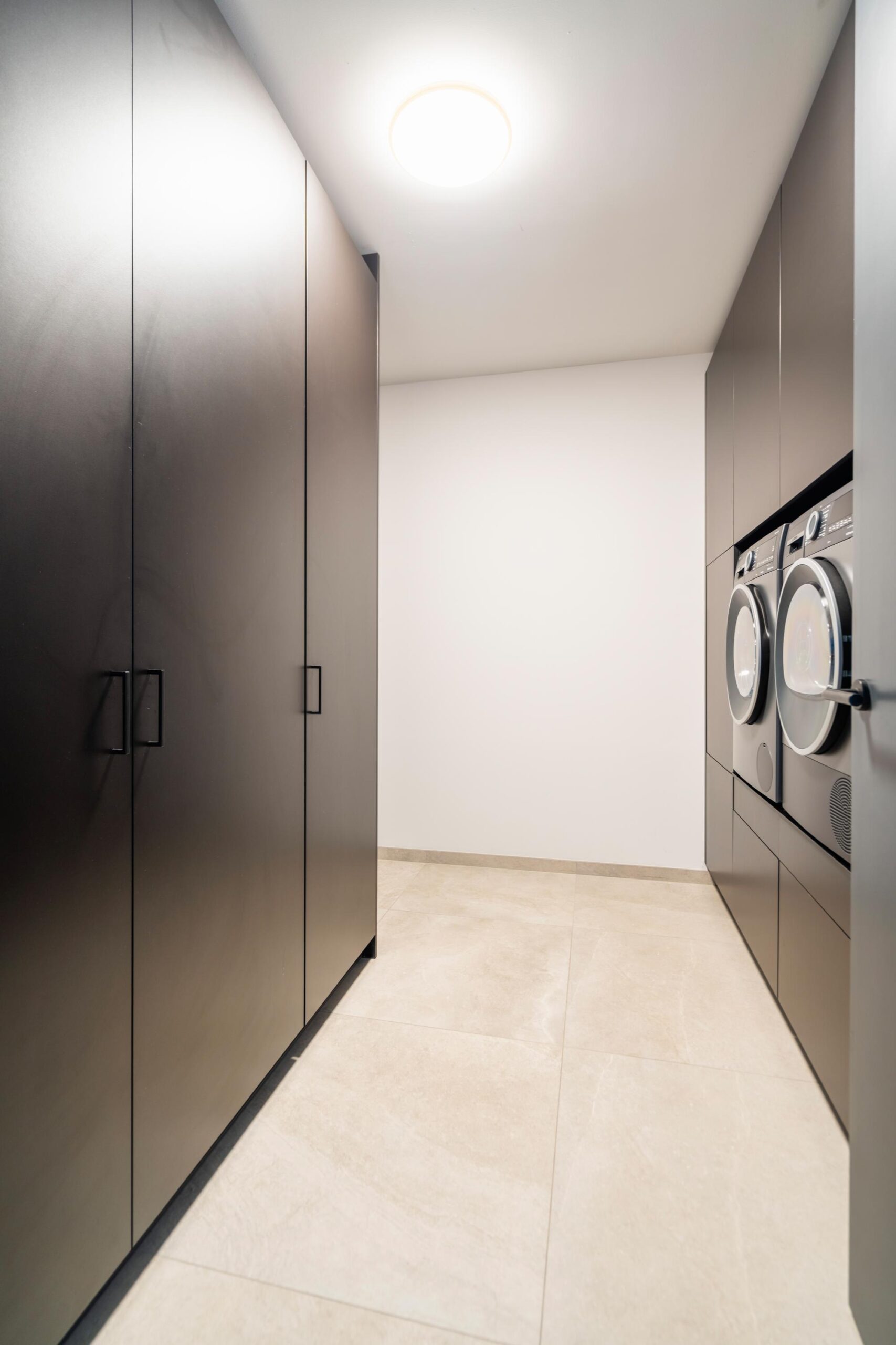 De bijkeuken beschikt over een op maat gemaakte kastenwand. De opstelling is onder andere voorzien van een koelkast, kasten en wasmachineombouw op hoogte. Vanuit de bijkeuken is er toegang tot inpandig bereikbare, royale garage van circa 38 m2. Deze is compleet afgewerkt met gestucte en geschilderde wanden en plafonds, eenzelfde grote tegelvloer met vloerverwarming en -koeling. Door de grootte en afwerking is het mogelijk om naar eigen wens verder in te delen. Wil je een garage met plaats voor een of twee auto(‘s), een bootje of andere motorvoertuigen? Een thuis atelier? Slaapkamer en badkamer begane grond? Thuiswerkplek of speelkamer voor de kinderen? Alles is hier mogelijk!