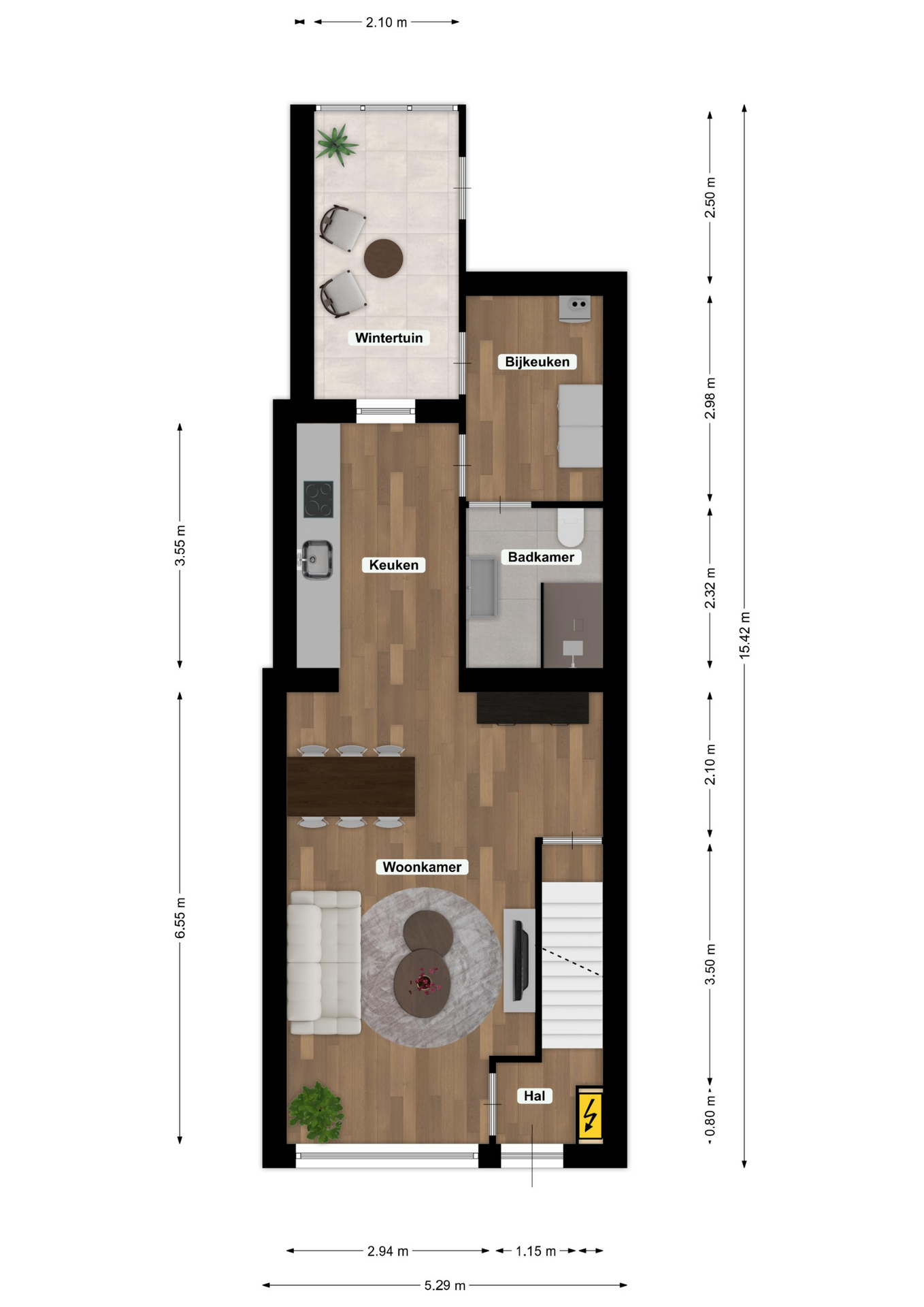 - Oppervlakte gebouwgebonden ca. 9 m2