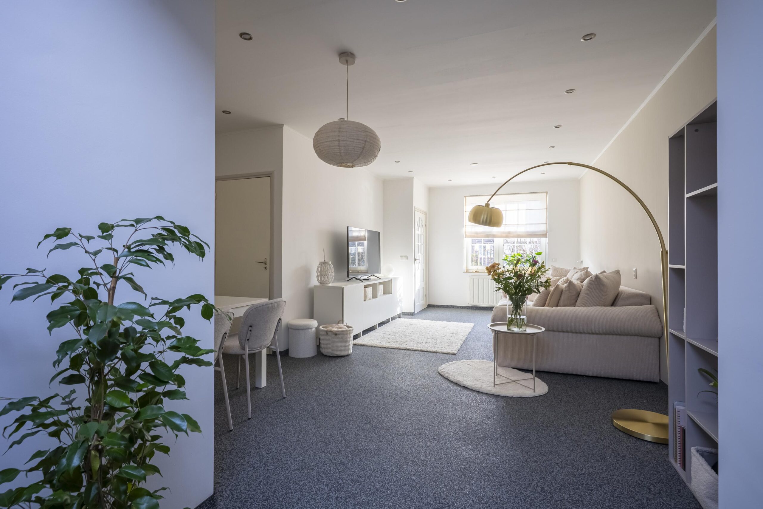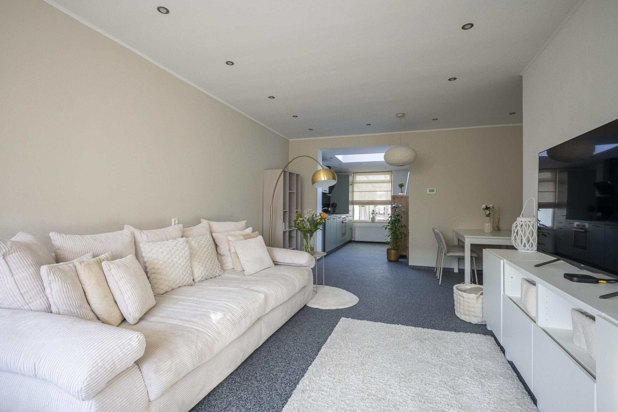 Via de royale en onderhoudsvriendelijke voortuin bereikt u de entree/hal. De hal is voorzien van een gemoderniseerde meterkast en biedt toegang tot de sfeervolle living (ca. 34 m²). Aan de voorzijde van de woonkamer bevinden zich het gezellige tv-gedeelte en de eetkamer, die harmonieus zijn gecombineerd tot één ruime leefruimte. Vanuit de woonkamer bereikt u de moderne open keuken met lichtkoepel, wat zorgt voor een aangename lichtinval. De keuken is uitgerust met de volgende inbouwapparatuur: koelkast, keramische kookplaat, design afzuigkap en oven. Aansluitend aan de keuken bevindt zich de praktische en tevens verwarmde bijkeuken/wasruimte (ca. 6 m²), voorzien van witgoedaansluitingen en de opstelling van de combi cv/hr-ketel (Remeha, 2025, huur: A. Ploem en Zn. B.V.). Vanuit de bijkeuken heeft u toegang tot de moderne, volledig gerenoveerde en betegelde badkamer (ca. 5 m²). De badkamer is voorzien van een inloop regendouche met hardglazen wand, dubbele wastafel met ombouwmeubel, vrijhangend toilet, handdoekradiator, ingebouwde ledverlichting en mechanische ventilatie. De gehele parterre (met uitzondering van de badkamer) is afgewerkt met een verlaagd plafond voorzien van ingebouwde ledverlichting, strak stucwerk op de wanden en een siergrind vloerafwerking.