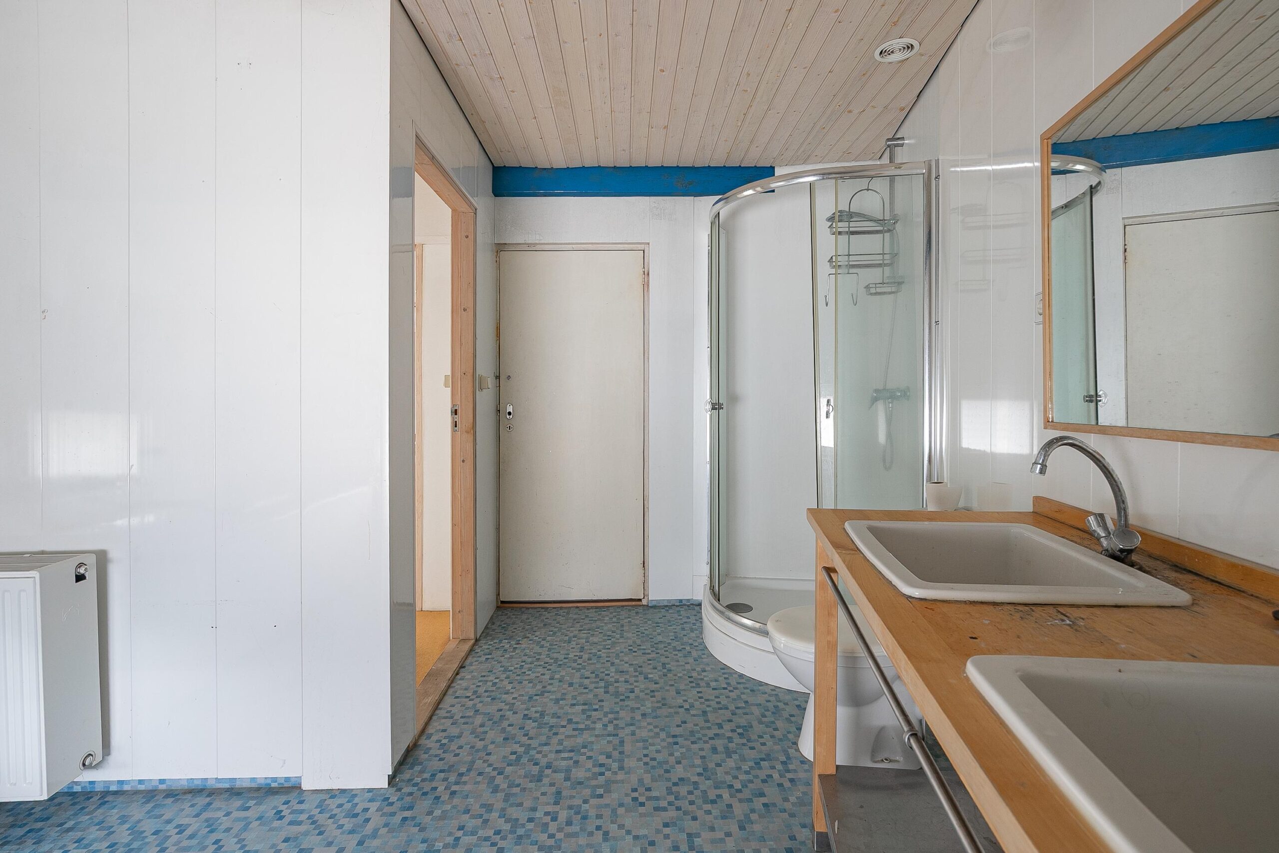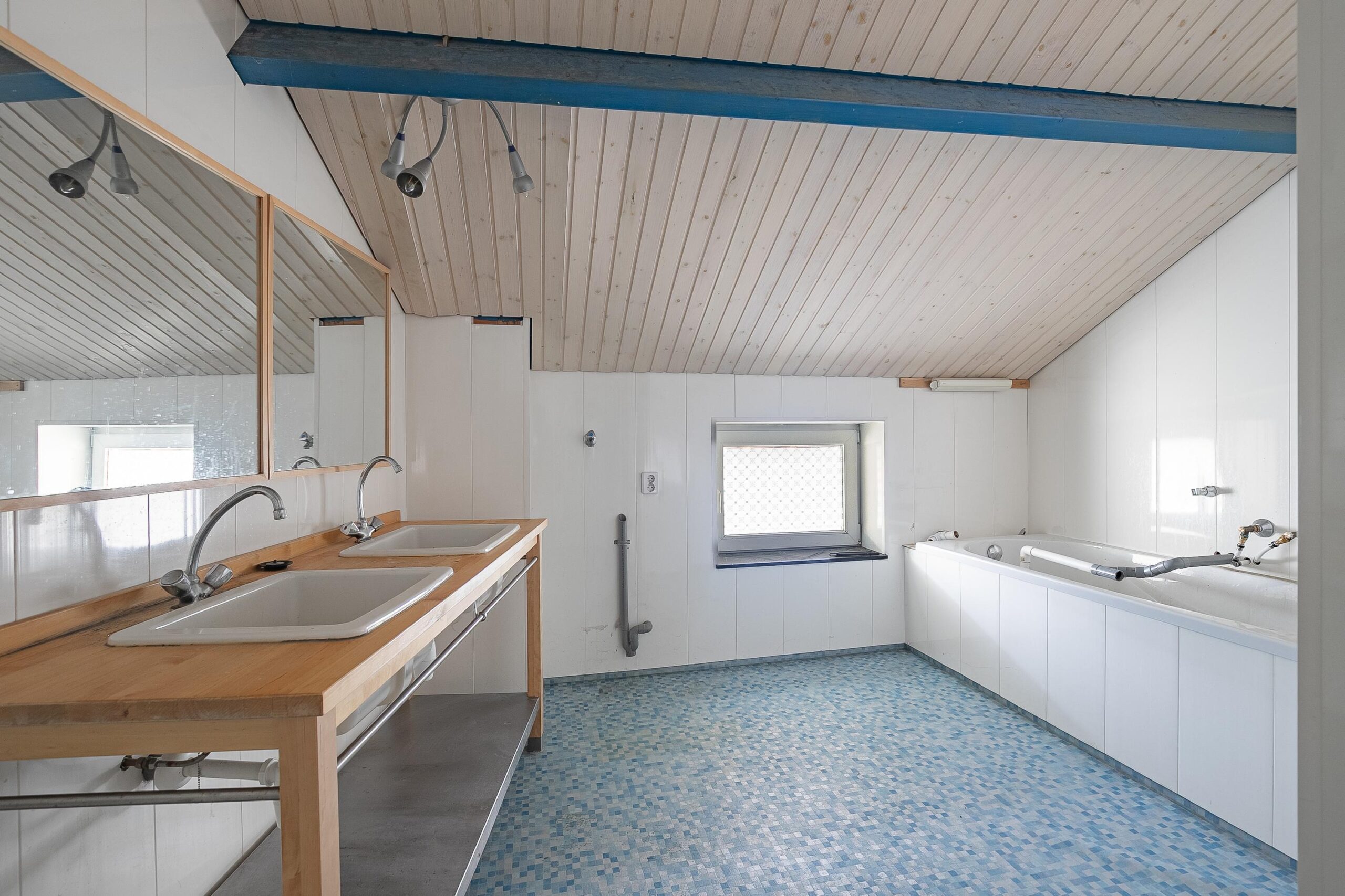 De woning beschikt over een royale werkruimte/atelier van circa 180 m², die diverse gebruiksmogelijkheden biedt, zoals werken aan huis, een atelier, hobbyruimte, opslag of eventueel als mantelzorgwoning. Via de serre is er toegang tot een keuken, voorzien van een gasfornuis, spoelbak en afzuigkap. Vanuit deze keuken is de ruime werkruimte bereikbaar, welke beschikt over een toiletruimte. Dankzij de omvang en indeling is de ruimte flexibel in te richten en geschikt voor uiteenlopende doeleinden. Daarnaast is er boven de werkruimte een ruime zolder aanwezig, ideaal voor extra opslag. Via de zijkant van de woning is er tevens een directe toegang tot de serre en het atelier.
